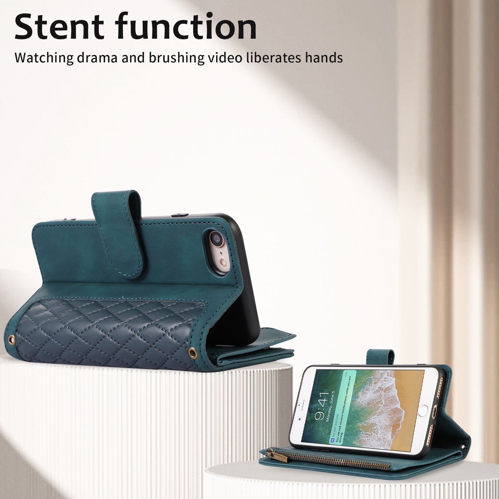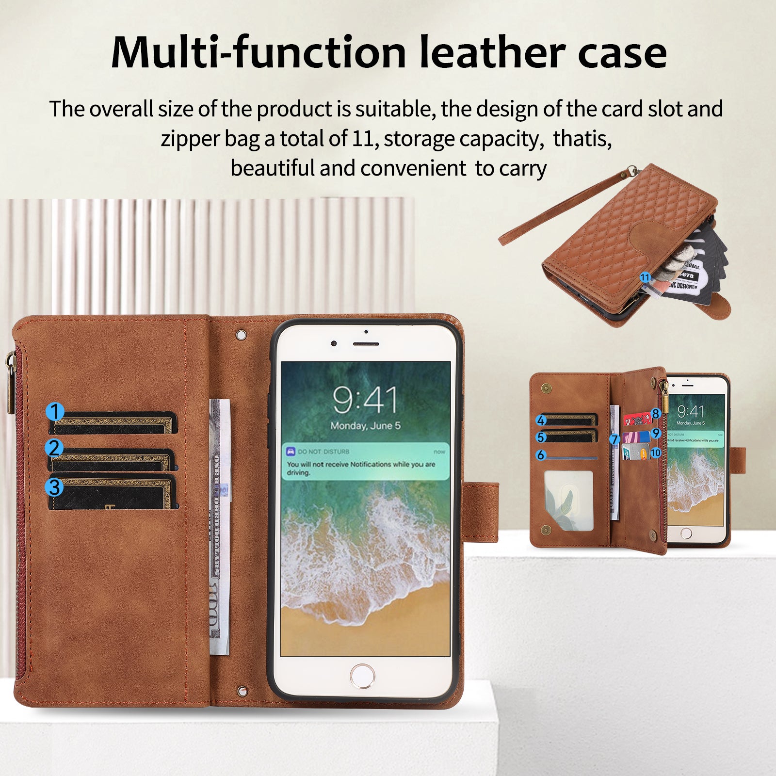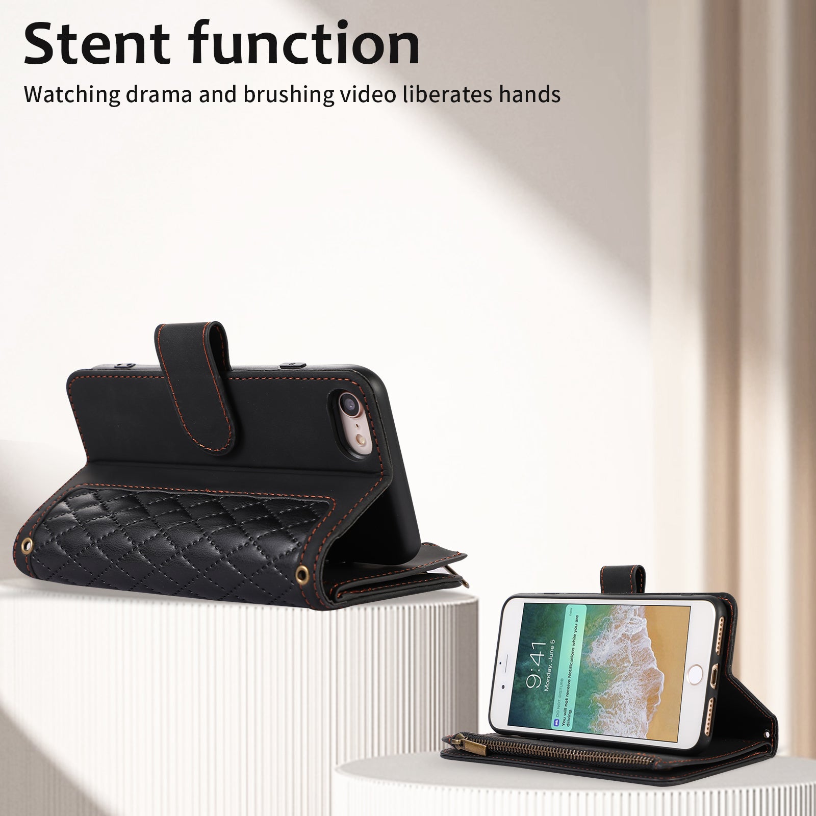 For iPhone 7 / 8 4.7 inch / SE (2022) / (2020) Imprinted Phone Case 9 Card Slots Leather Wallet Stand Cover with Zipper Pocket