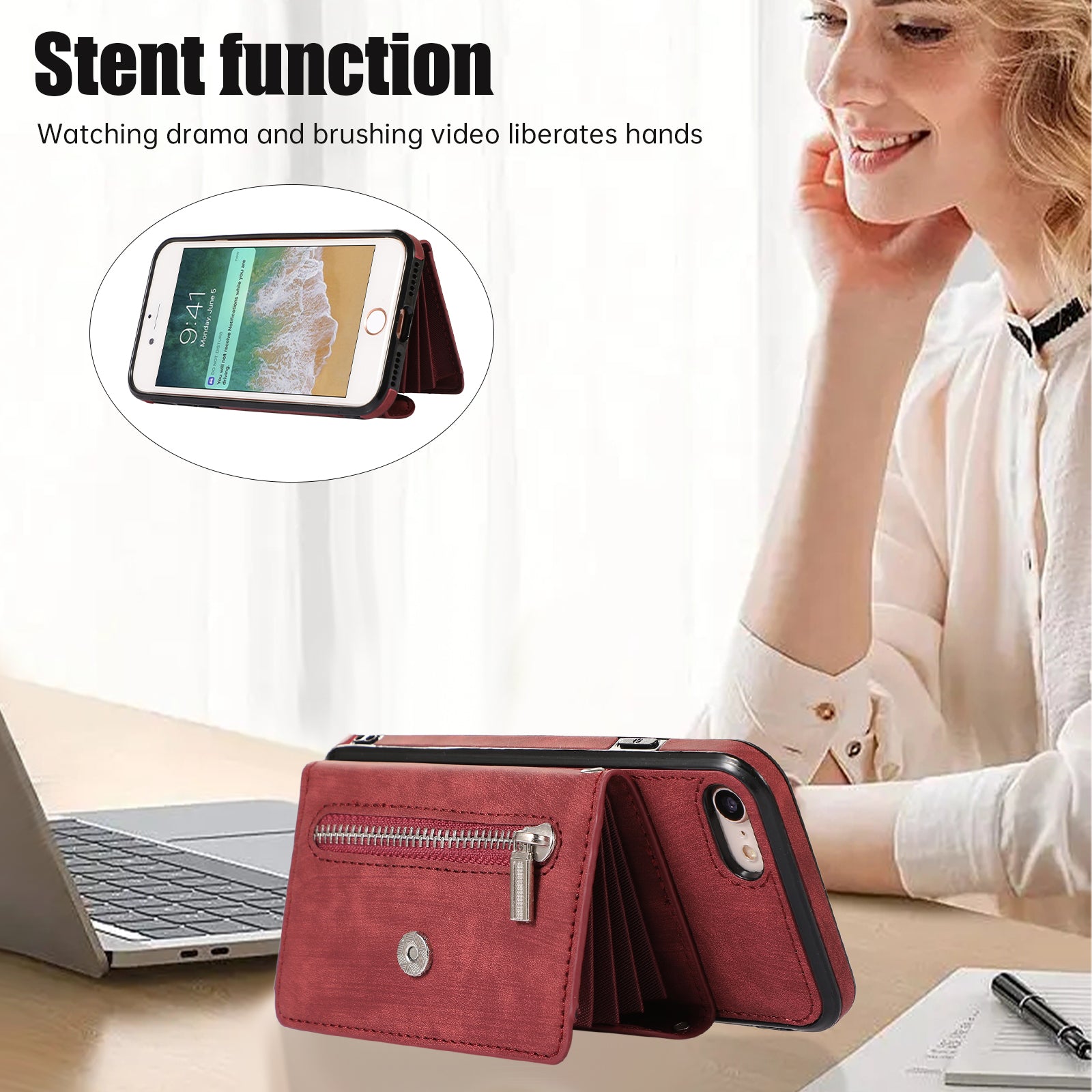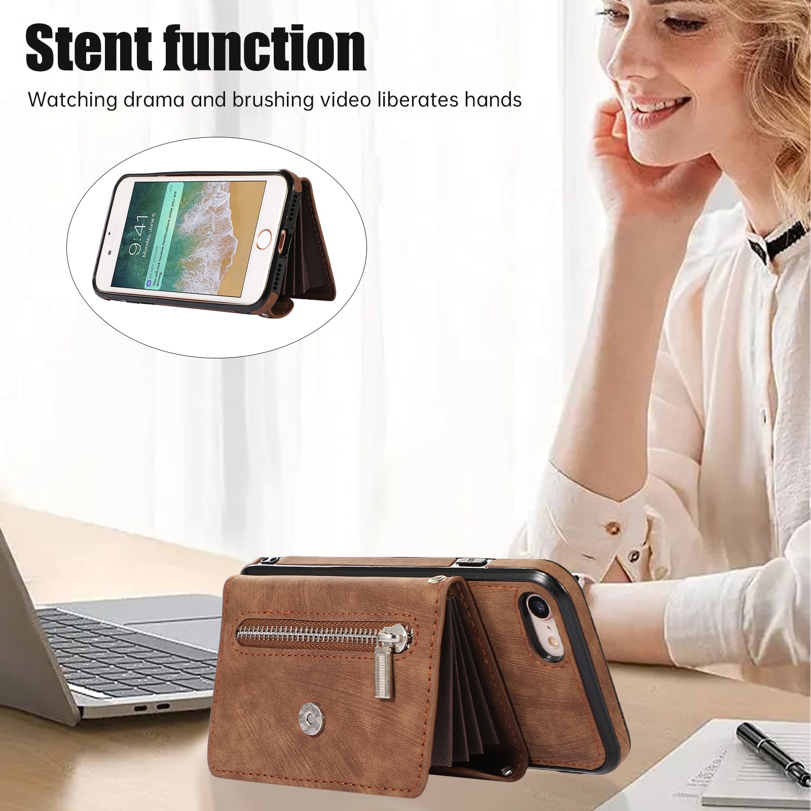 For iPhone 7 / 8 / SE (2020) / SE (2022) RFID Blocking Card Bag Phone Case Kickstand PU Leather+TPU Cover