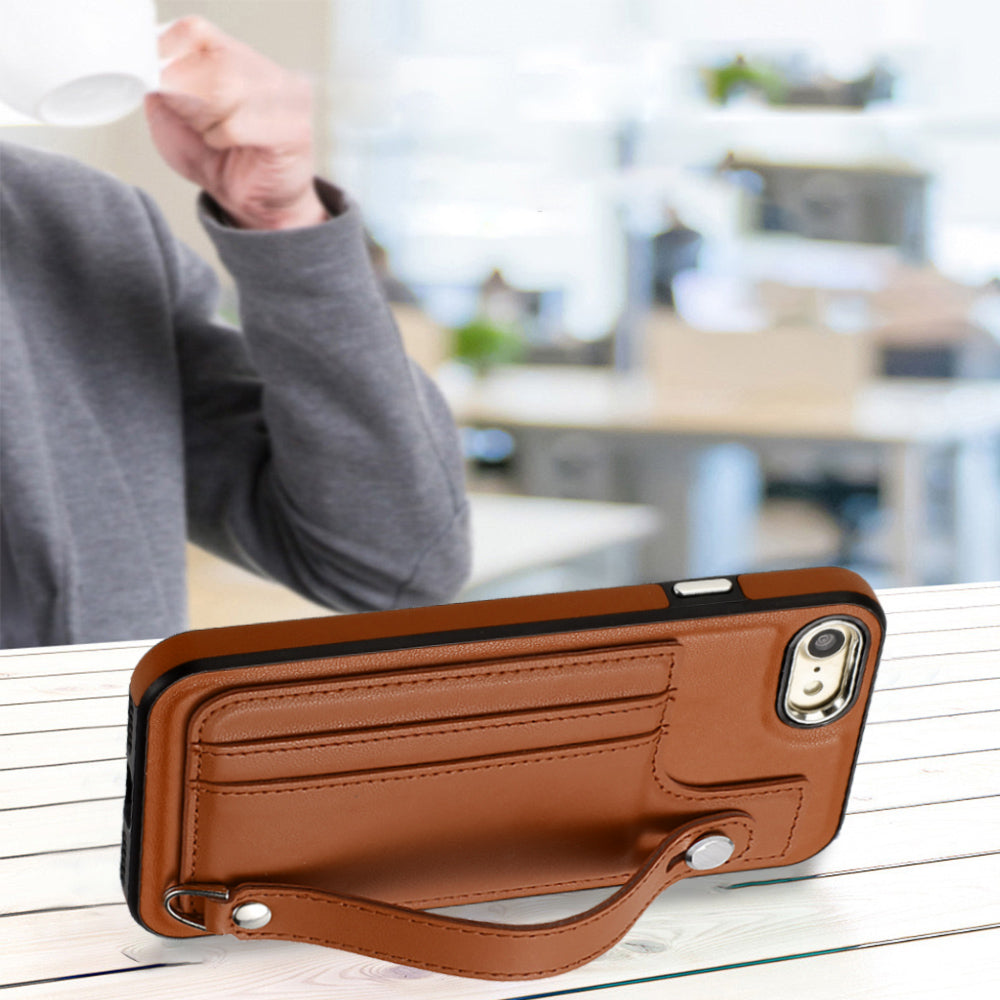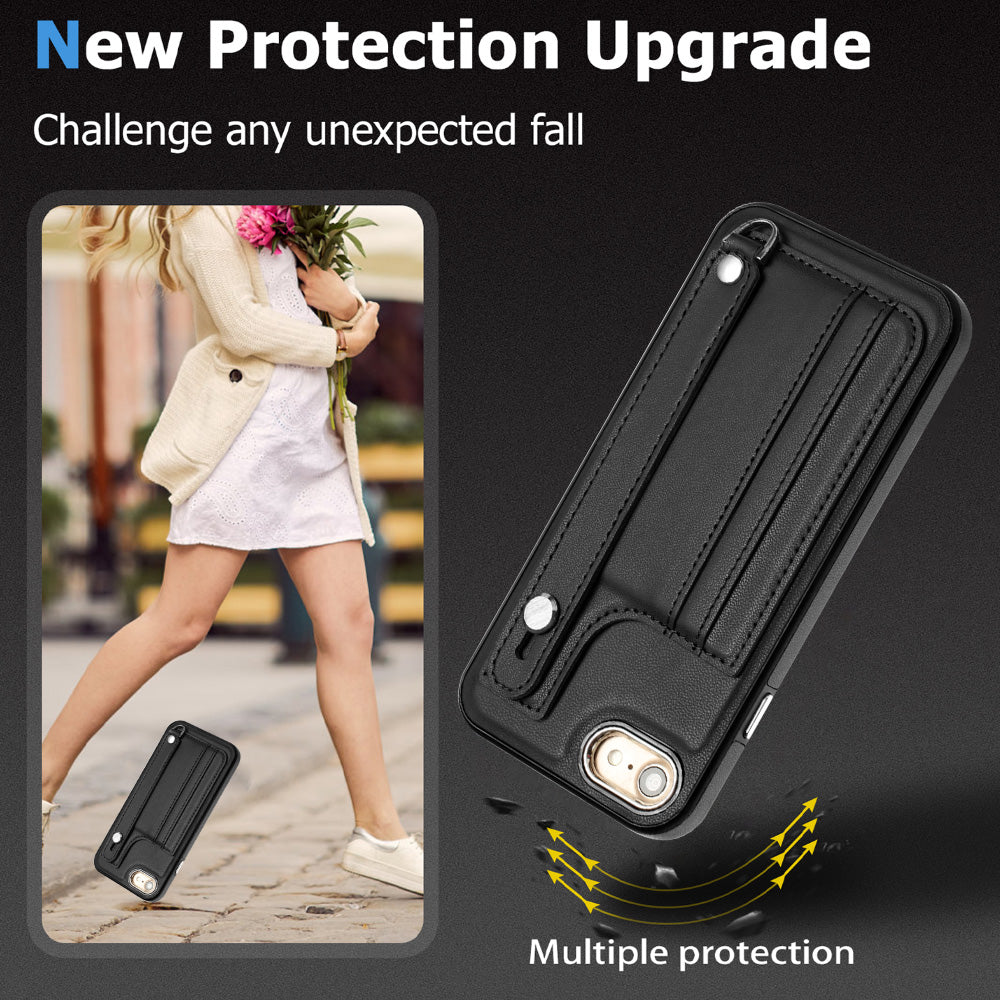 For iPhone SE (2020) / (2022) / 8 / 7 4.7 inch Kickstand Case YB Leather Coating Series-5 Card Holder TPU Phone Cover