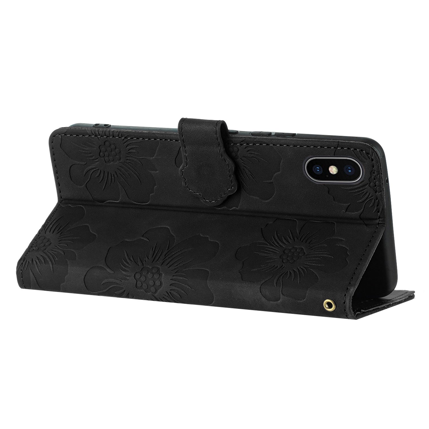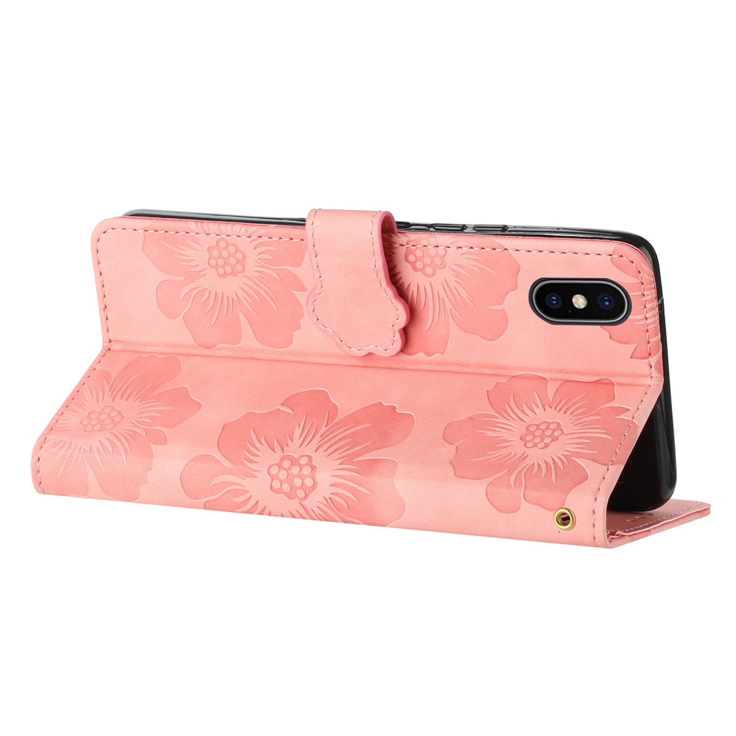 For iPhone X / XS 5.8 inch Flowers Imprint Mobile Case PU Leather Wallet Anti-drop Stand Cover