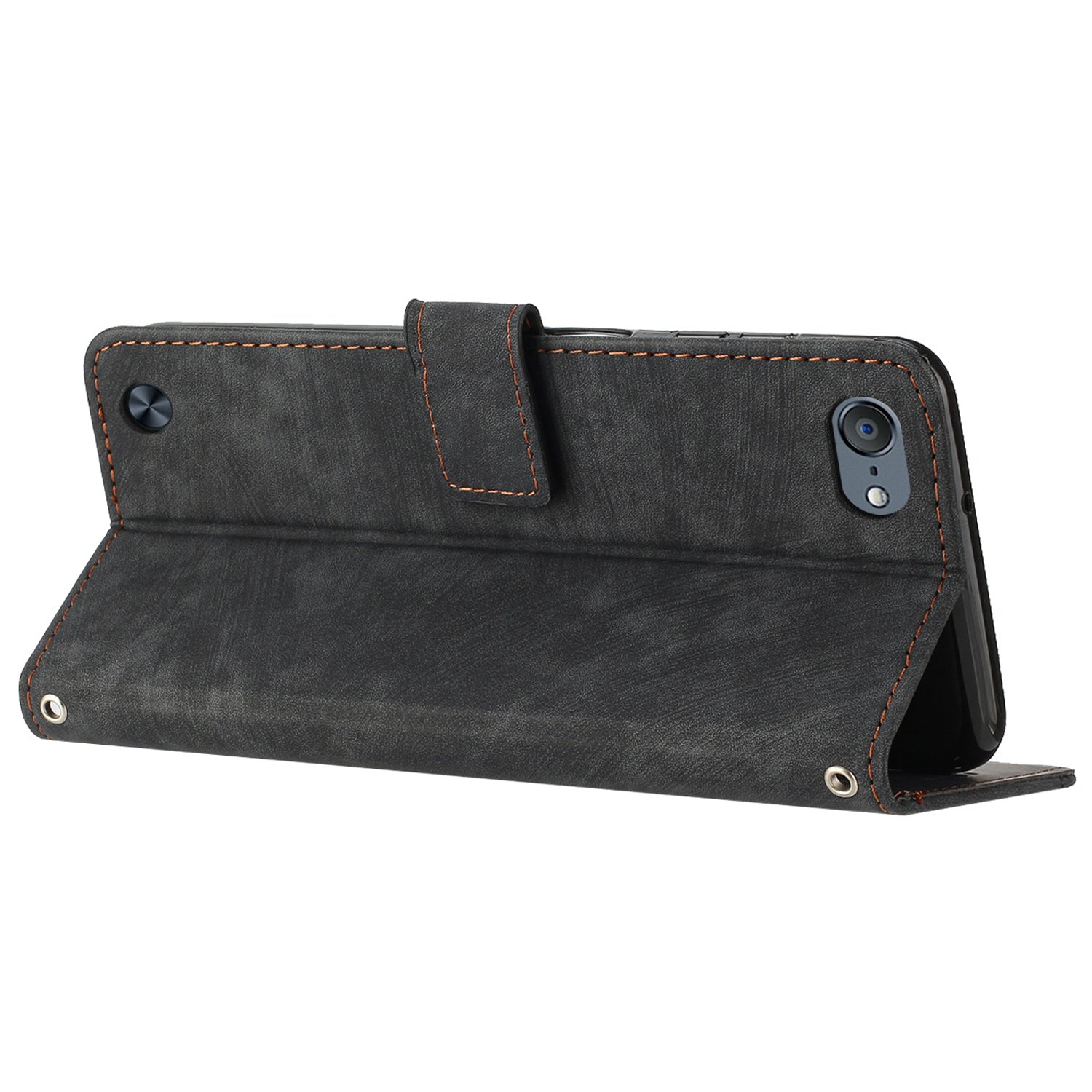 For iPod Touch (2019) / Touch 6 / Touch 5 Crossbody Wallet Case PU Leather Lines Imprinted Stand Phone Cover