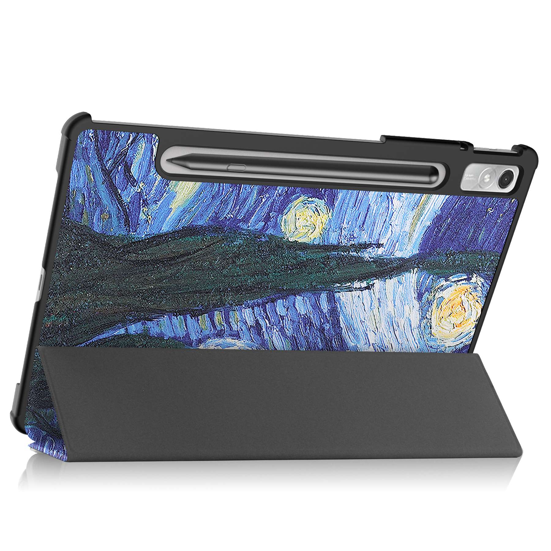 For Lenovo Tab P11 Pro Gen 2 Tri-Fold Stand Tablet Case Pattern Printing PU Leather Auto Wake / Sleep Cover with Pencil Holder