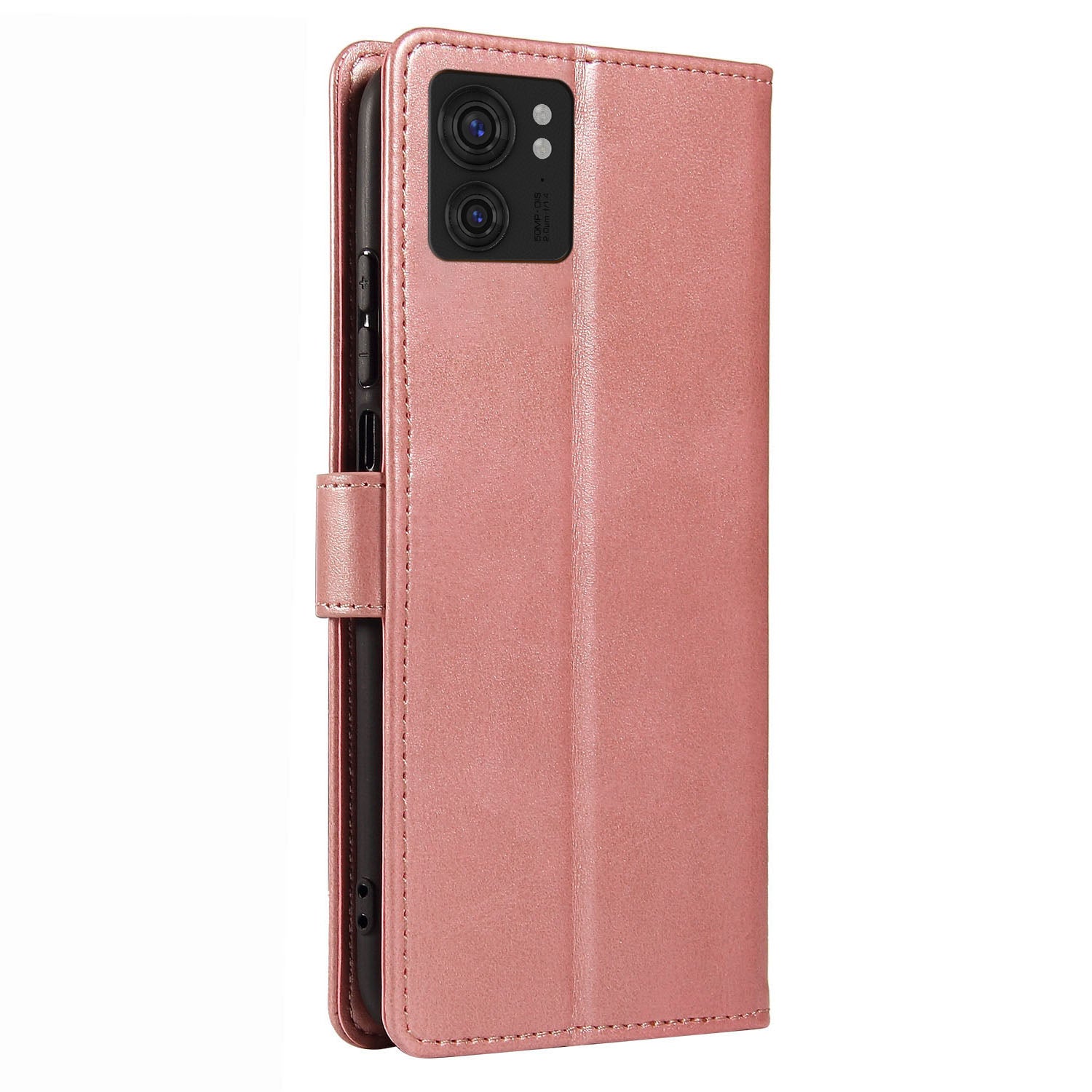 For Motorola Edge 40 5G Leather Phone Wallet Case Calf Texture Stand Phone Cover with Strap