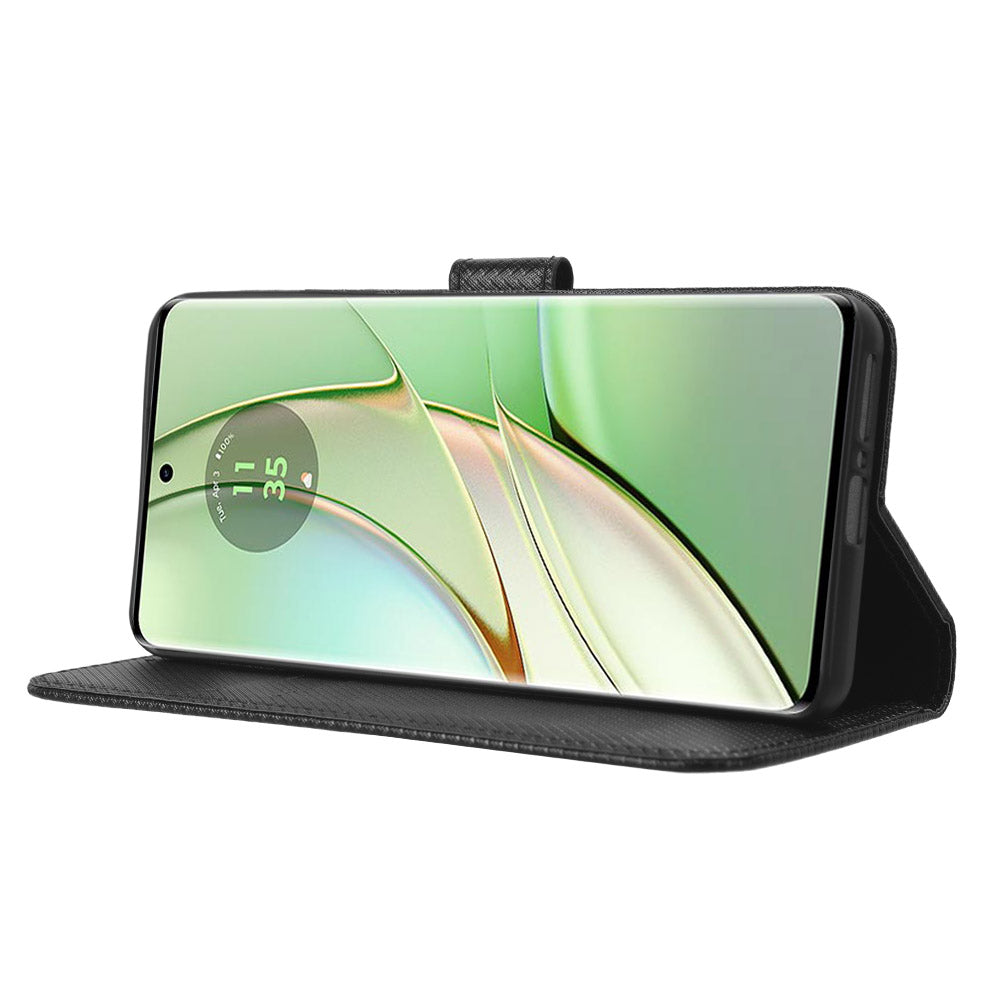For Motorola Edge 40 5G Shockproof Wallet Phone Case Diamond Texture PU Leather Stand Cover