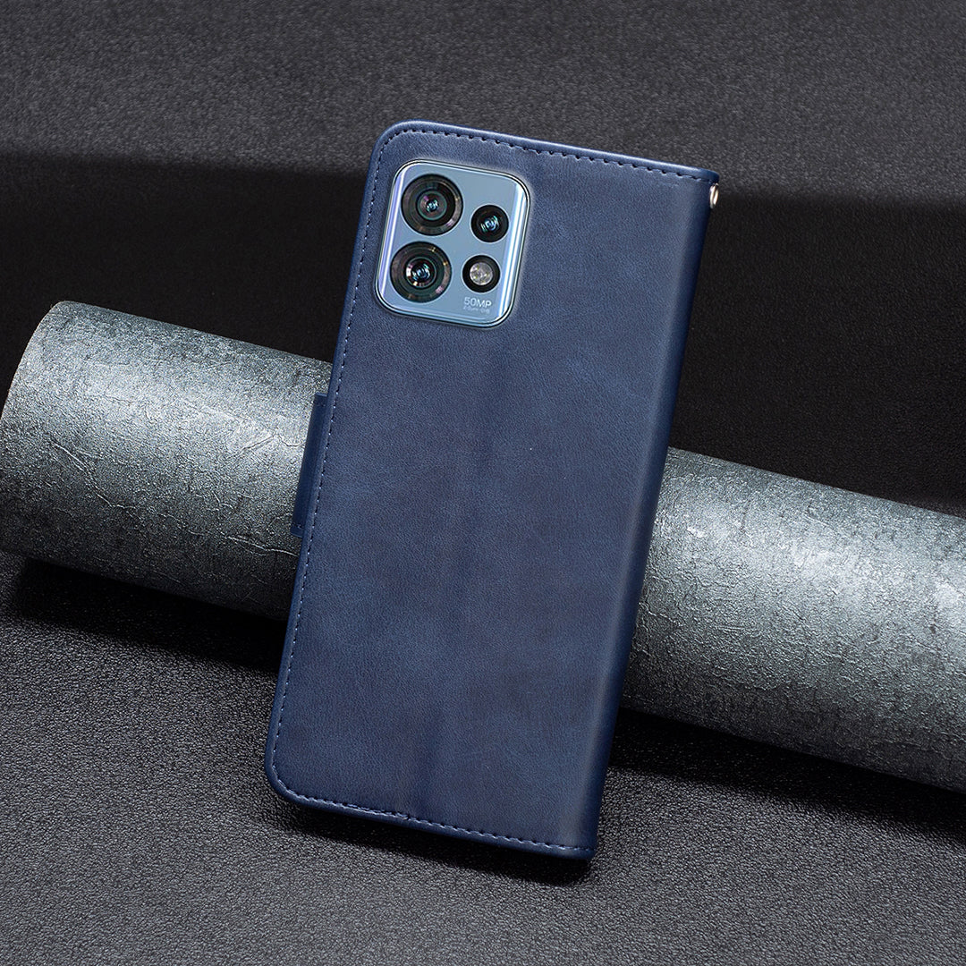 For Motorola Edge 40 Pro 5G / Moto X40 5G Solid Color Wallet Shell Textured PU Leather Stand Phone Case