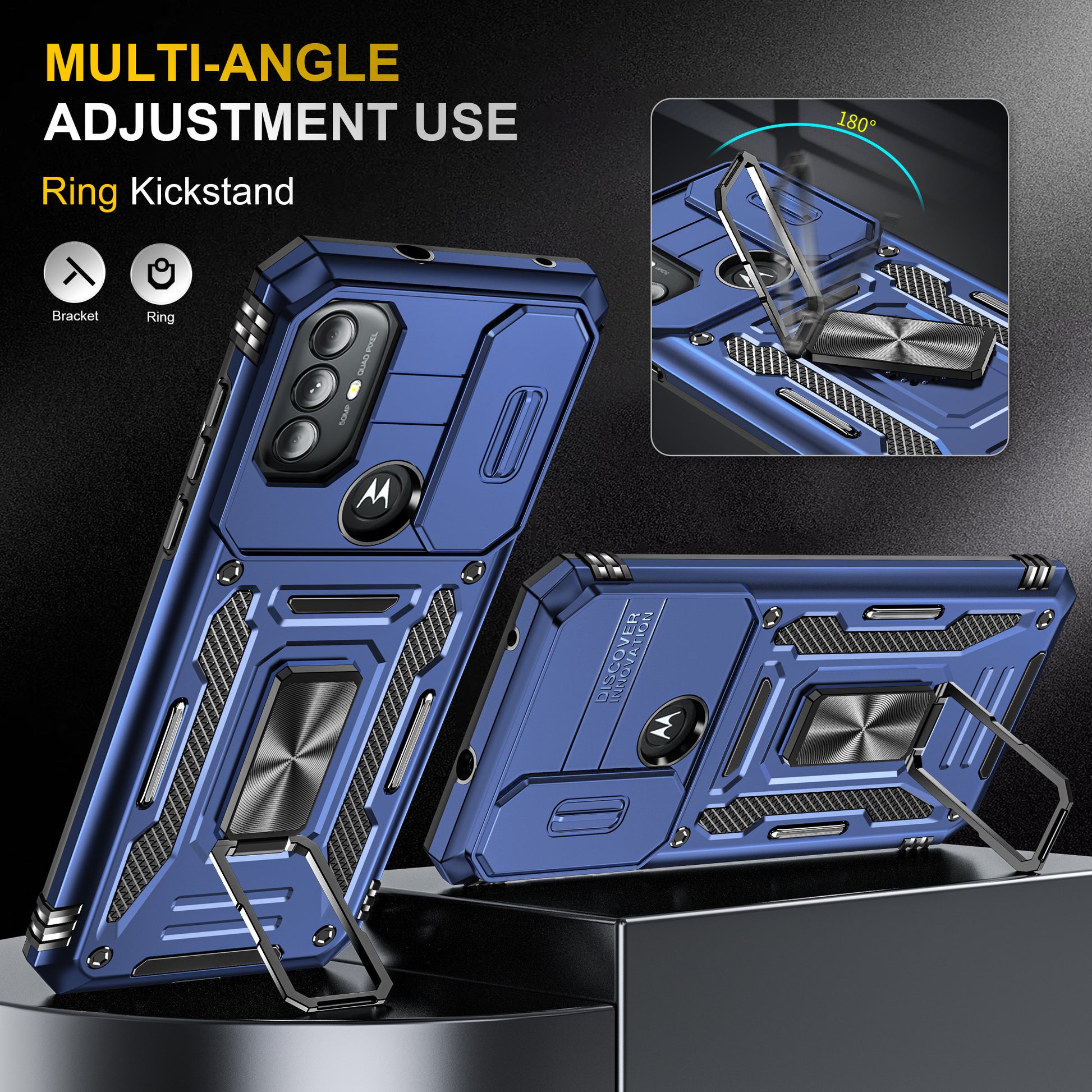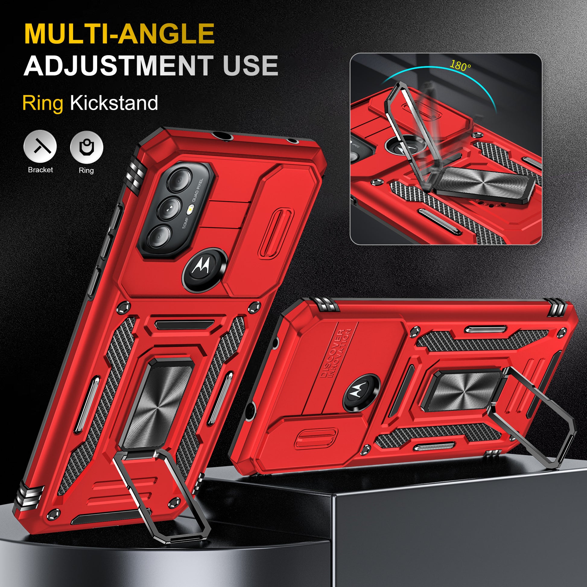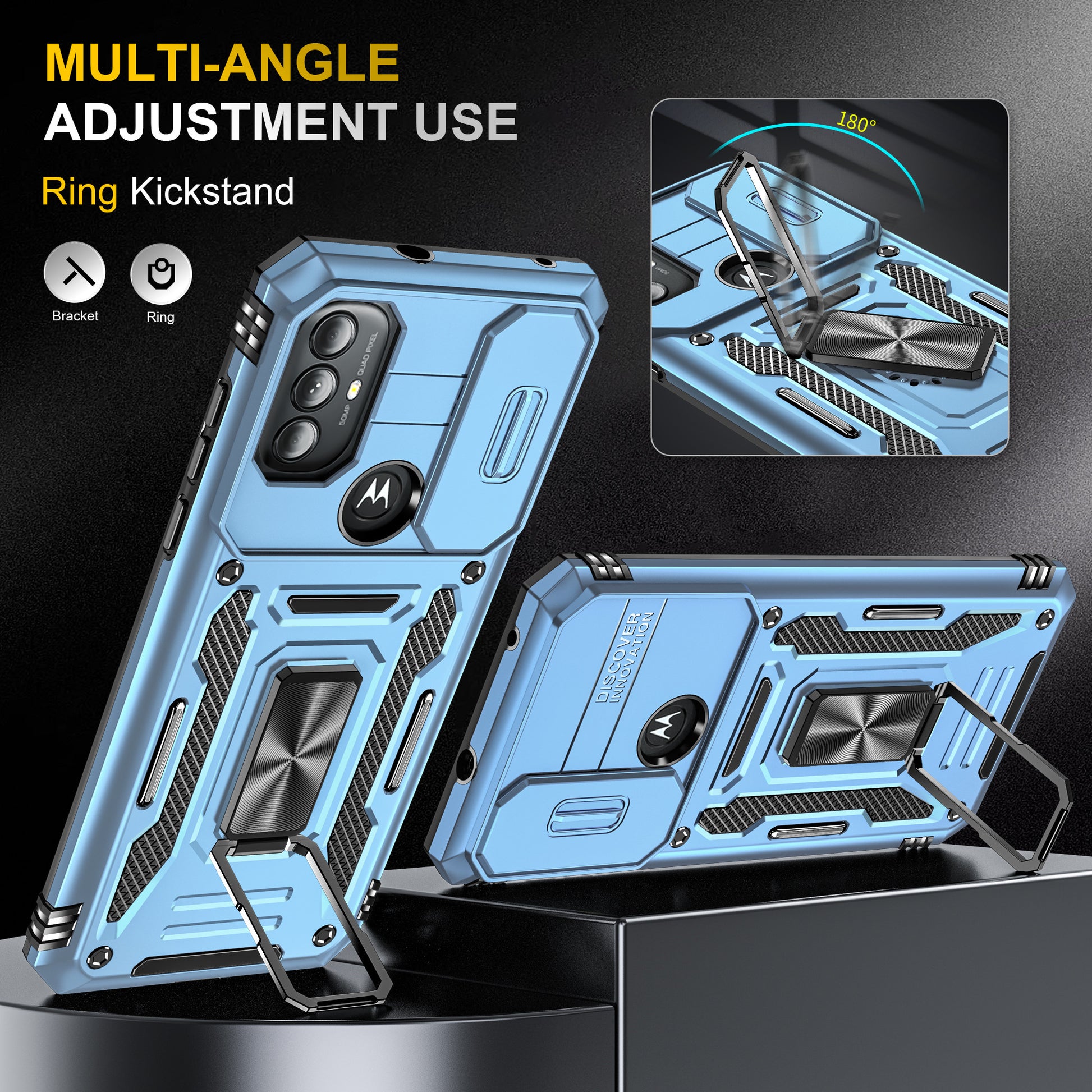 - The built-in adjustable kickstand allows a one-hand operation and multi-angle support