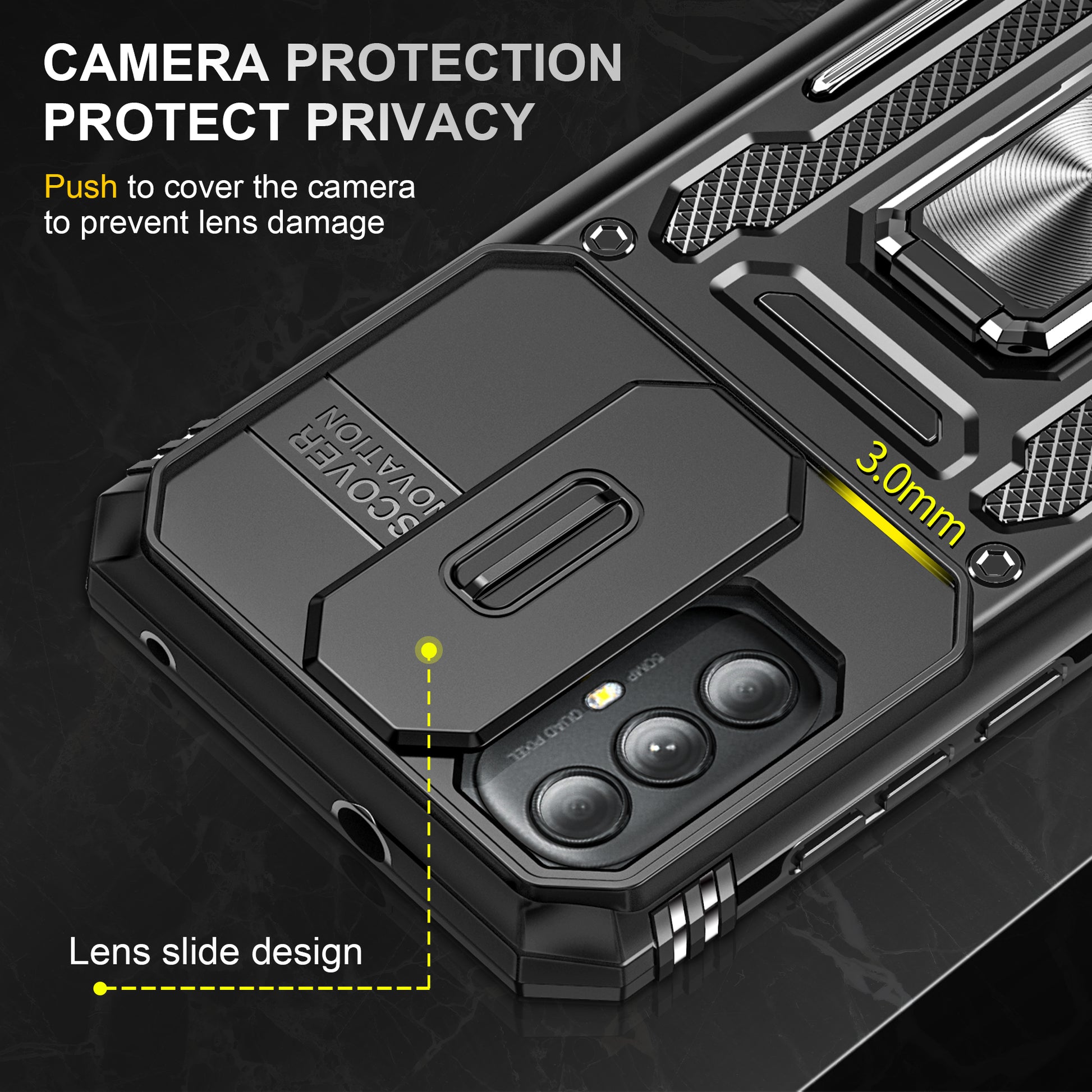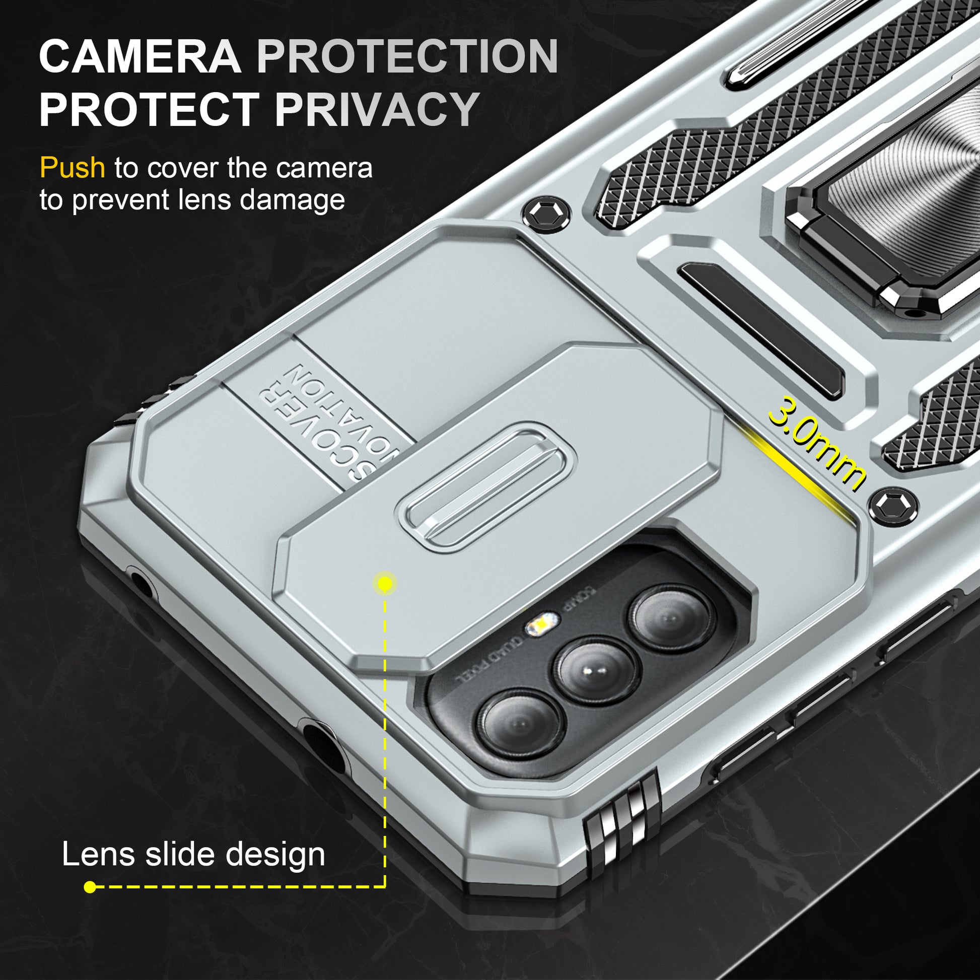 - The movable lens shield is designed for better protection of the camera lens