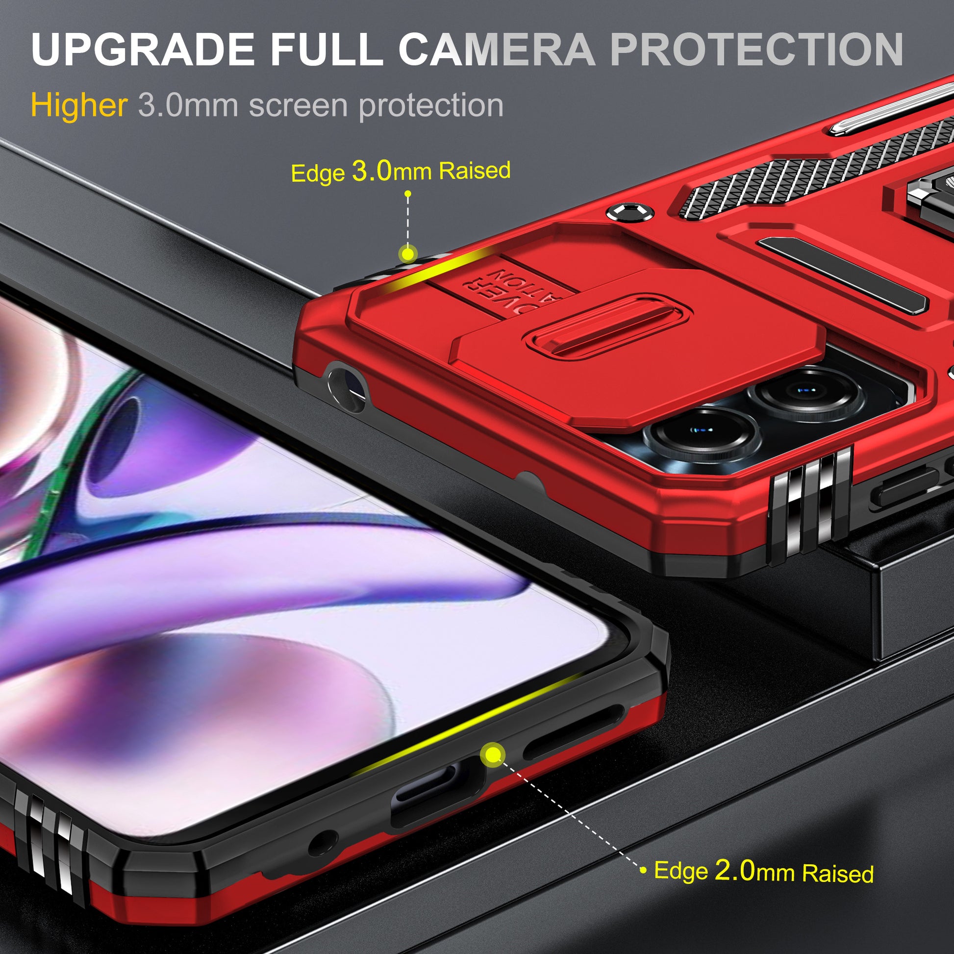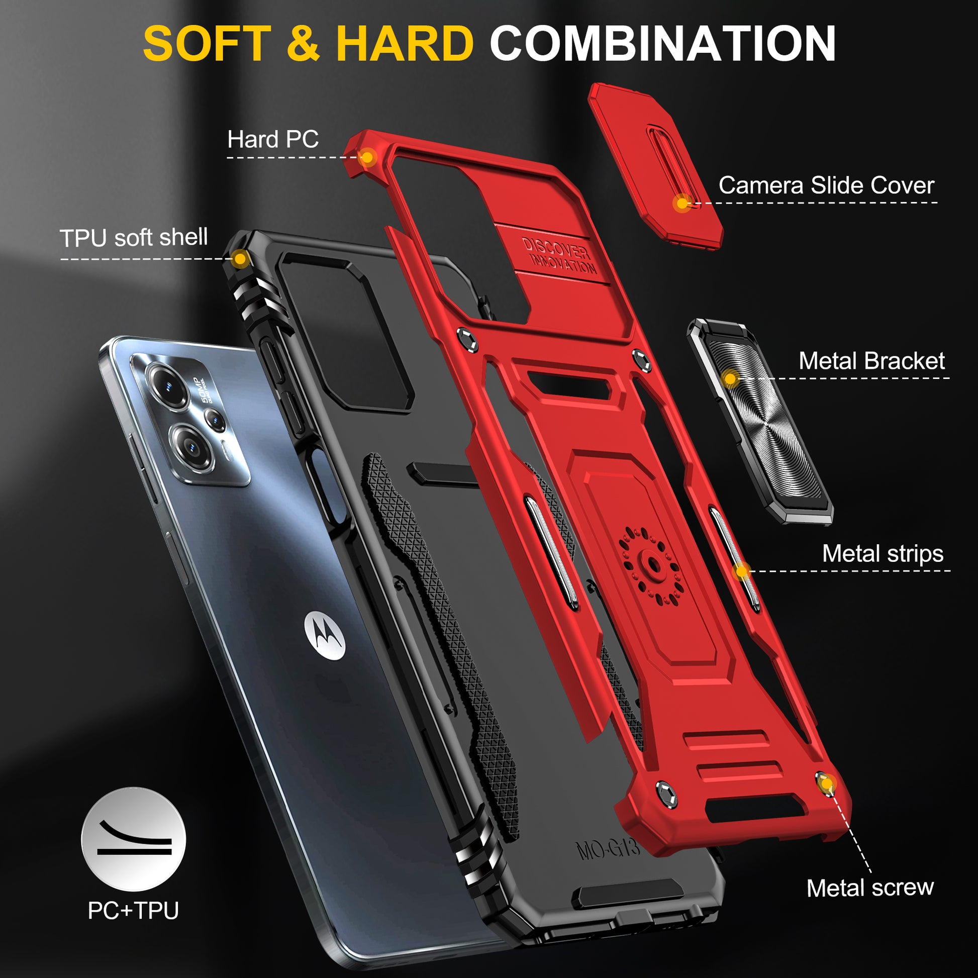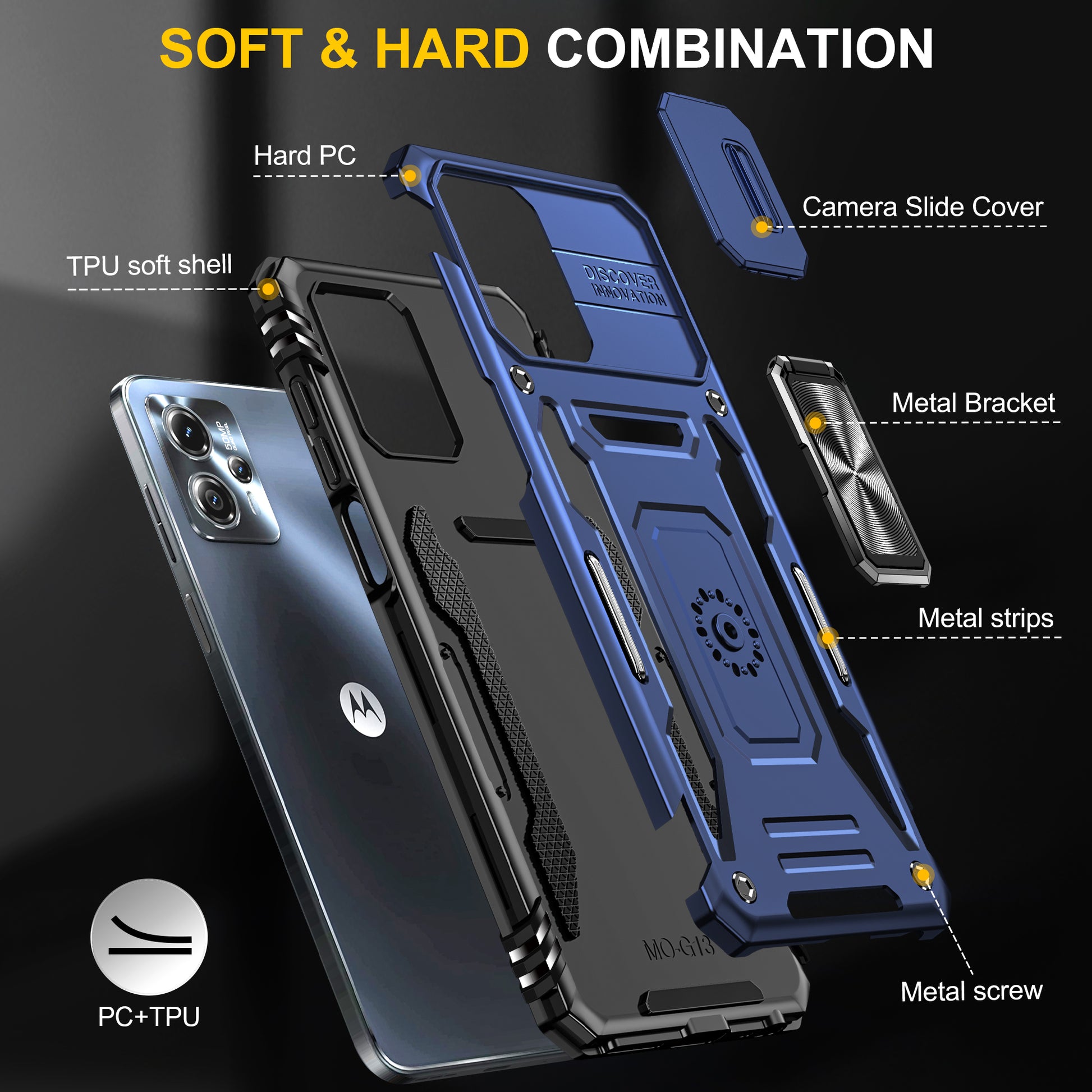 For Motorola Moto G13 4G Armor Series PC + TPU Shockproof Phone Case Ring Kickstand Cover with Slide Camera Lid