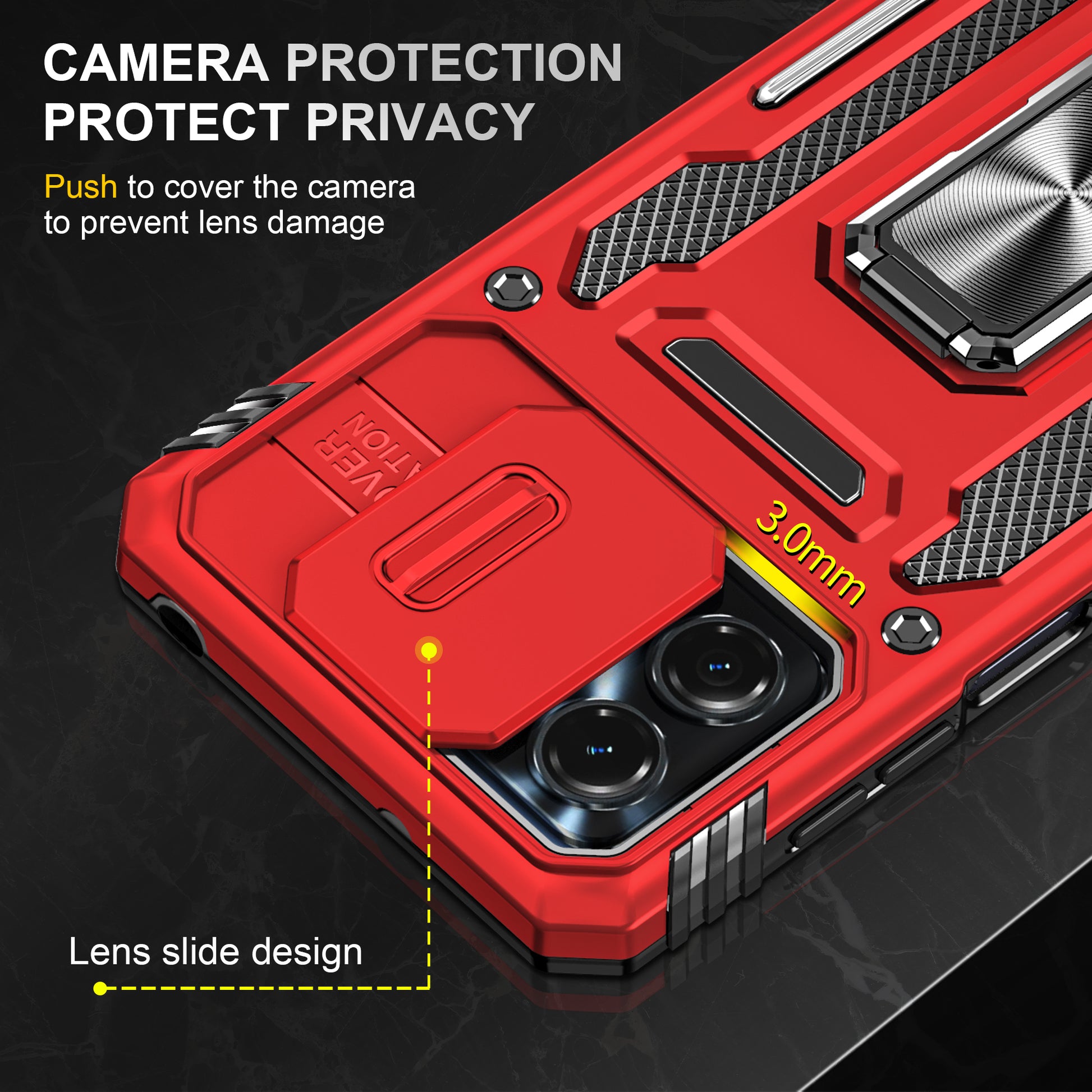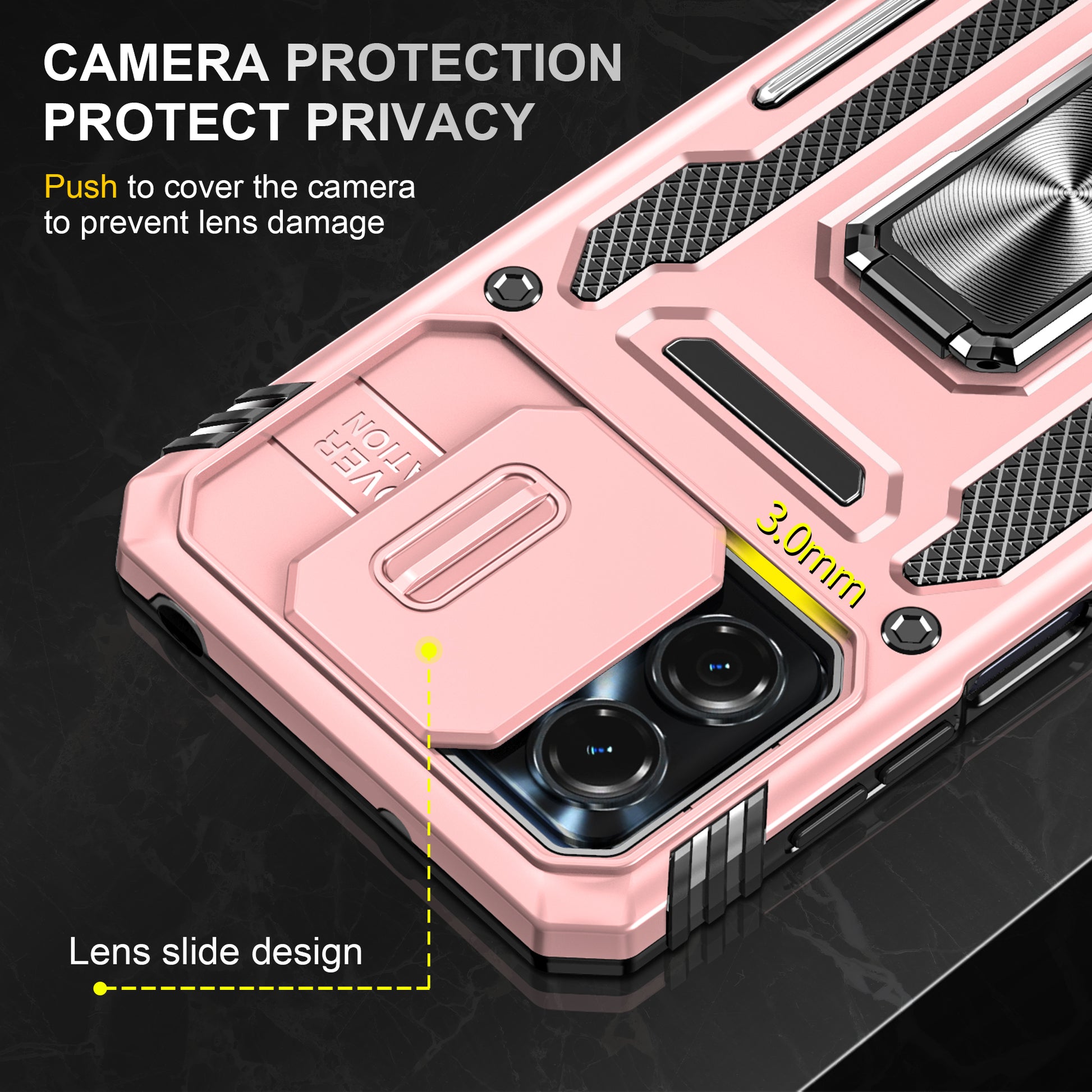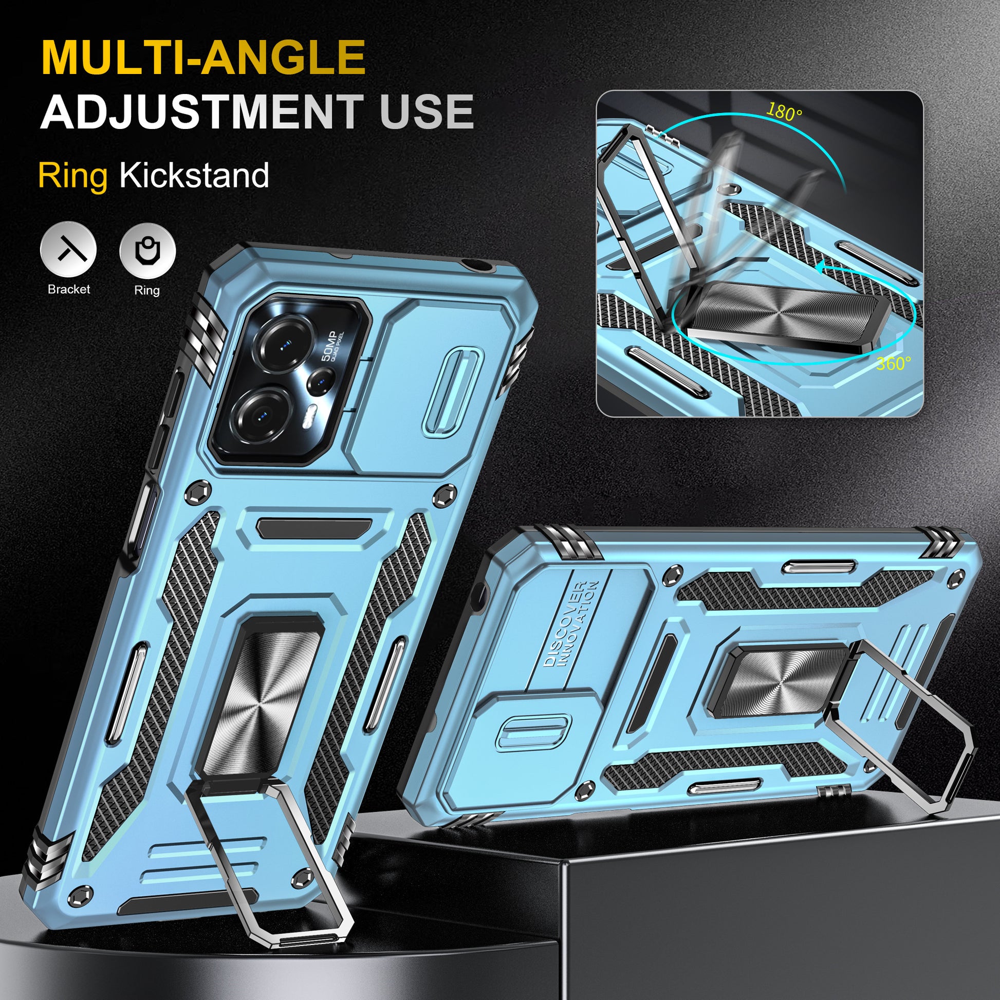 For Motorola Moto G13 4G Armor Series PC + TPU Shockproof Phone Case Ring Kickstand Cover with Slide Camera Lid