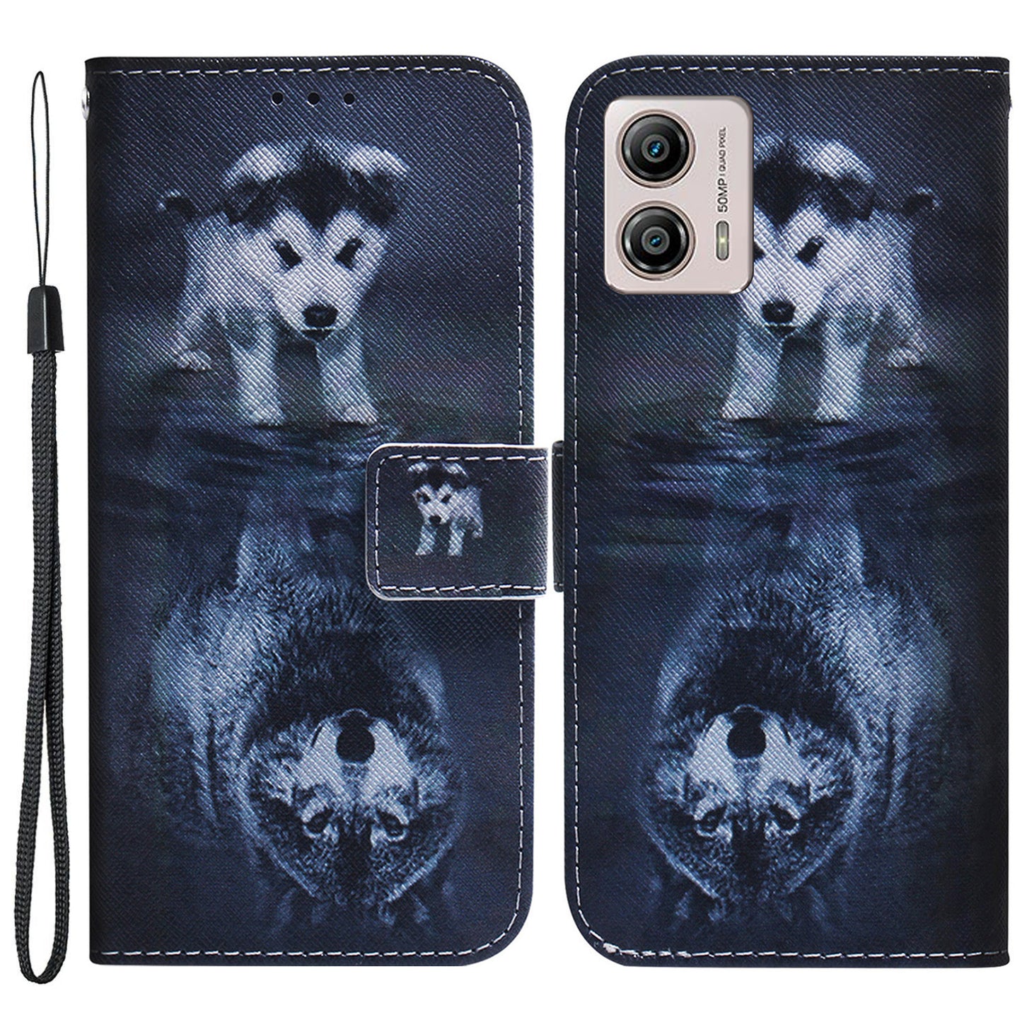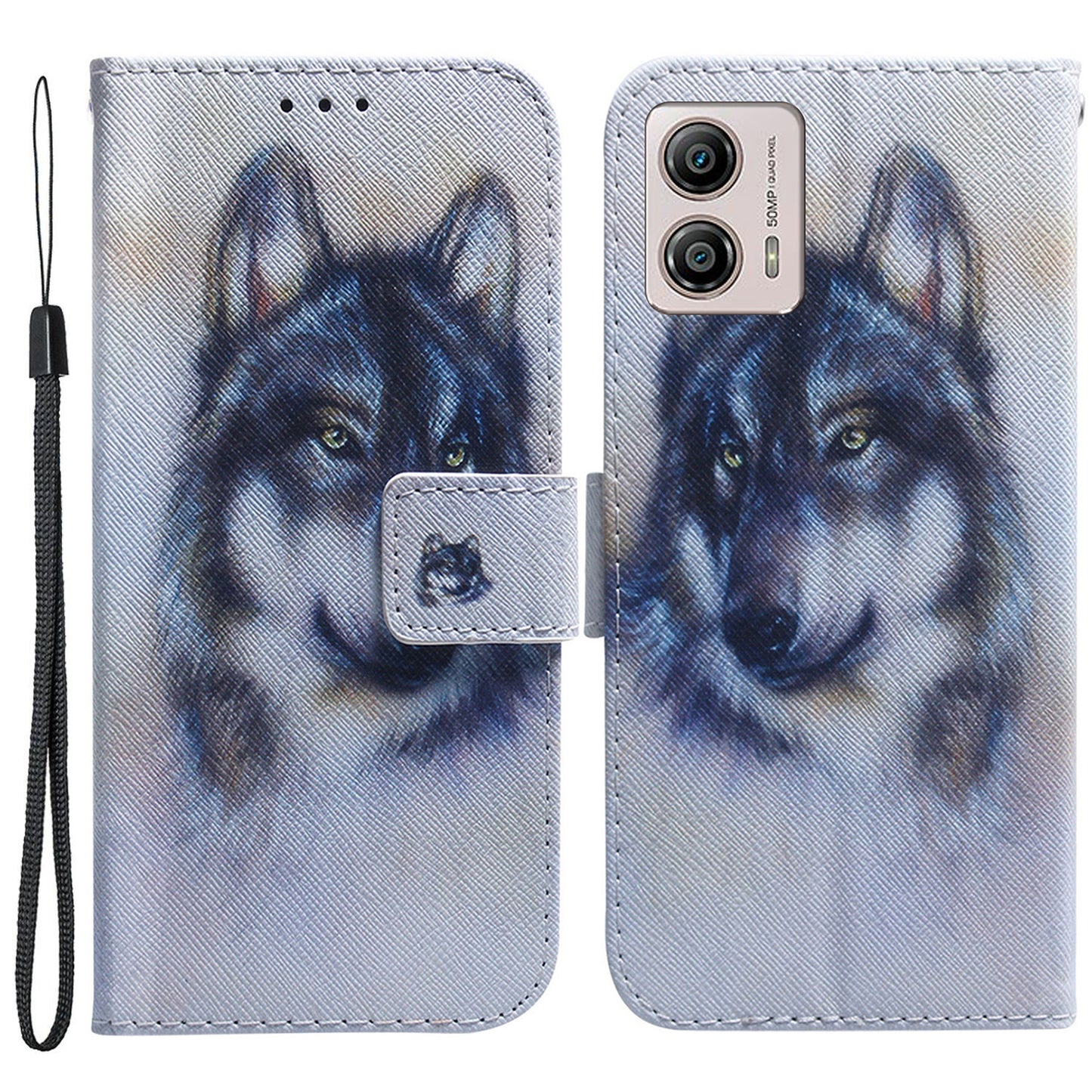 For Motorola Moto G13 4G / G23 4G / G53 5G Wallet Phone Case Pattern Printing PU Leather Stand Cover with Wrist Strap