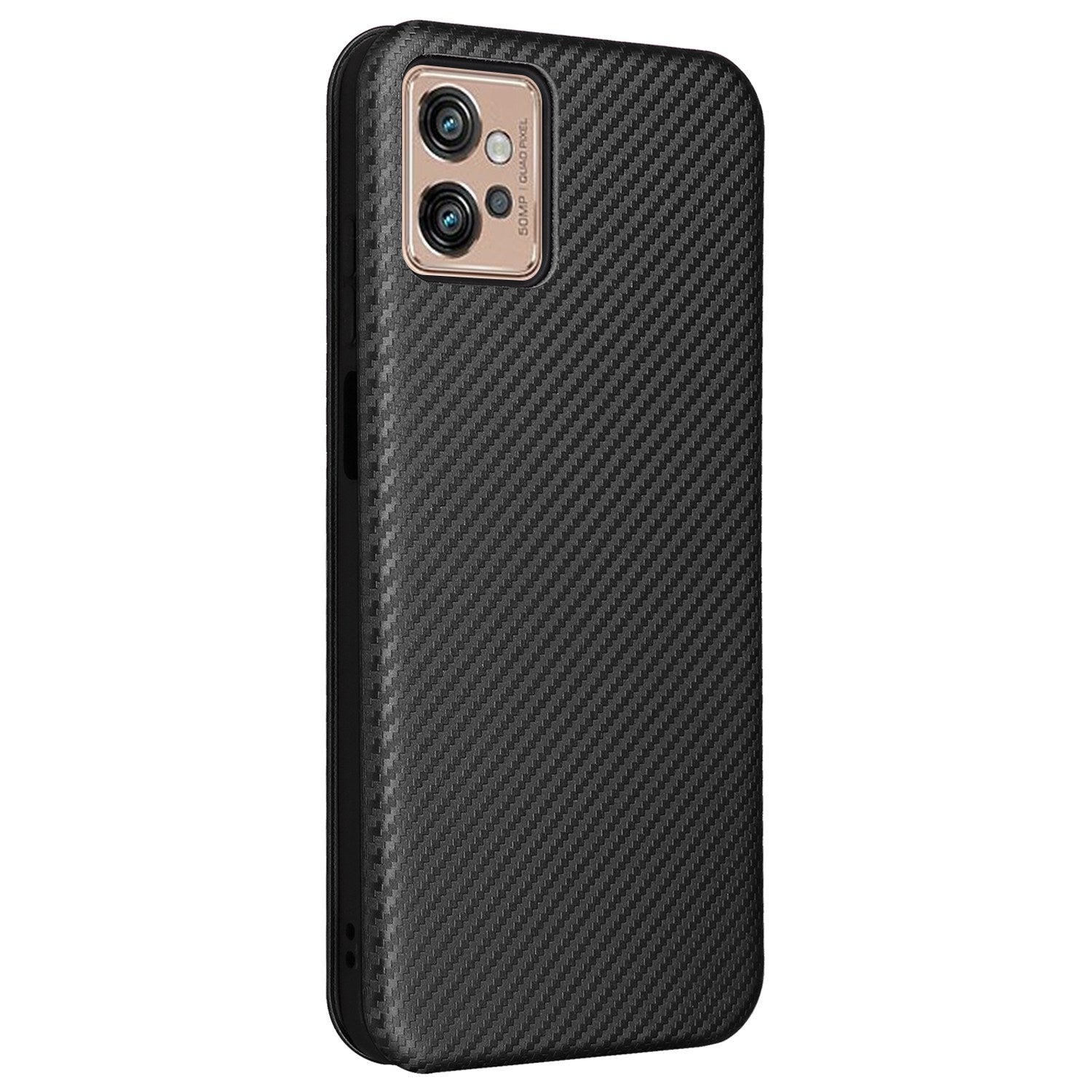 For Motorola Moto G32 4G Carbon Fiber Texture Fall Proof Smartphone Case PU Leather Magnetic Auto-absorbed Stand Card Holder Function Phone Shell