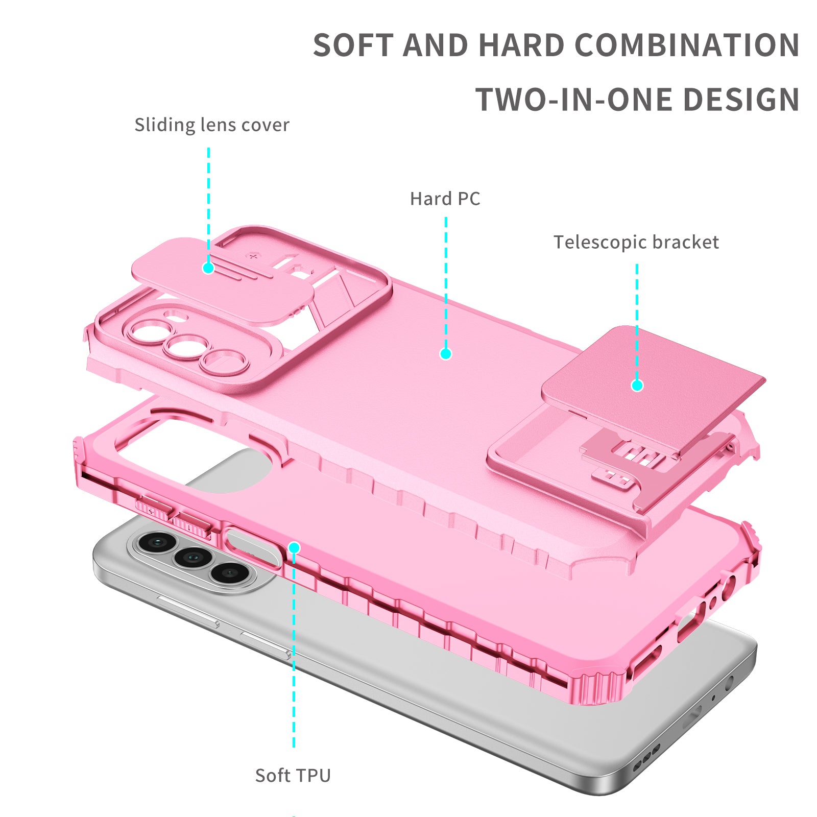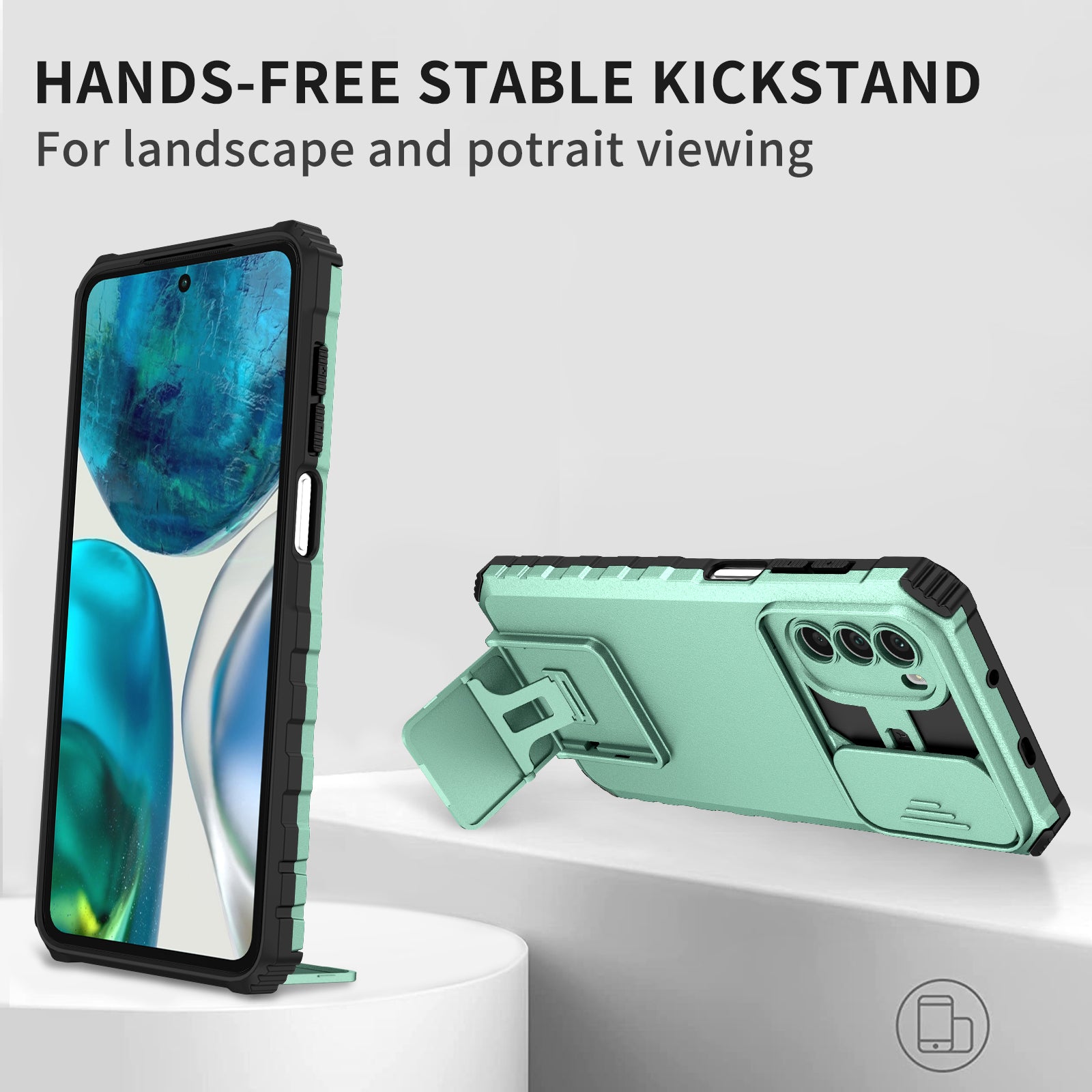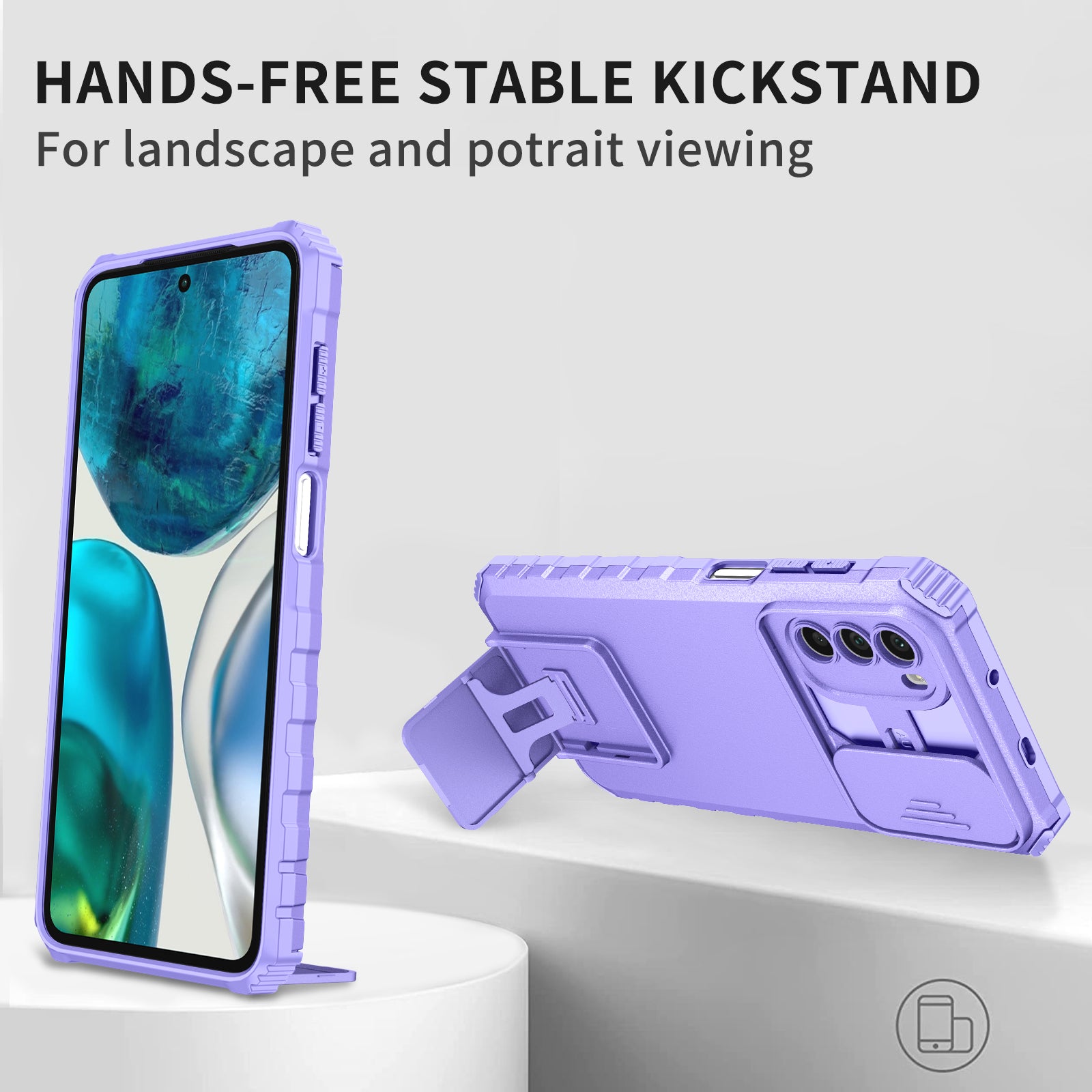 For Motorola Moto G52 4G / G82 5G Kickstand Back Cover Slide Camera Lid PC+TPU Phone Case