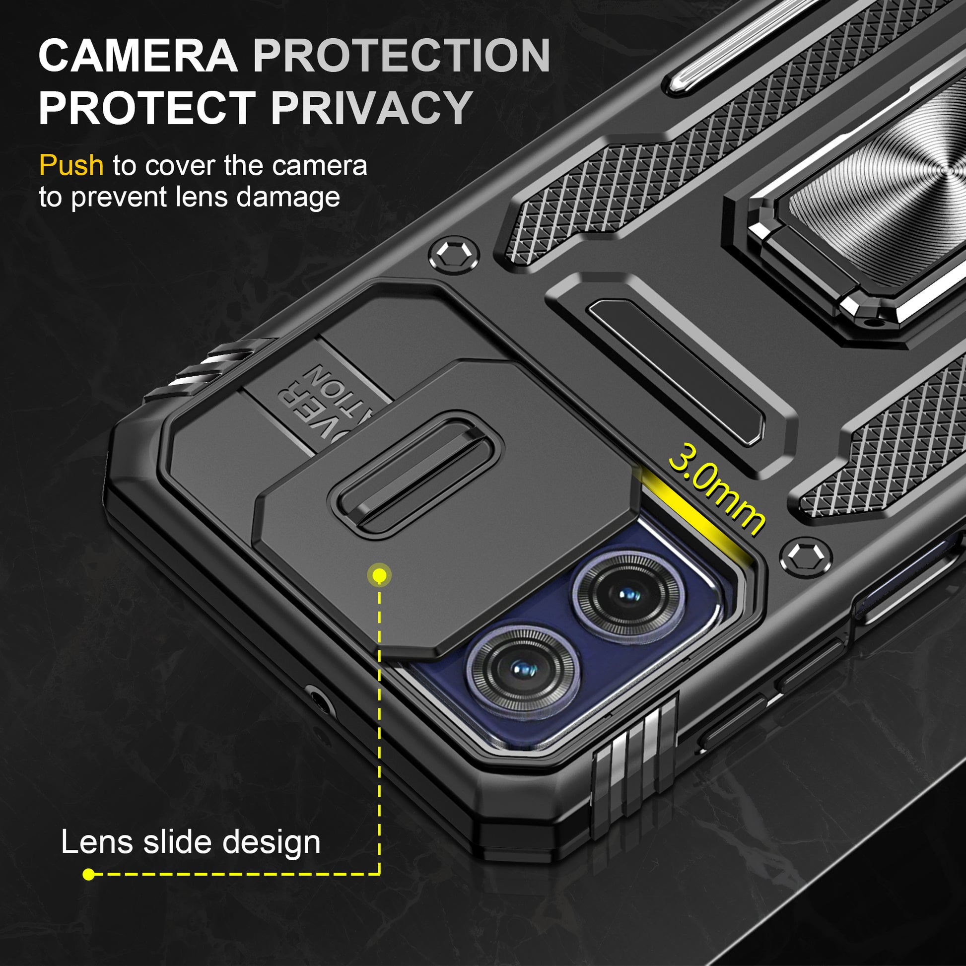 - The movable lens shield is designed for better protection of the camera lens