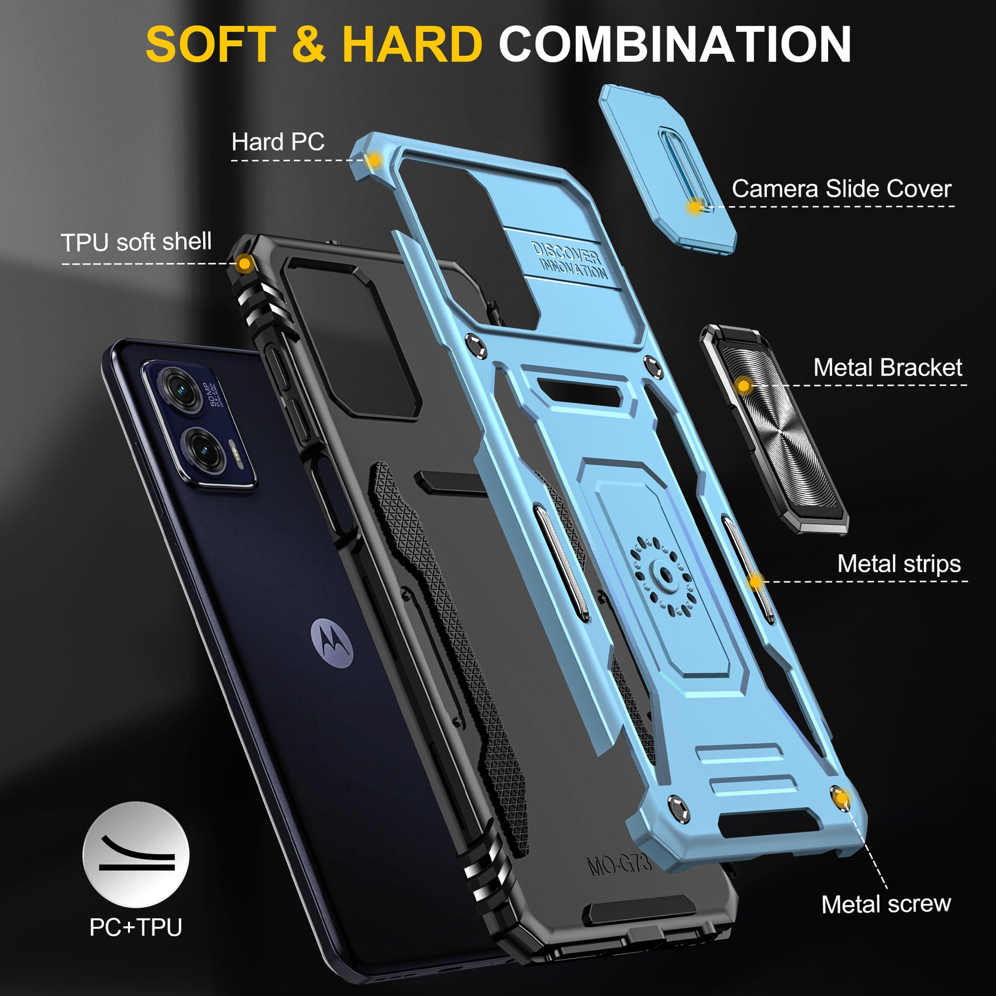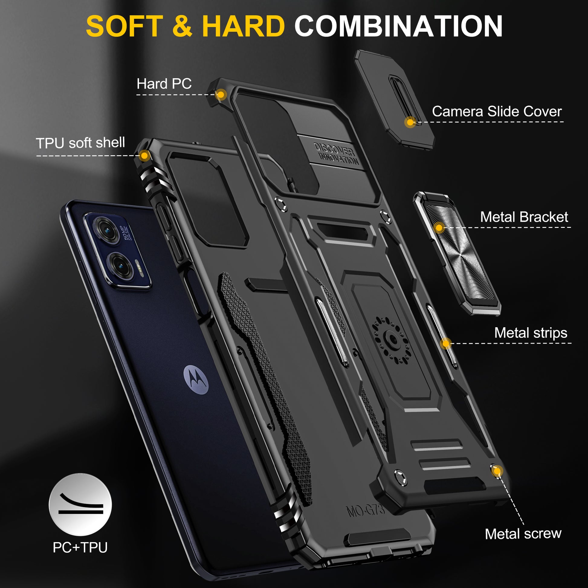 For Motorola Moto G73 5G Armor Series PC + TPU Phone Case Kickstand Shell with Slide Camera Protector Cover
