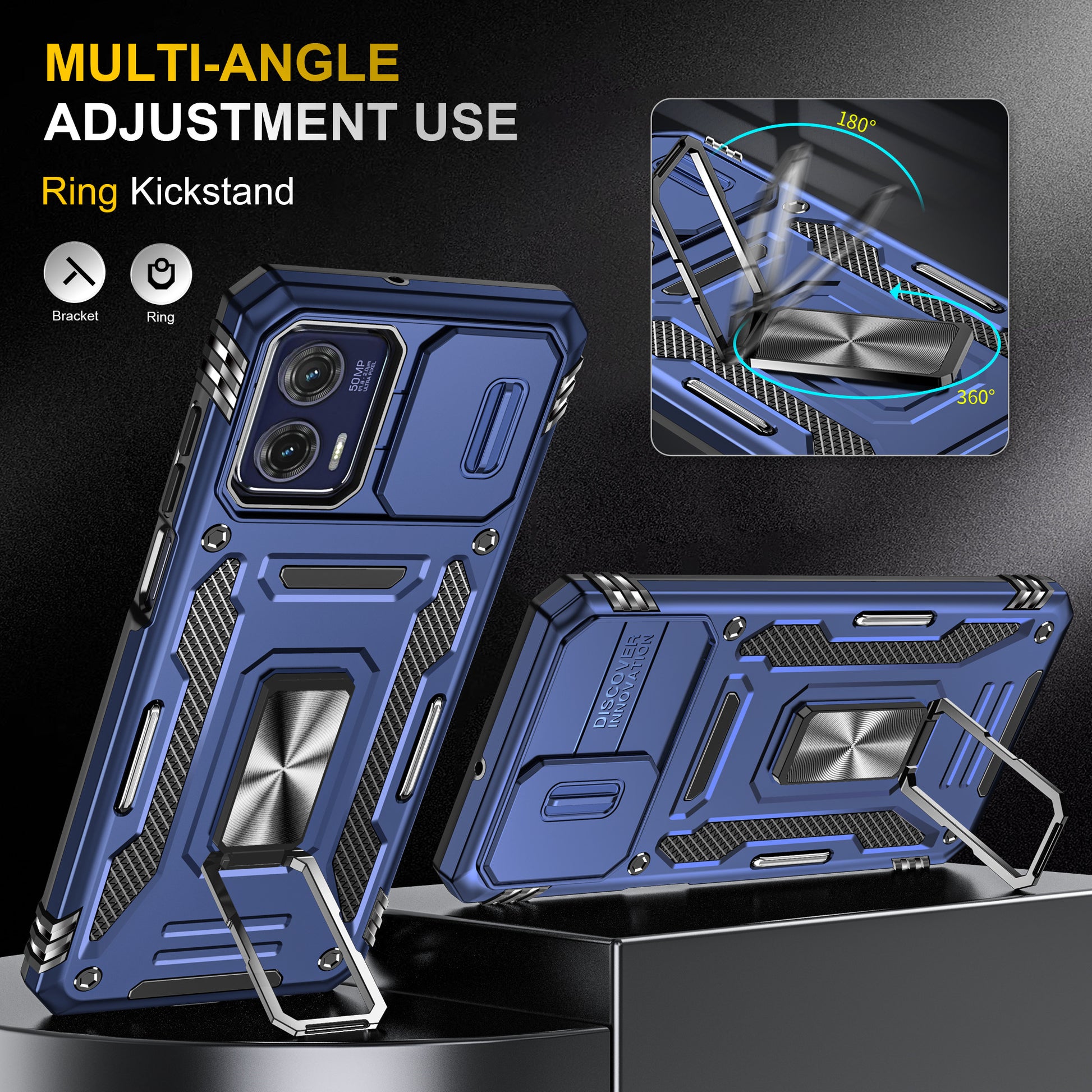 - The built-in adjustable kickstand allows a one-hand operation and multi-angle support