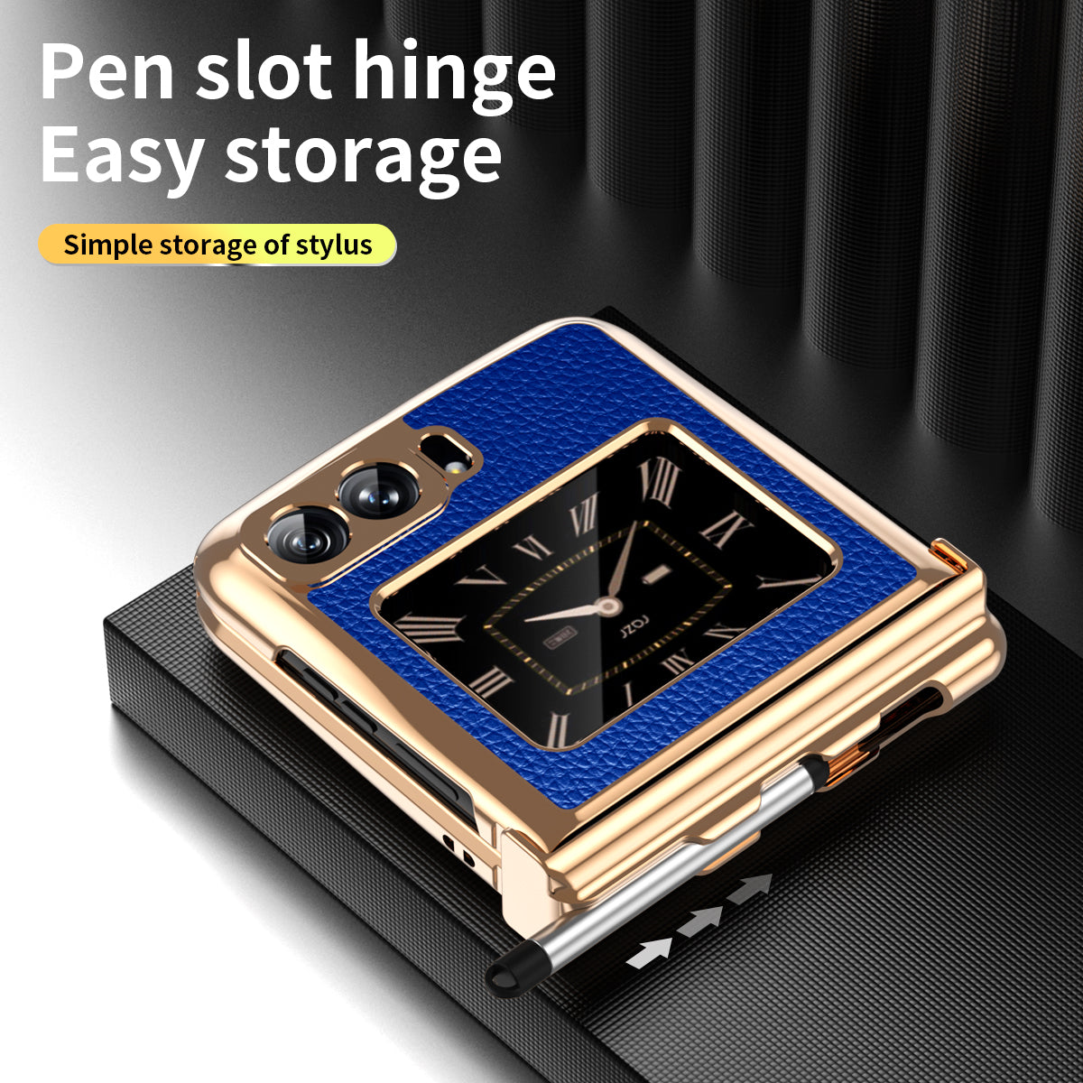 For Motorola Moto Razr 2022 5G Phone Case Shockproof Phone Cover Electroplating PU Leather + PC Phone Case with Pen
