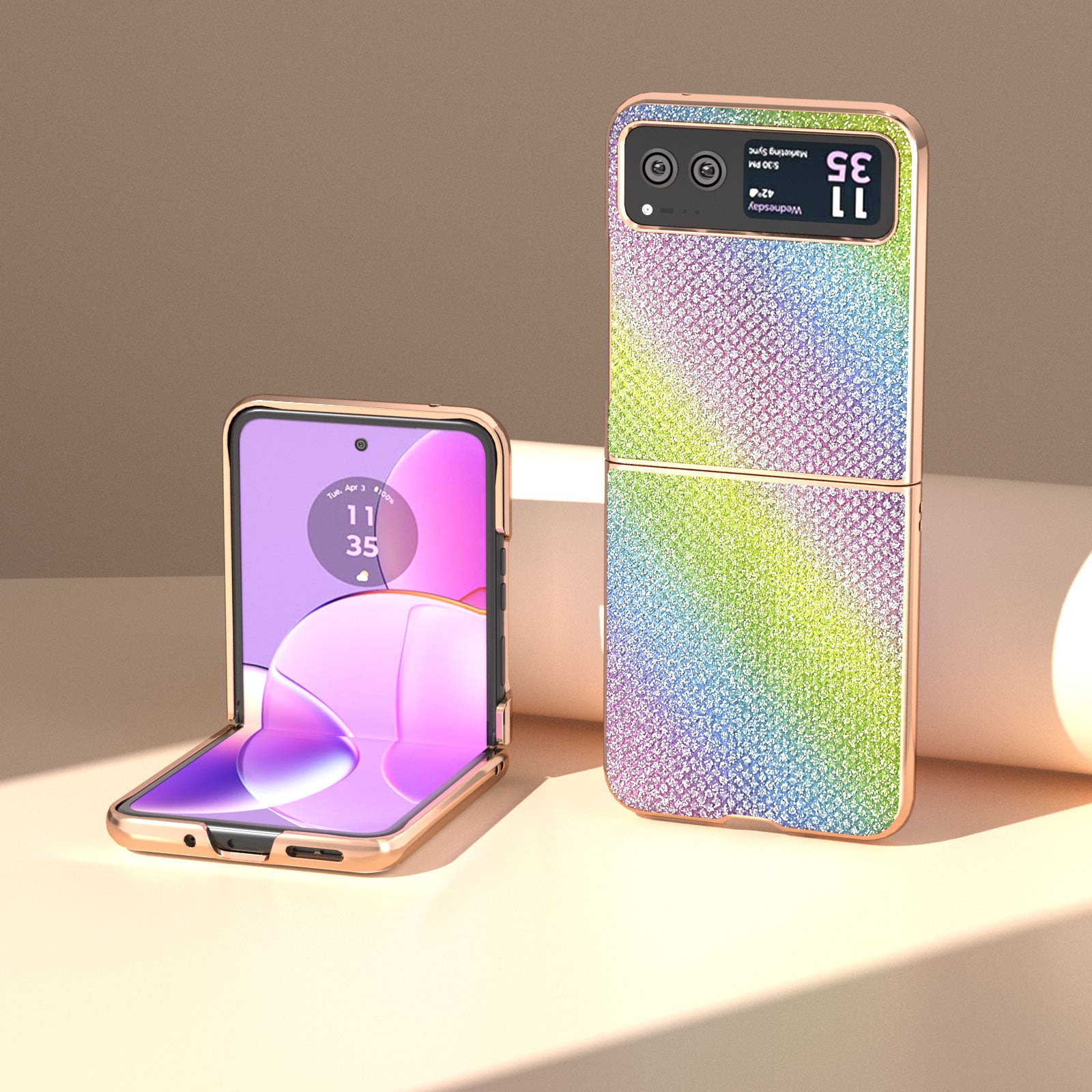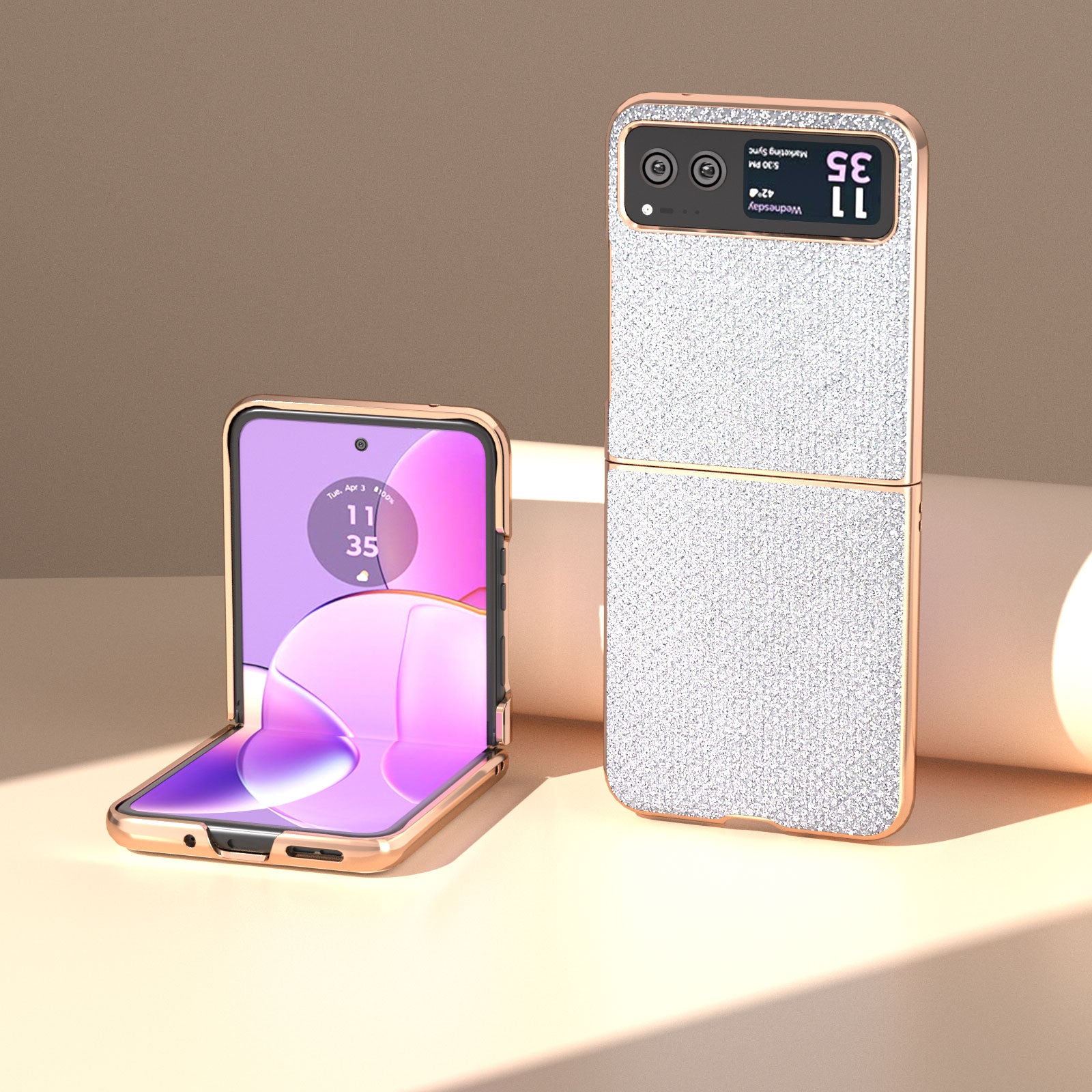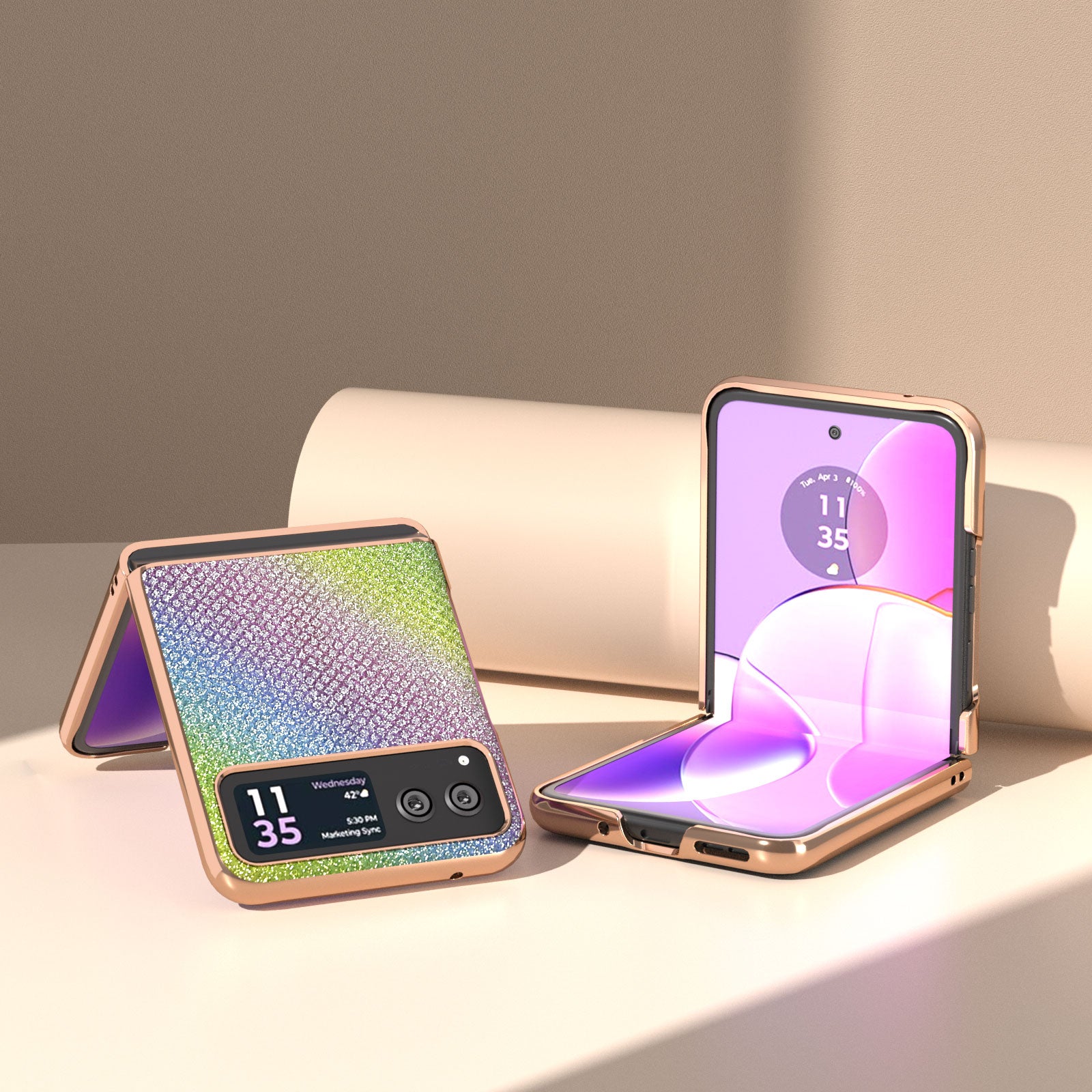 For Motorola Razr 40 5G Rhinestone Texture Non-Slip Case PU Leather + PC Electroplating Phone Cover