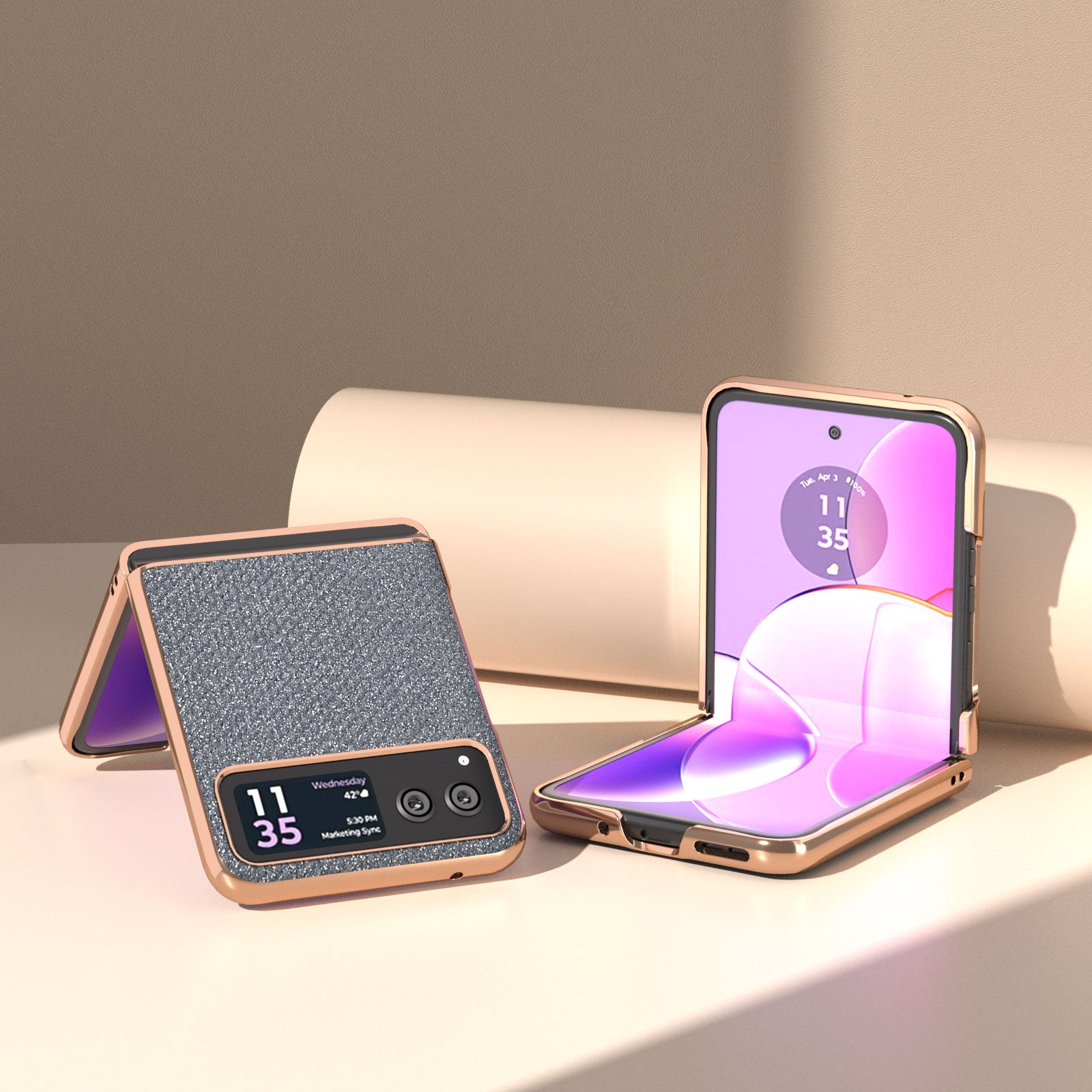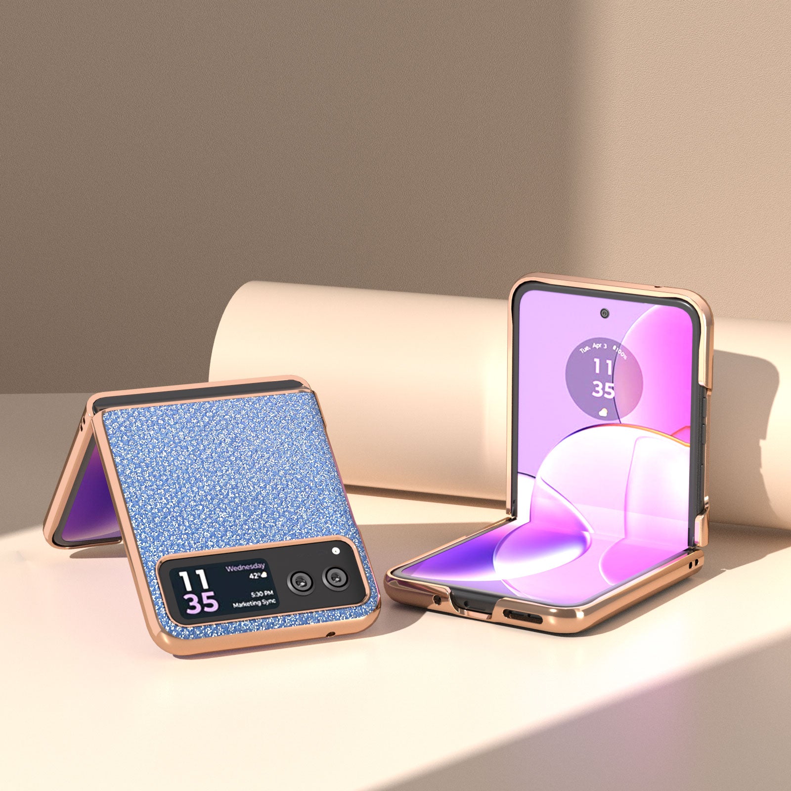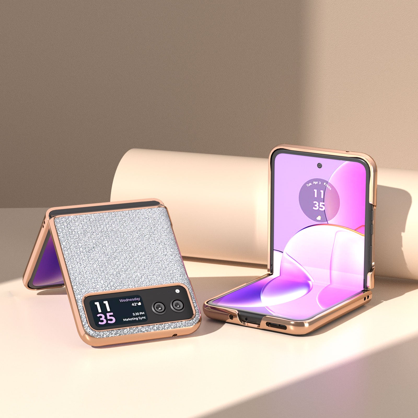 For Motorola Razr 40 5G Rhinestone Texture Non-Slip Case PU Leather + PC Electroplating Phone Cover