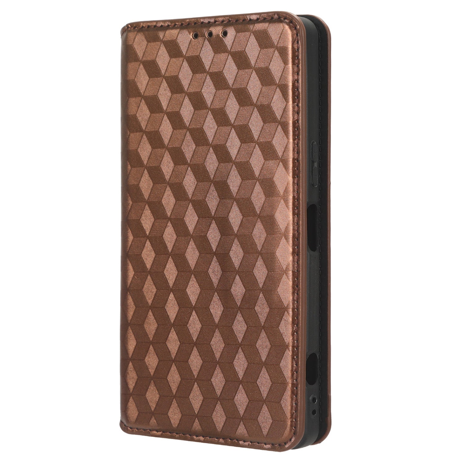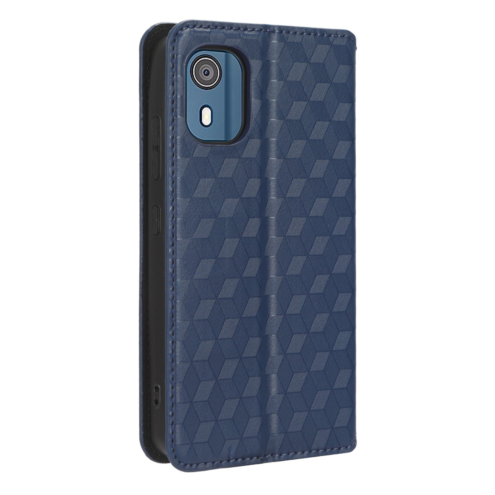For Nokia C02 Phone Stand Shell Case Wallet PU Leather Rhombus Imprinted Anti-drop Phone Cover