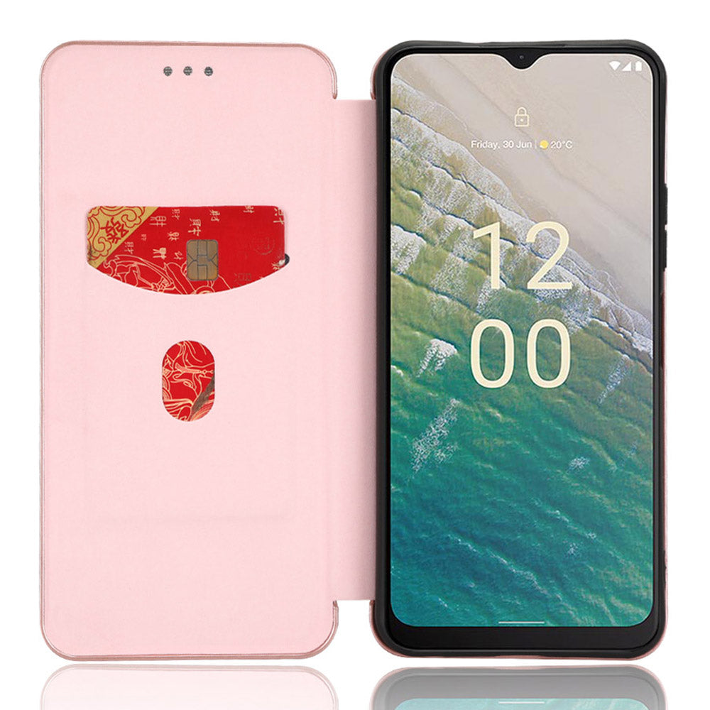 For Nokia C32 PU Leather Carbon Fiber Texture Cover Card Holder Stand Phone Case