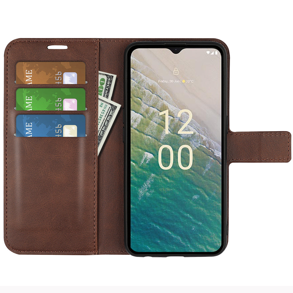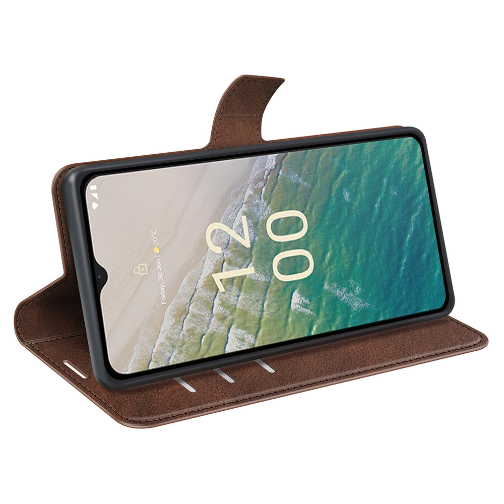 For Nokia C32 Stand Shell Wallet Square Magnetic Closure PU Leather Calf Texture Phone Case