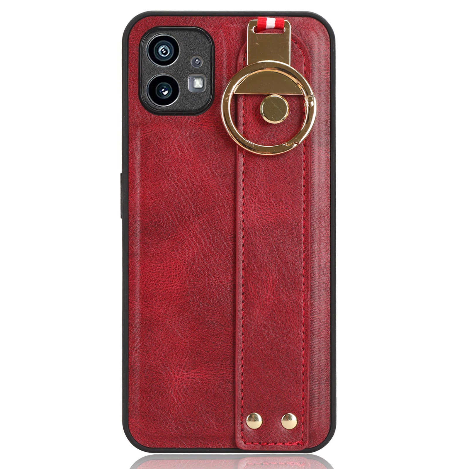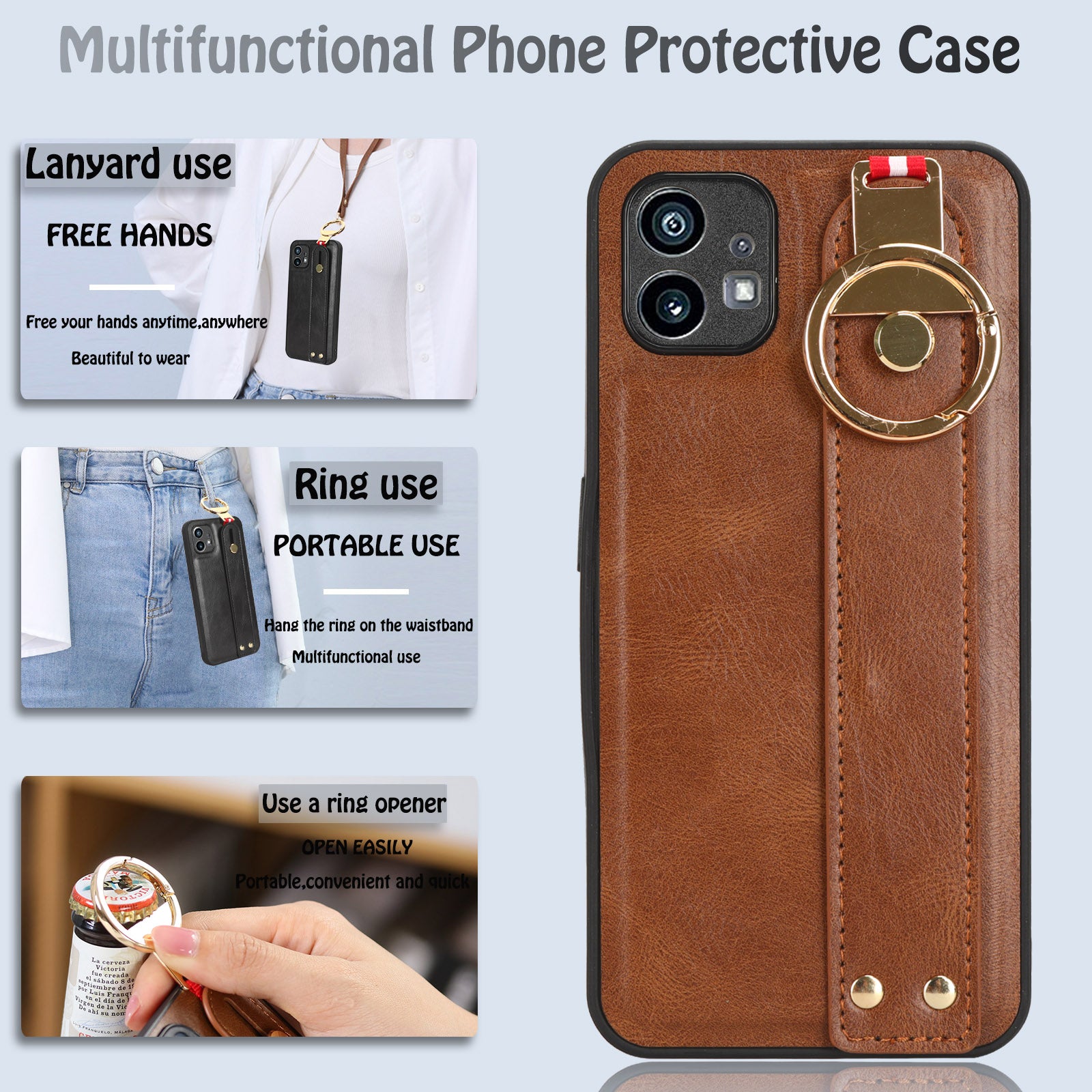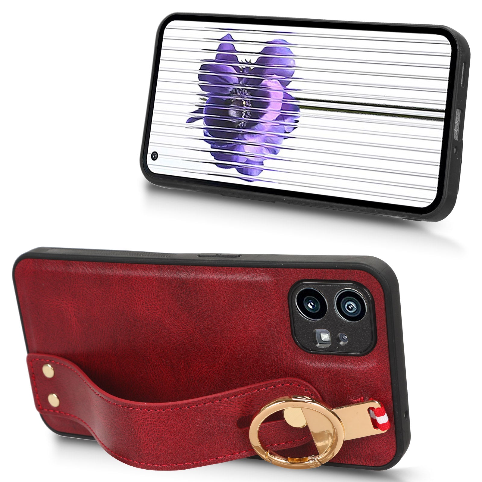 For Nothing phone (1) 5G Wristband Kickstand Phone Cover Leather Coated PC+TPU Phone Case with Neck Strap