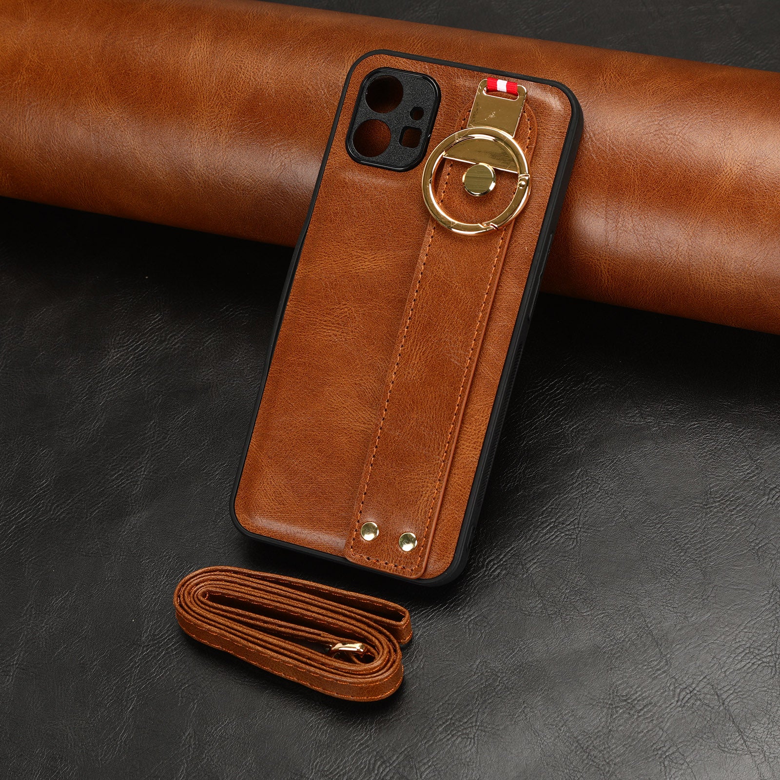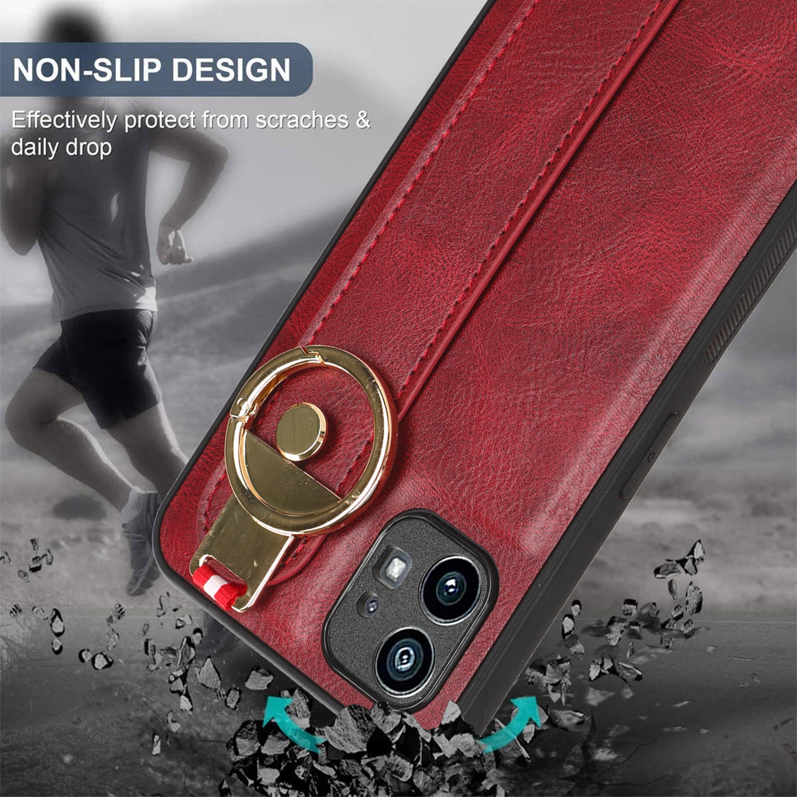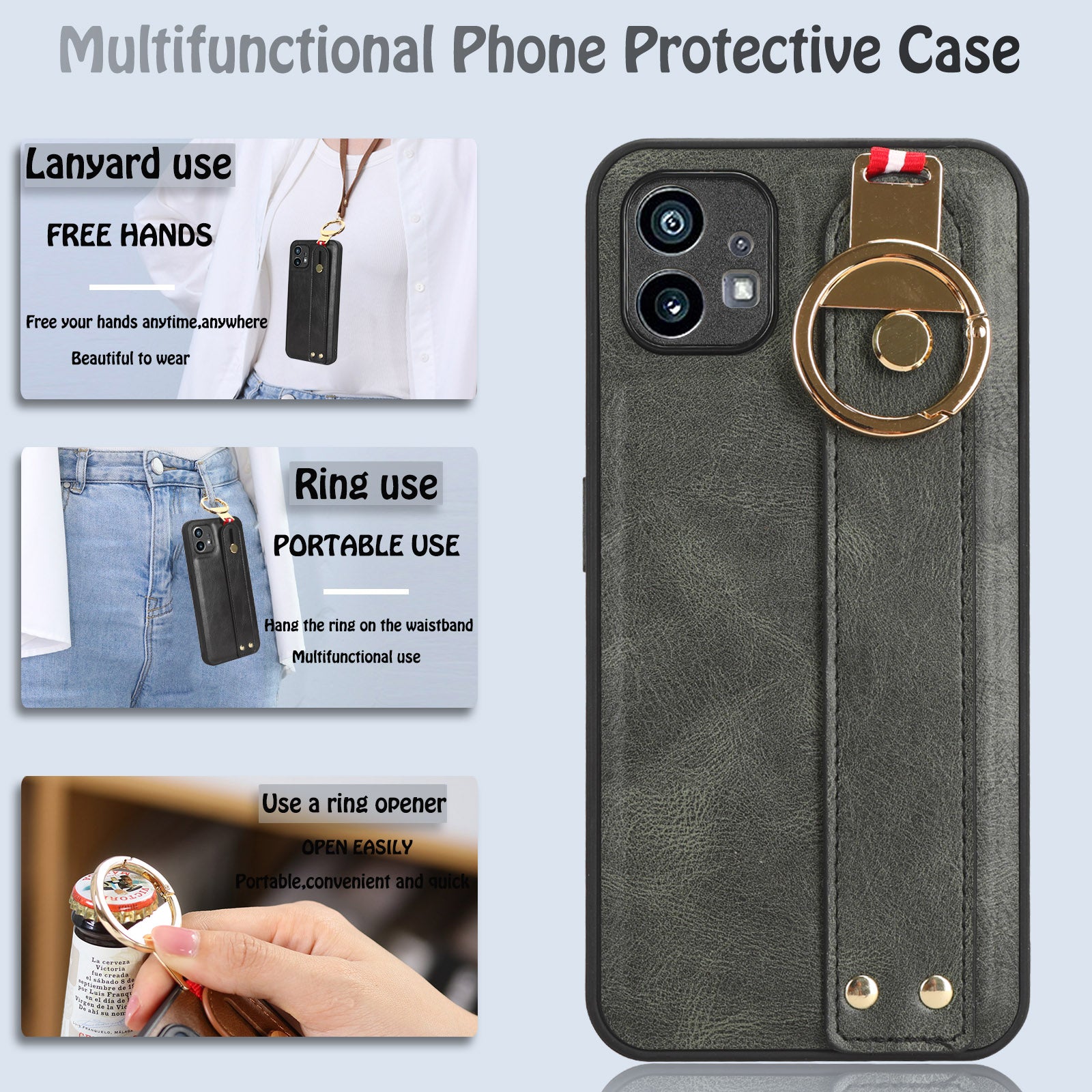 For Nothing phone (1) 5G Wristband Kickstand Phone Cover Leather Coated PC+TPU Phone Case with Neck Strap