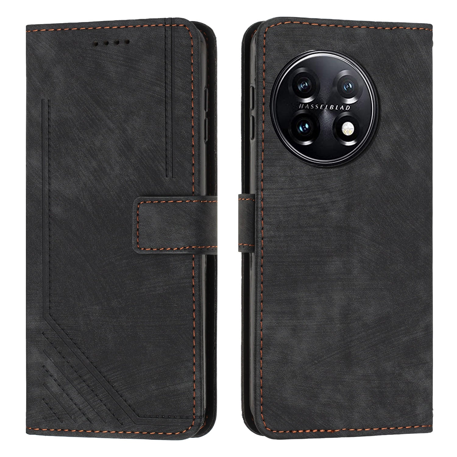 For OnePlus 11 5G PU Leather Skin-touch Wallet Case Stand Lines Imprinted TPU Inner Shell Phone Cover