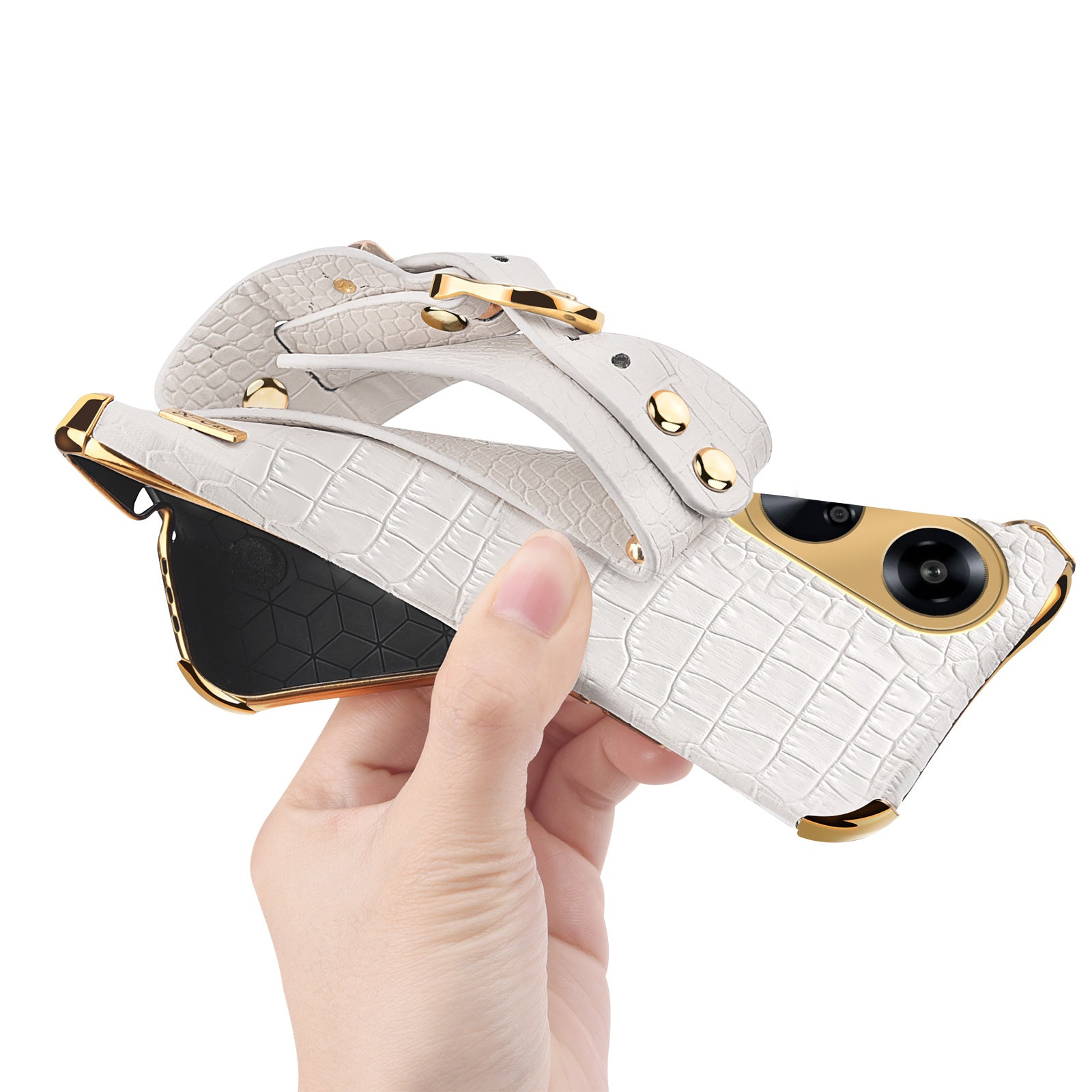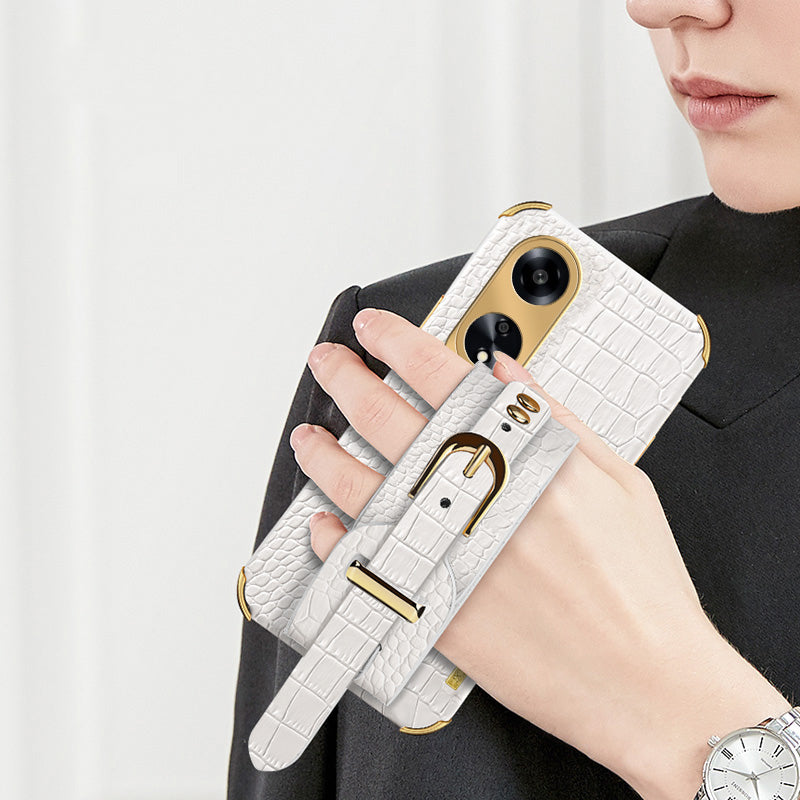 For Oppo A1 5G Electroplating Phone Case Wristband Kickstand Leather Coated TPU Phone Cover