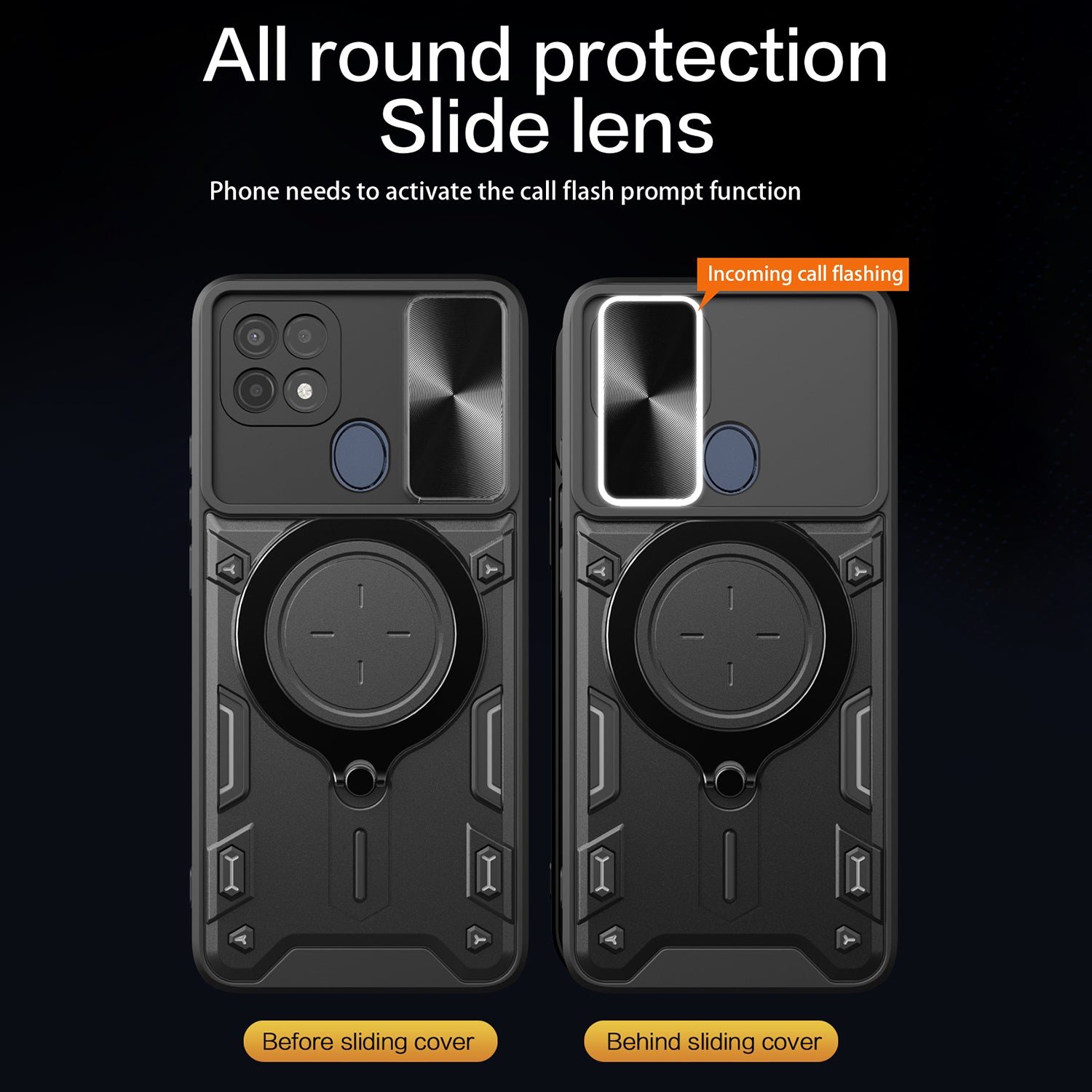 For Oppo A15 / A15s / A35 Slide Camera Guard Phone Case Rotating Kickstand PC+TPU Cover