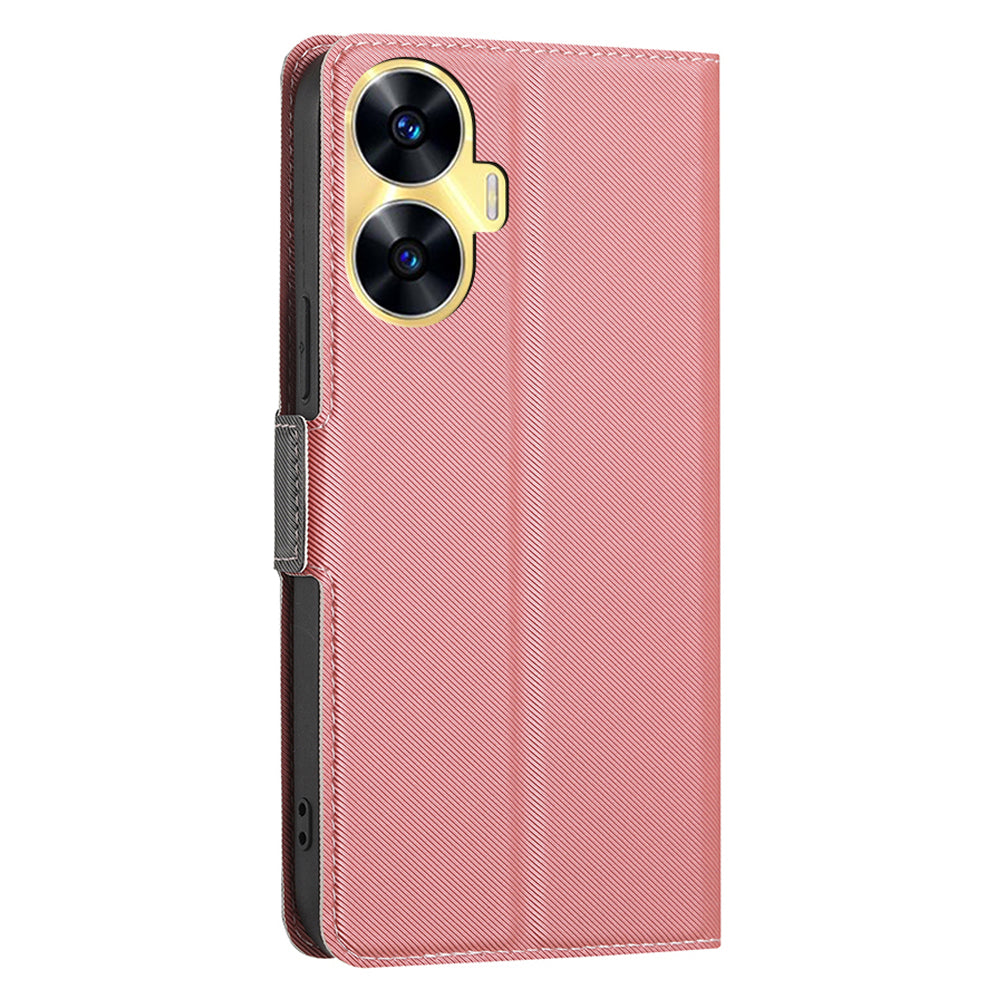 For Realme C55 Card Slot Twill Texture Phone Cover Stand Anti-Scratch TPU+PU Leather Case