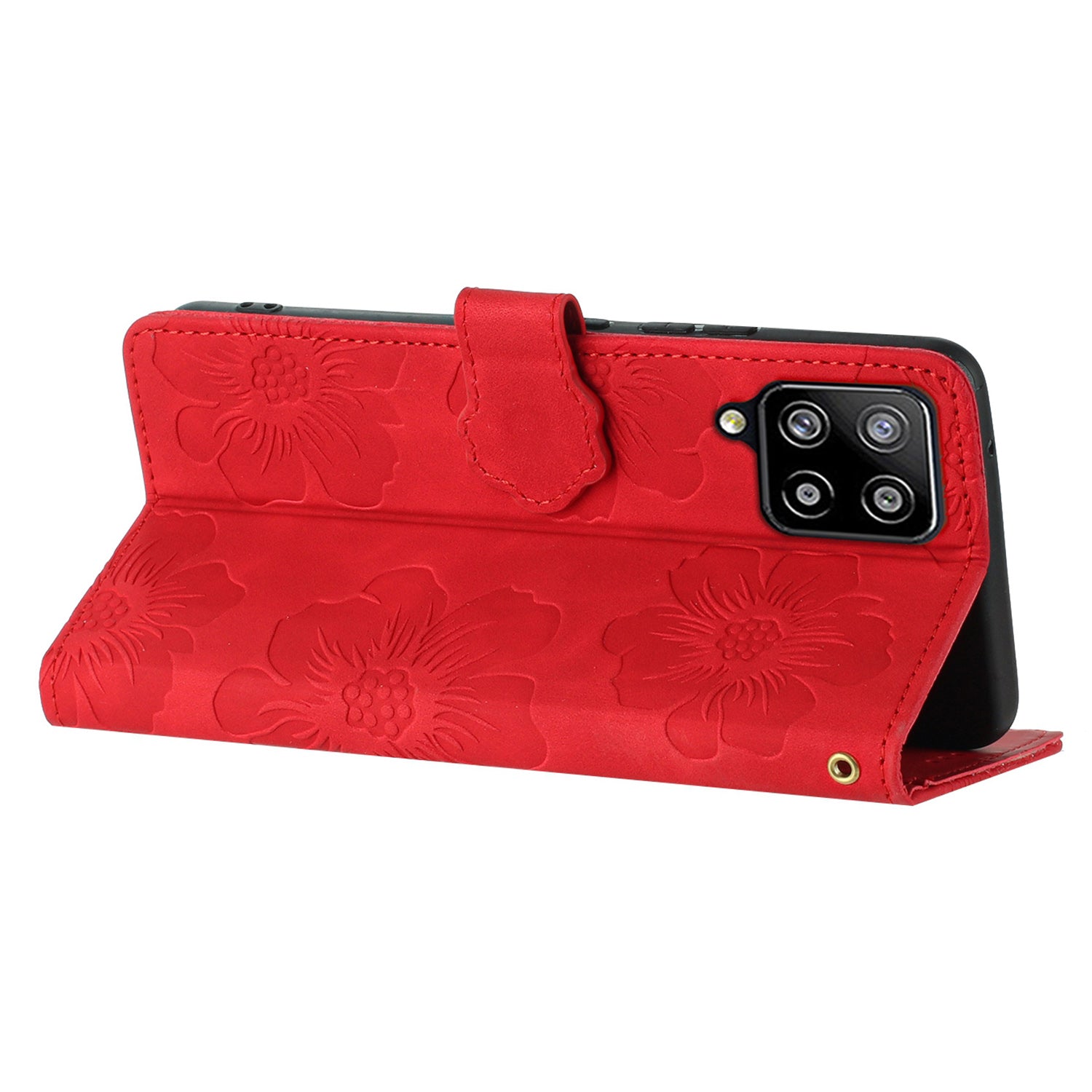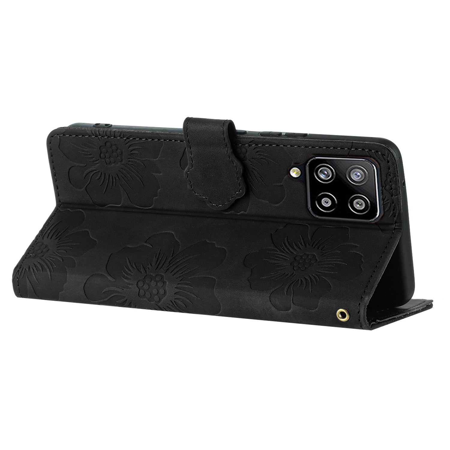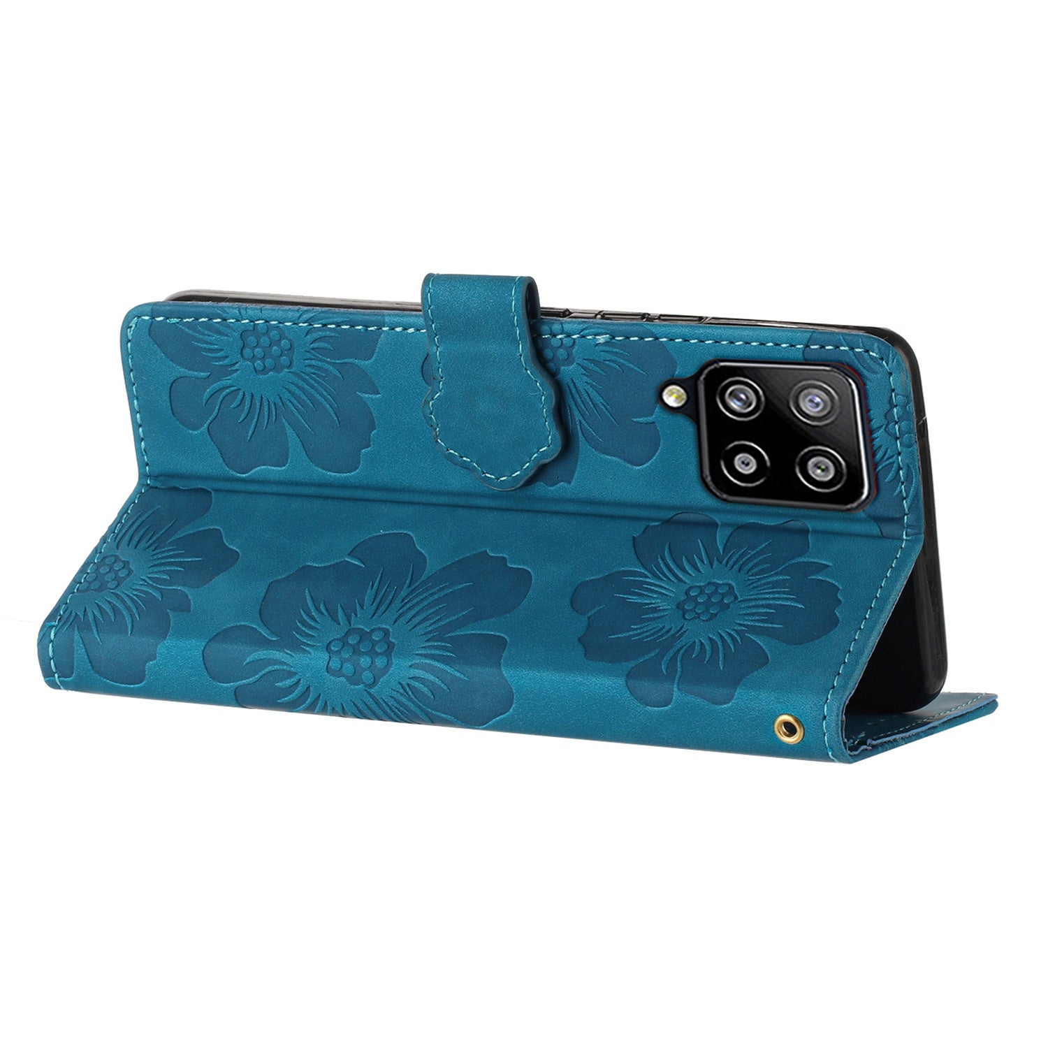 For Samsung Galaxy A22 4G (EU Version) Flowers Imprinted Wallet Cover PU Leather Folding Stand Phone Case