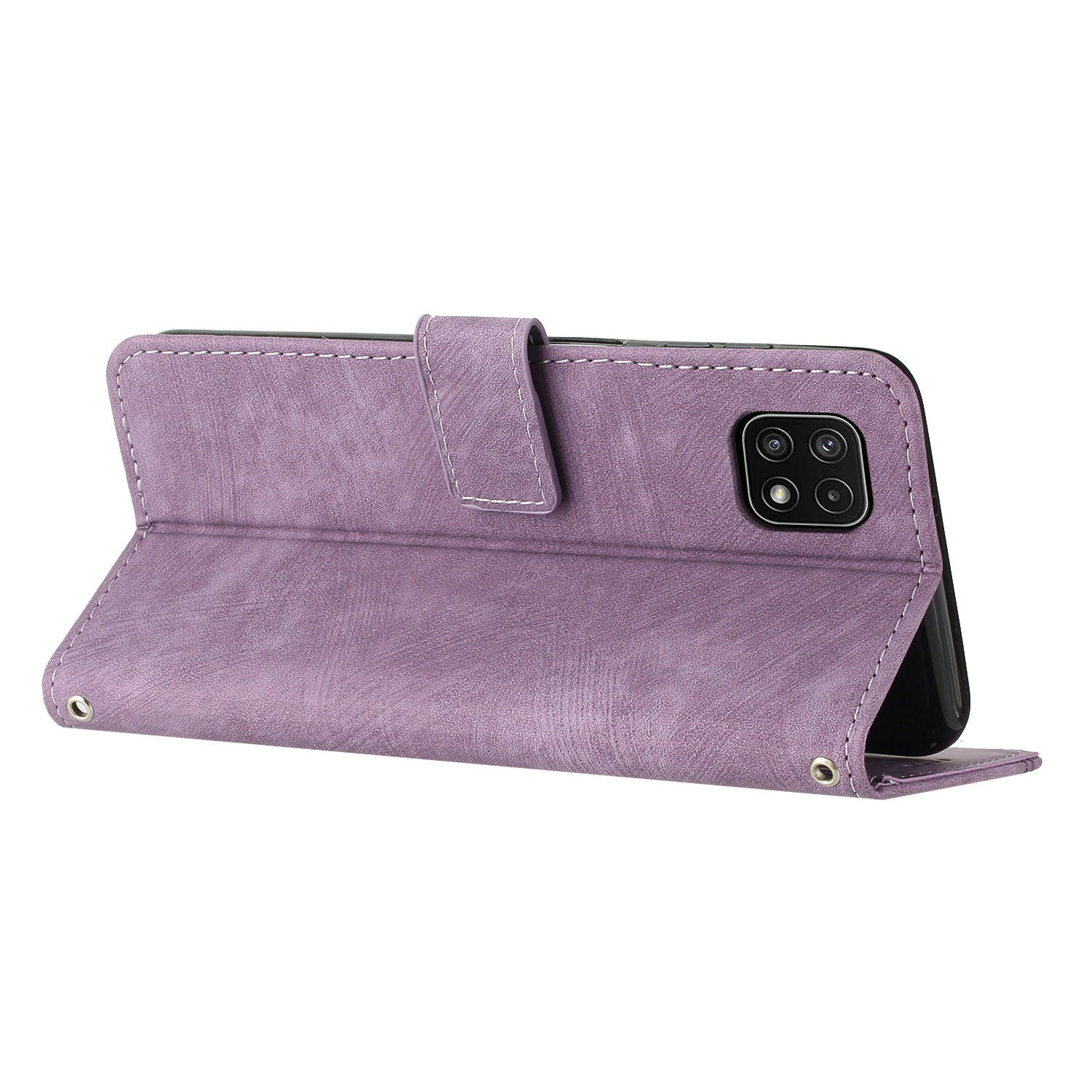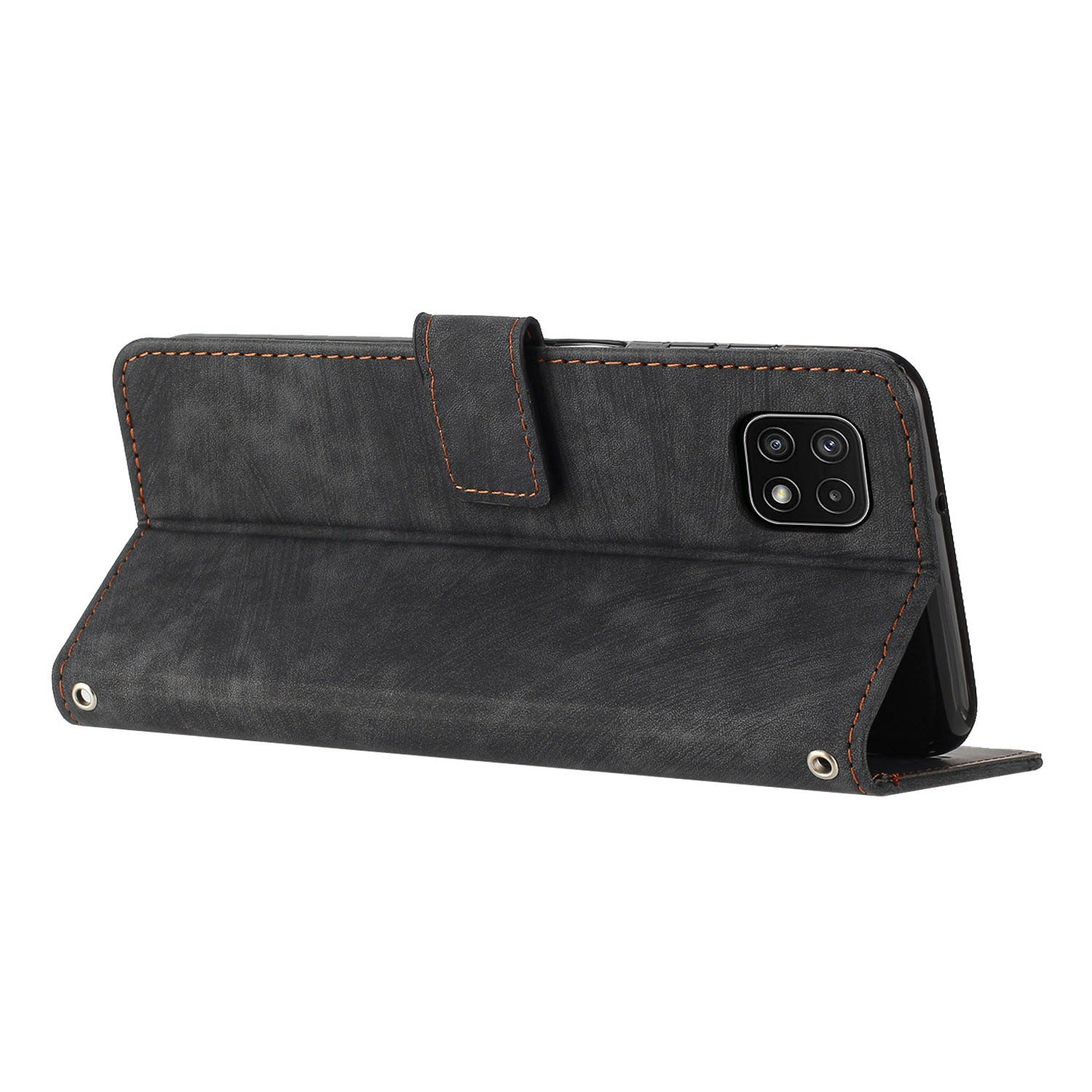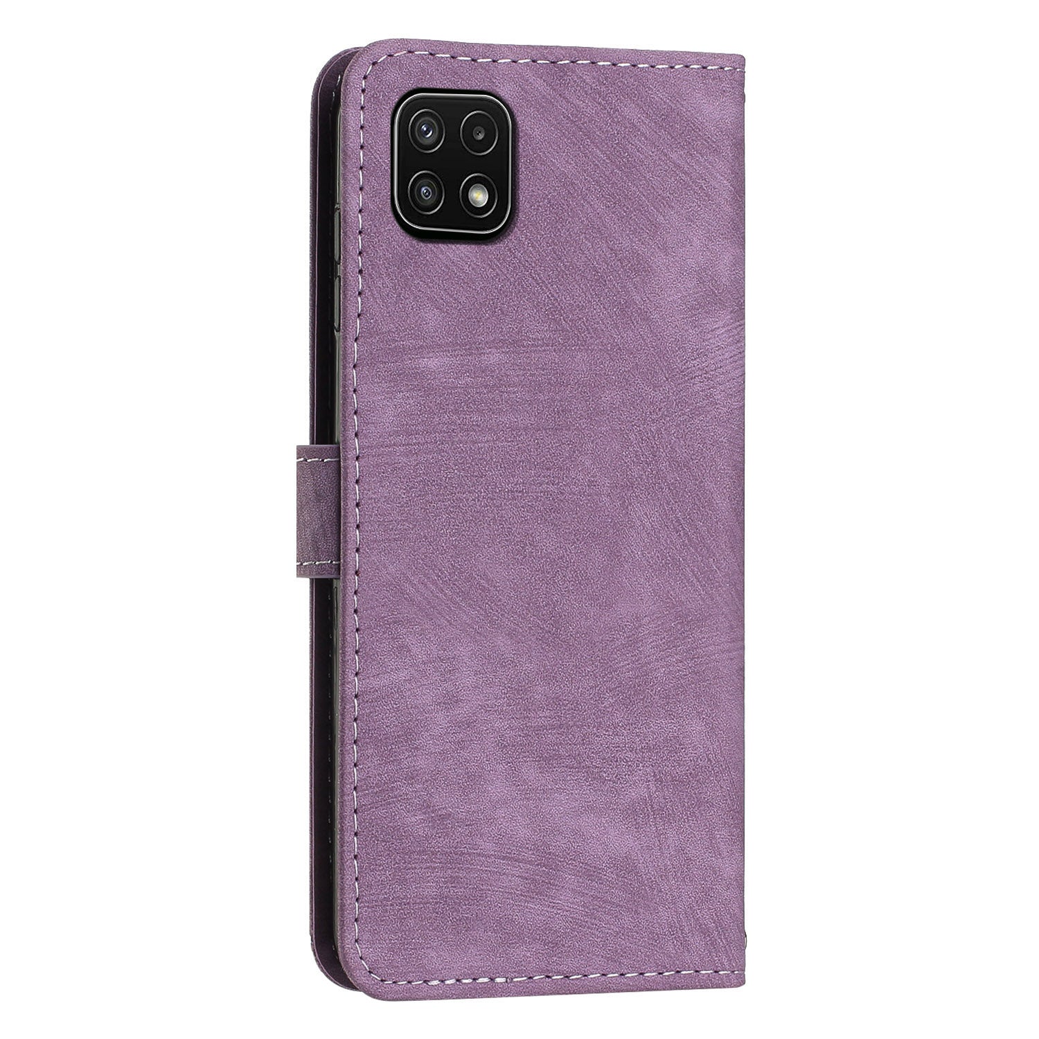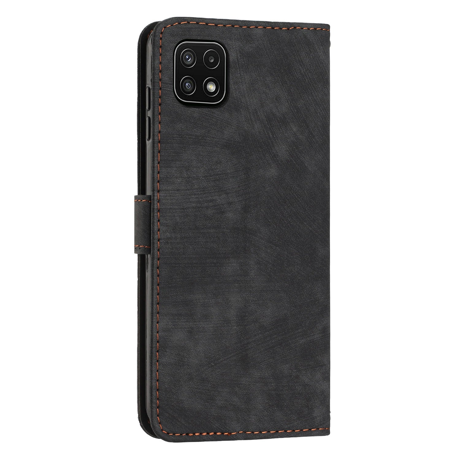 For Samsung Galaxy A22 5G (EU Version) Wallet Phone Case Skin-Touch Lines Imprinted PU Leather Cover