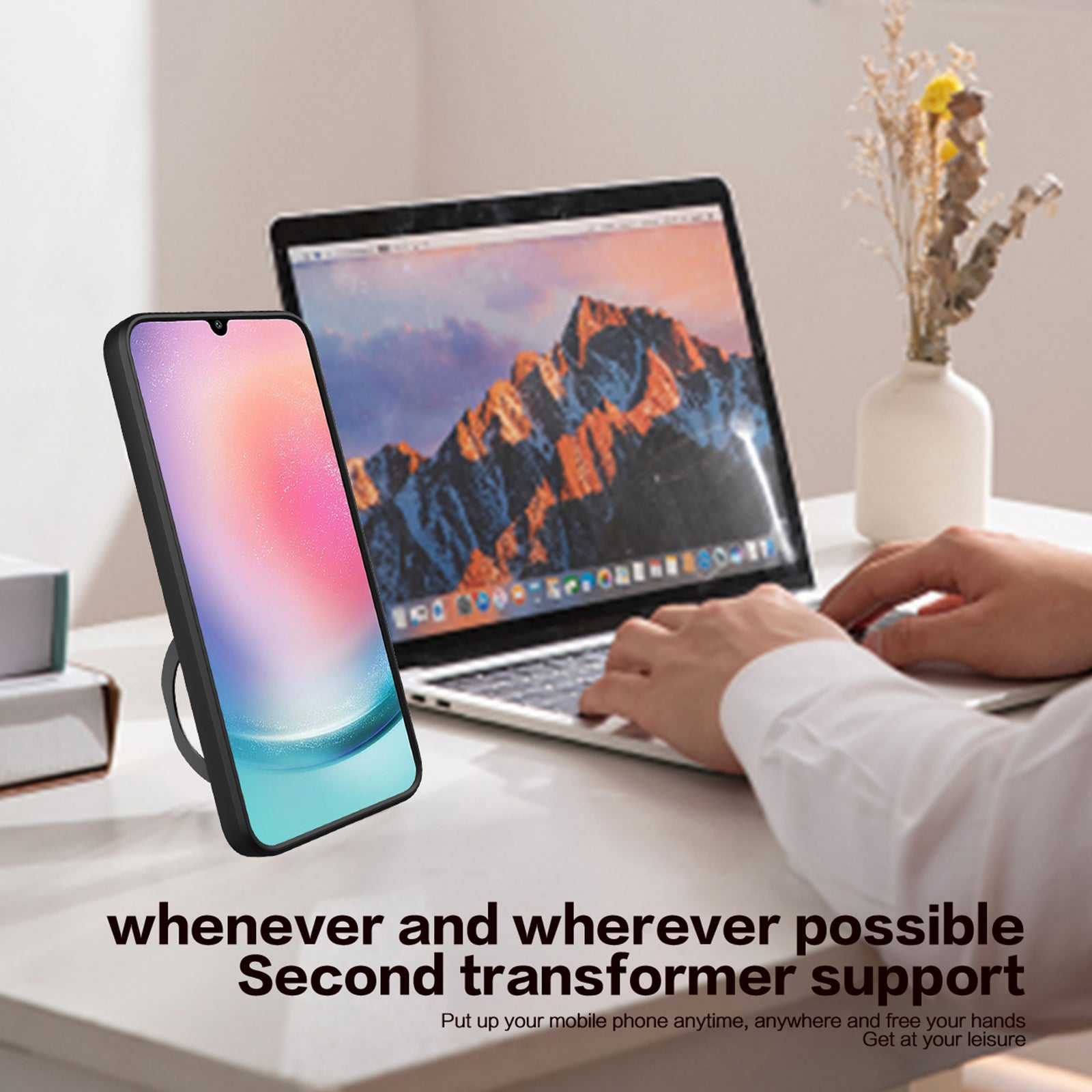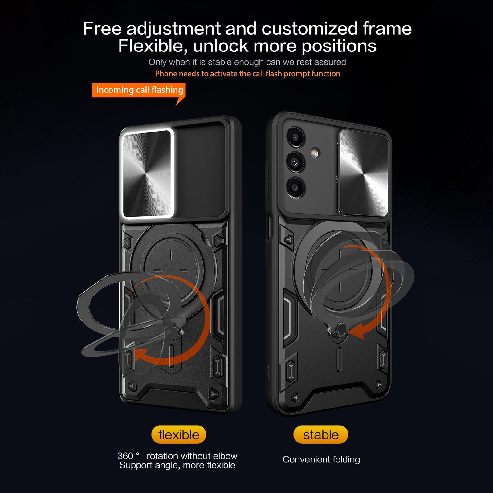 For Samsung Galaxy A24 4G Rotating Kickstand Cover TPU+PC Phone Case with Slide Camera Lens Protector