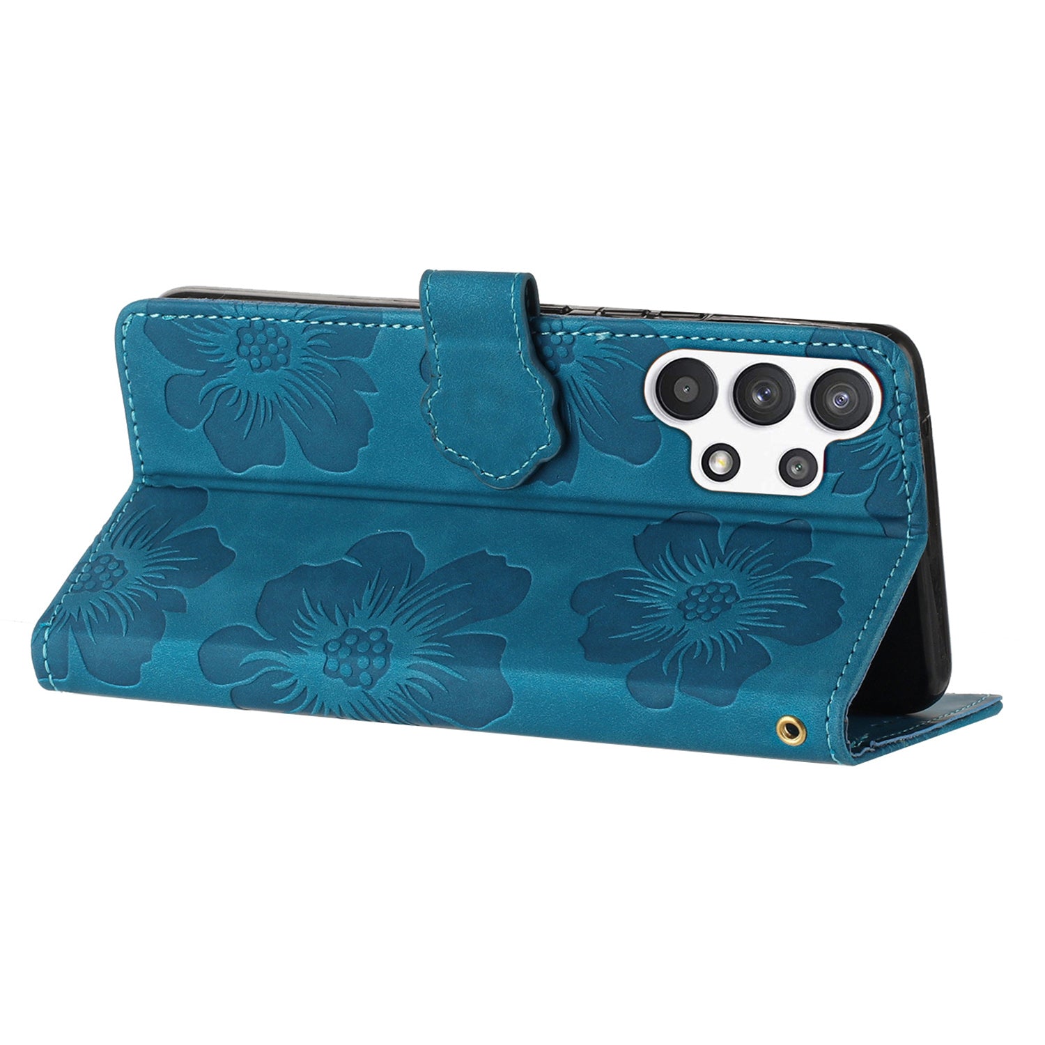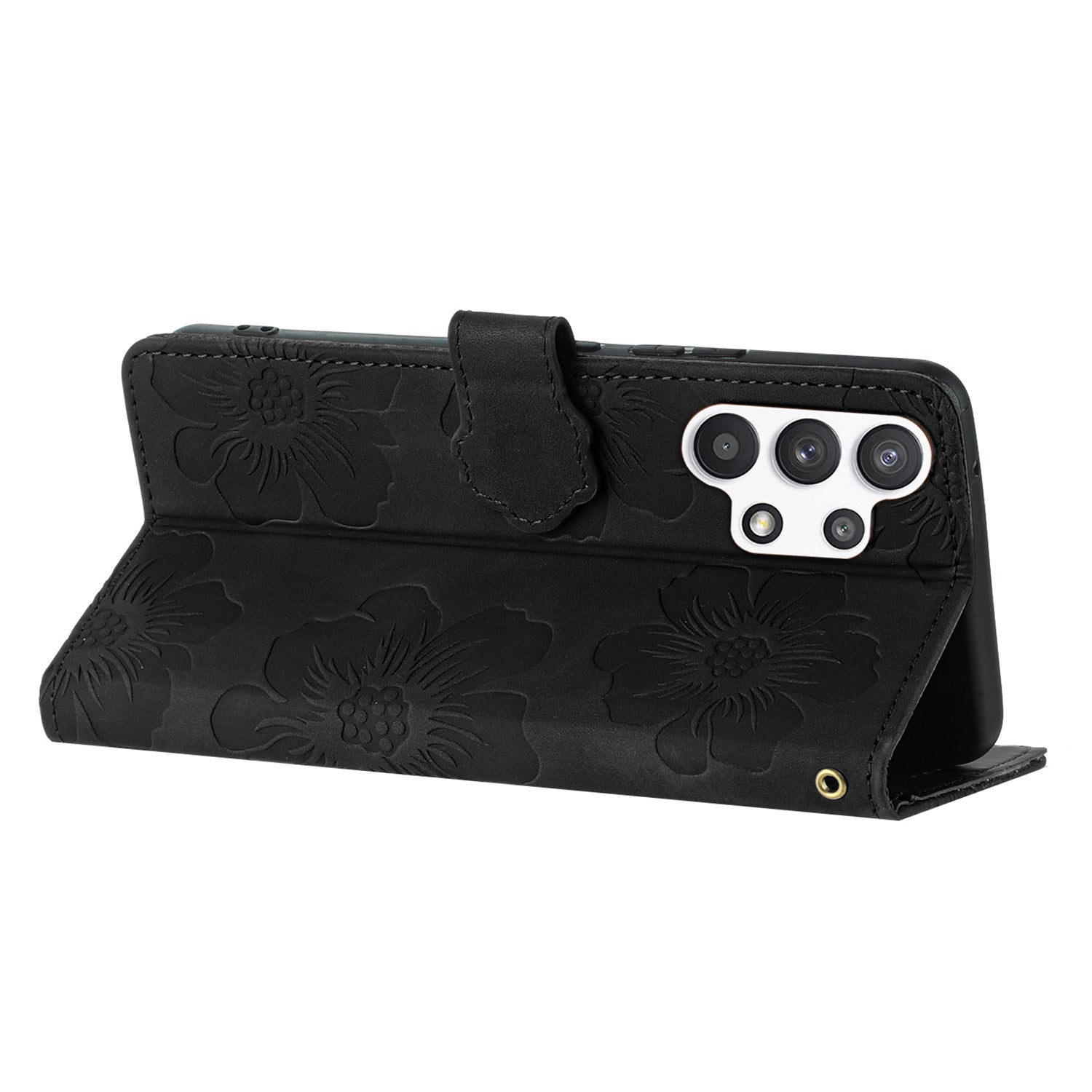 For Samsung Galaxy A32 5G / M32 5G PU Leather Wallet Cover Flowers Imprint Phone Case with Stand