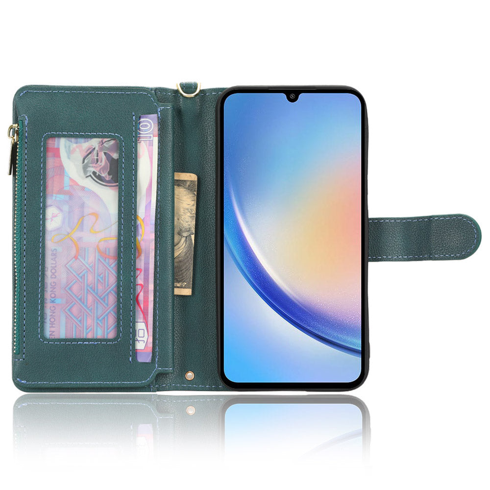 For Samsung Galaxy A34 5G Zipper Pocket Phone Wallet Case Cellphone Cover with 2 Straps