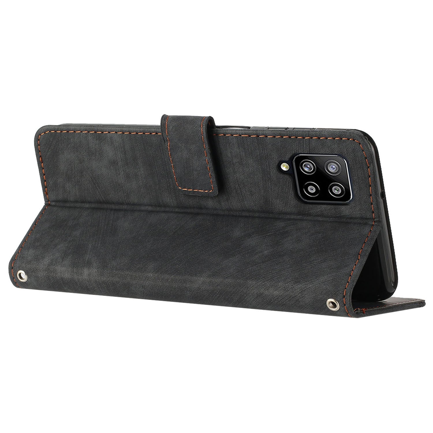 For Samsung Galaxy A42 5G / M42 5G Imprinted Lines Stand Phone Cover Wallet Case PU Leather Flip Shell
