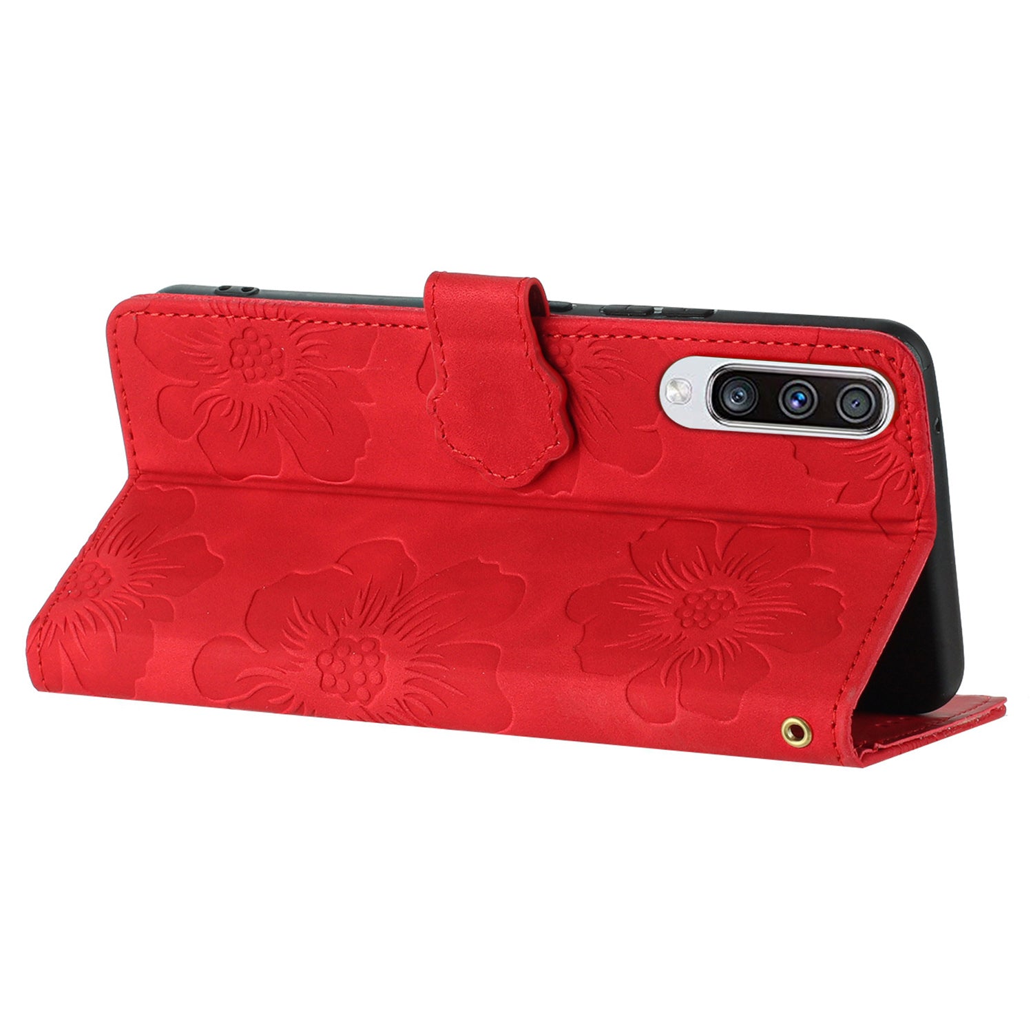 For Samsung Galaxy A50 / A50s / A30s Flowers Imprinted Leather Phone Cover Wallet Stand Case with Strap