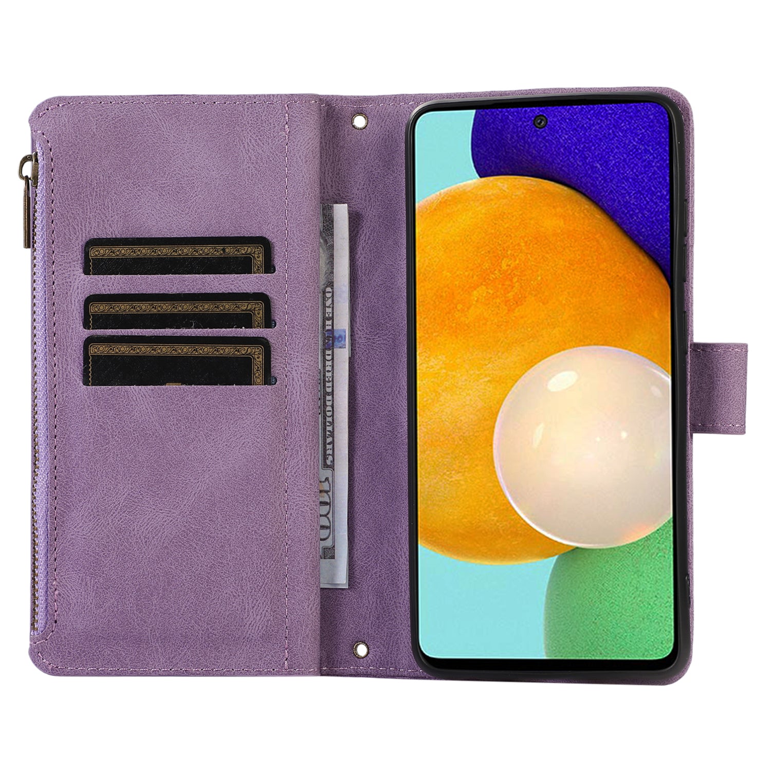 For Samsung Galaxy A52 4G / A52 5G / A52s 5G Zipper Pocket Leather Wallet Phone Case Rhombus Imprinted Stand Cover with 9 Card Slots