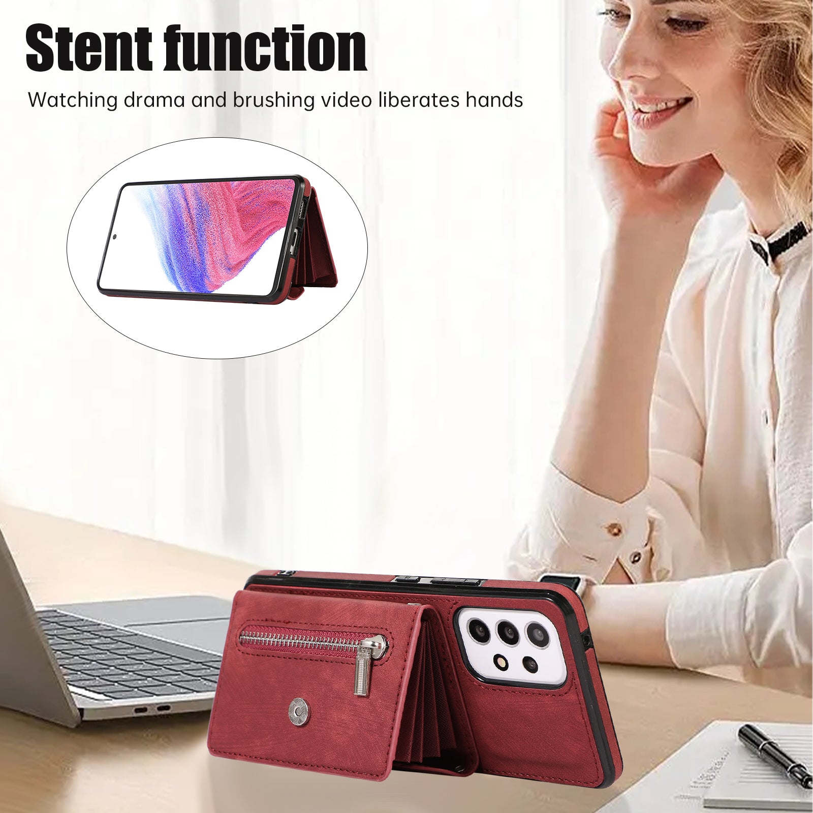 For Samsung Galaxy A53 5G Anti-Fingerprint Cover Kickstand PU Leather+TPU Cell Phone Case with RFID Blocking Card Bag