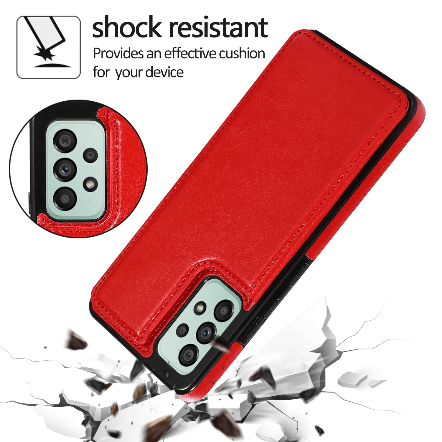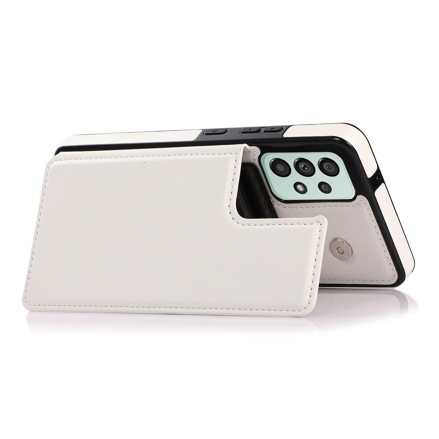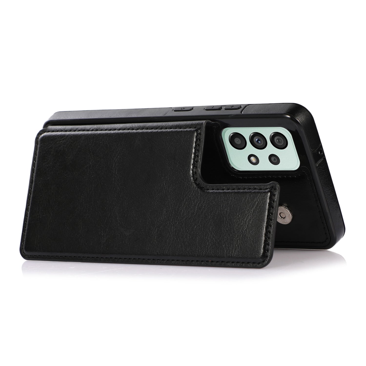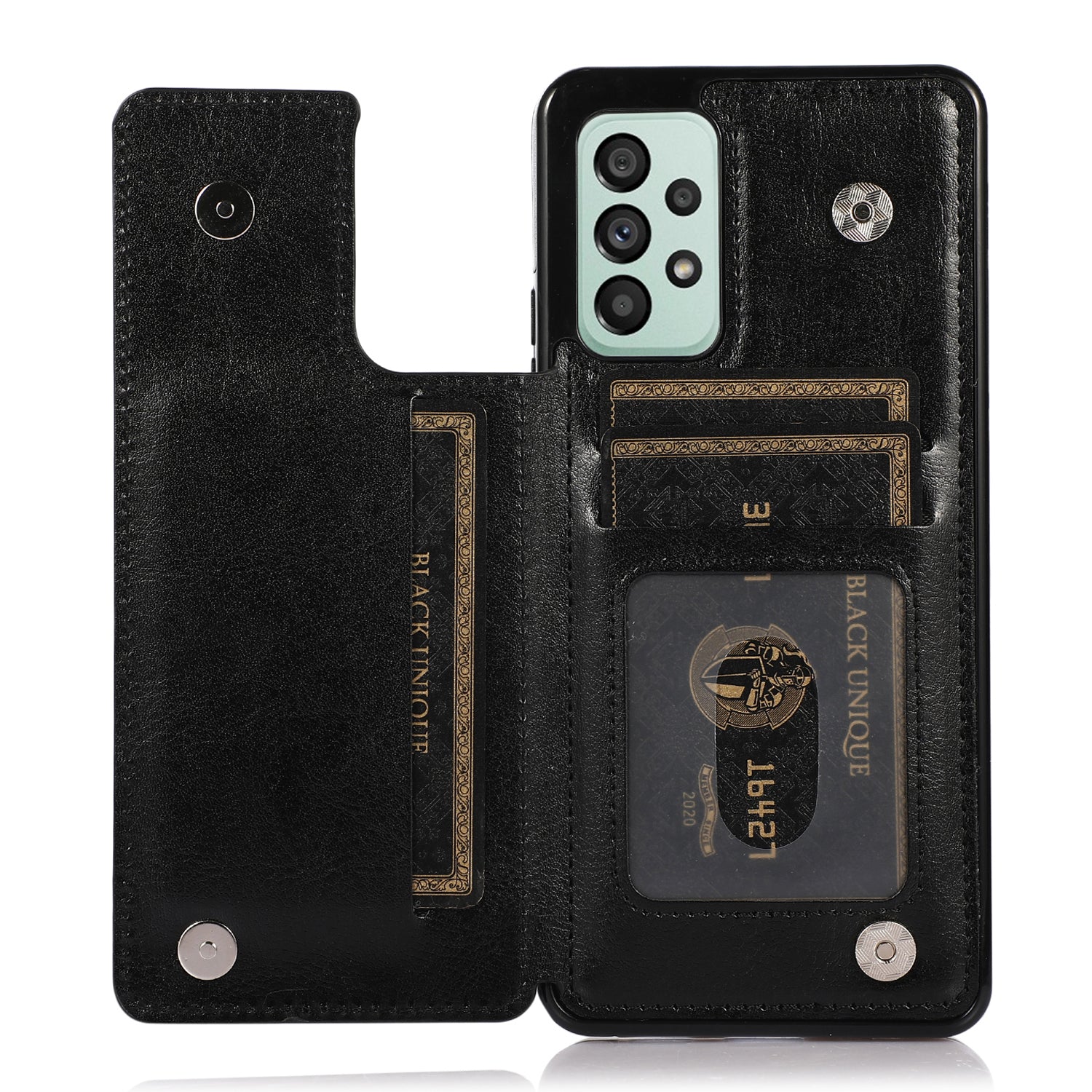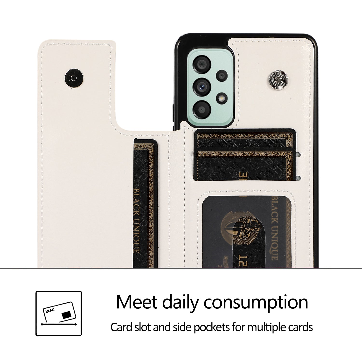 For Samsung Galaxy A53 5G Dual Buttons Card Slots Kickstand Back Cover PU Leather Coated TPU Phone Case