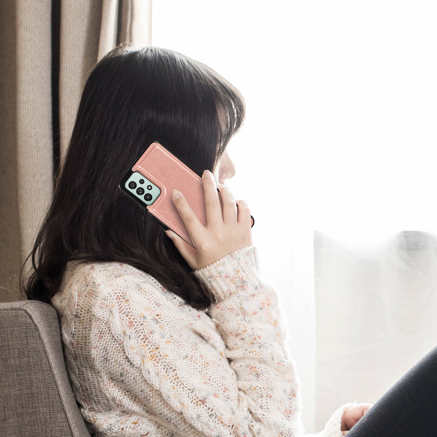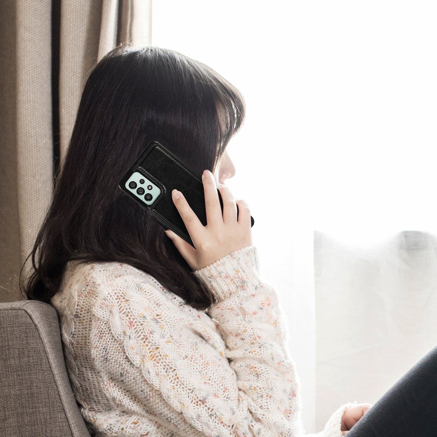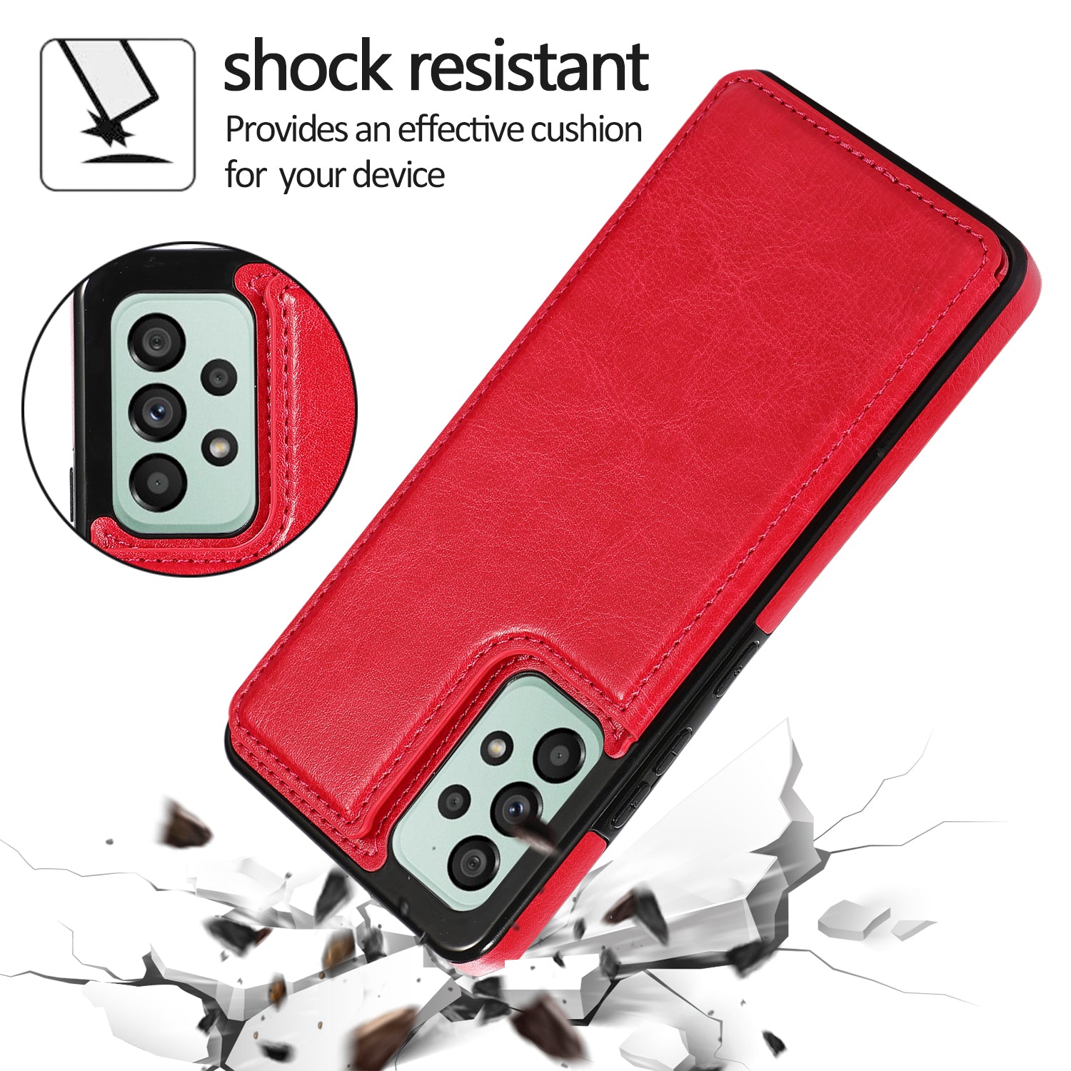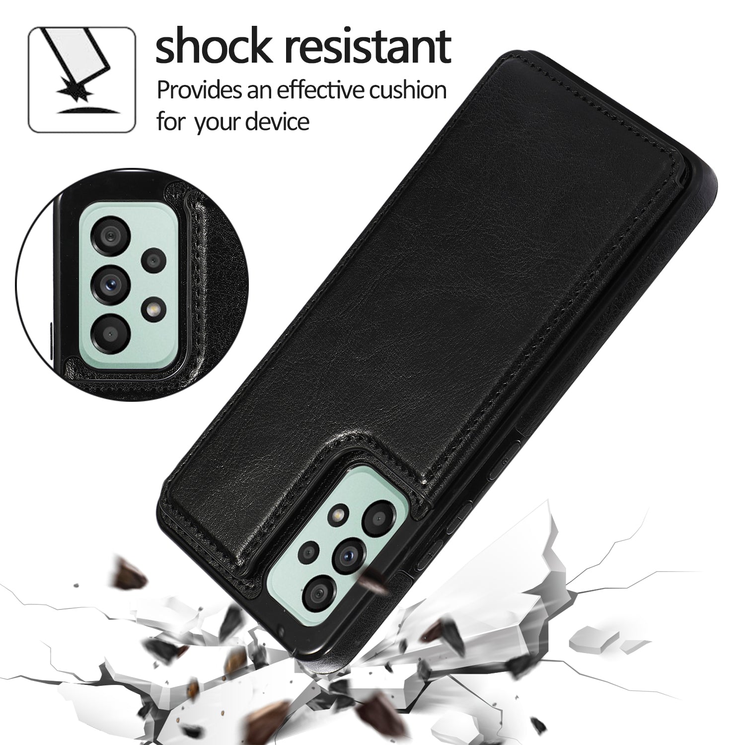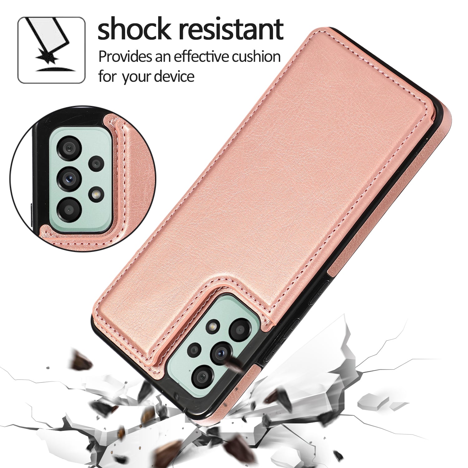 For Samsung Galaxy A53 5G Dual Buttons Card Slots Kickstand Back Cover PU Leather Coated TPU Phone Case