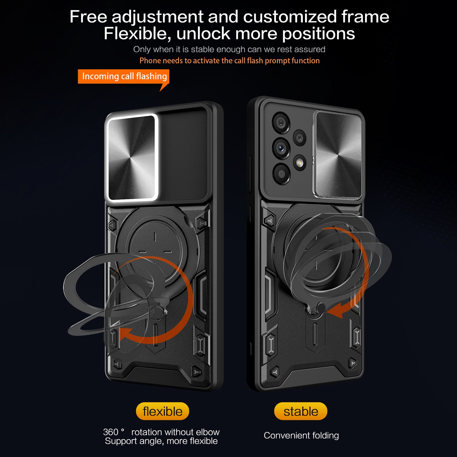 For Samsung Galaxy A53 5G TPU+PC Phone Case Kickstand Shockproof Cover with Slide Camera Lens Protector