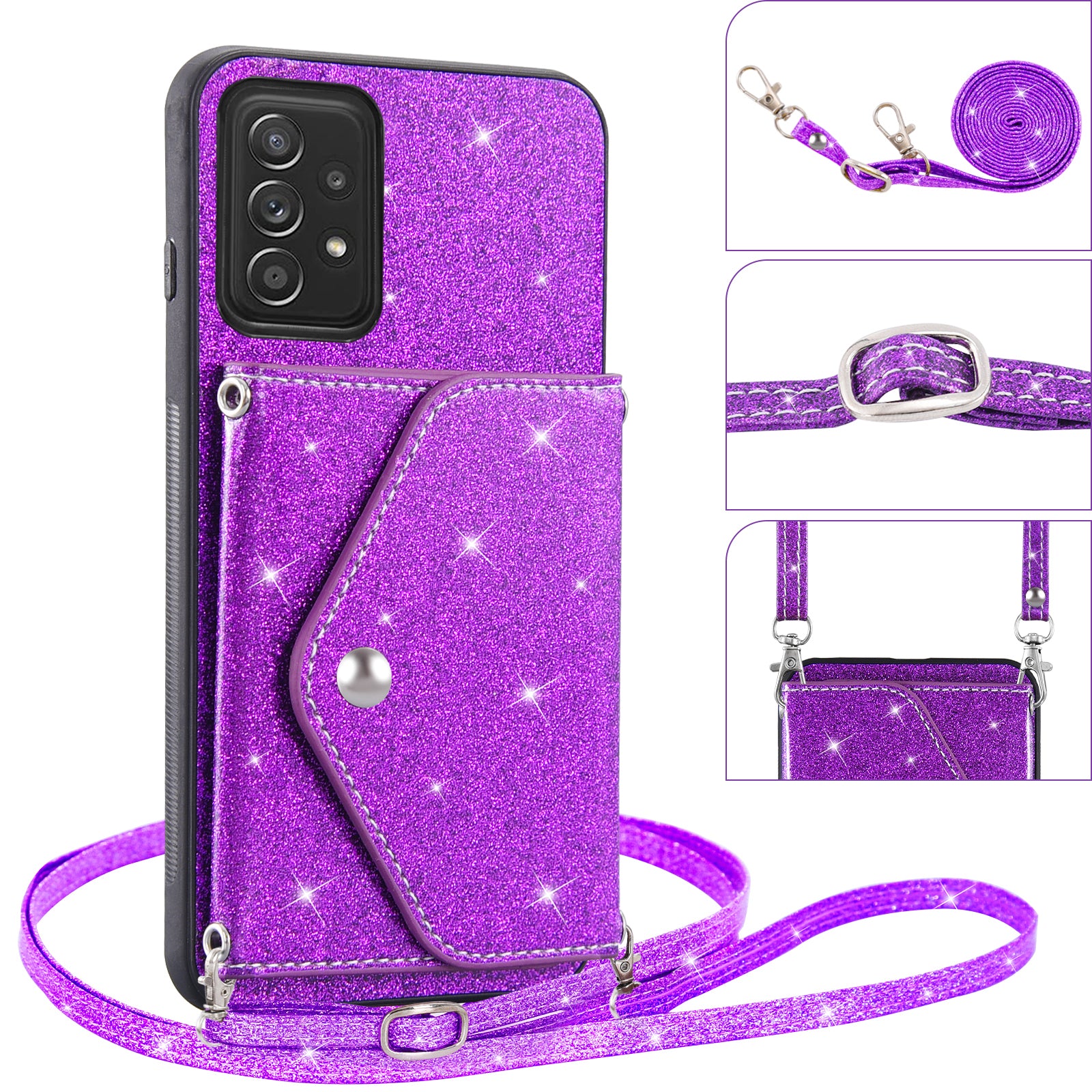 For Samsung Galaxy A73 5G Phone Cover Card Holder Glitter Kickstand Leather Coated TPU Case