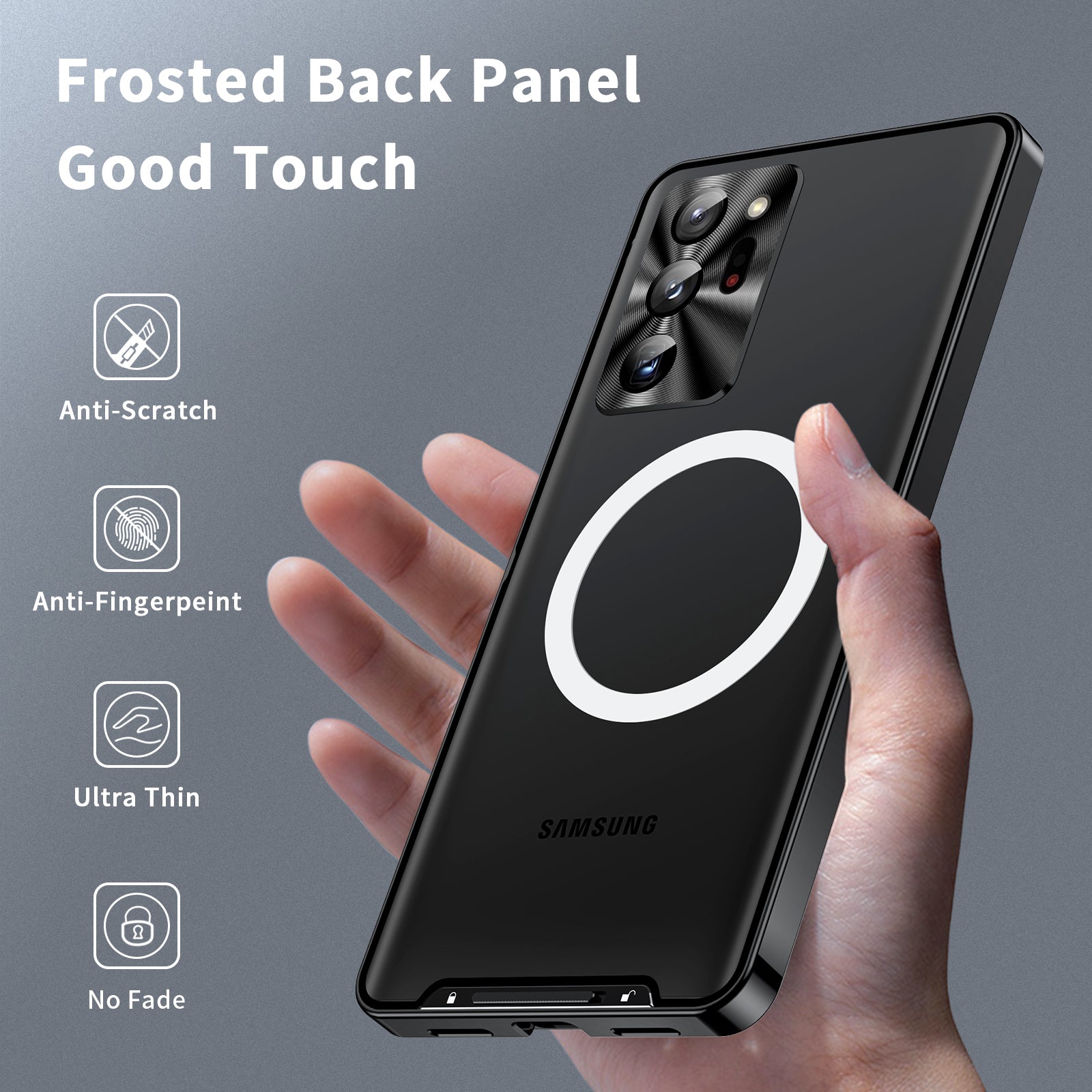For Samsung Galaxy Note20 Ultra 4G Anti-Drop Phone Cover TPU Back + Electroplating Metal Edge Integrated Lens Protection Matte Case