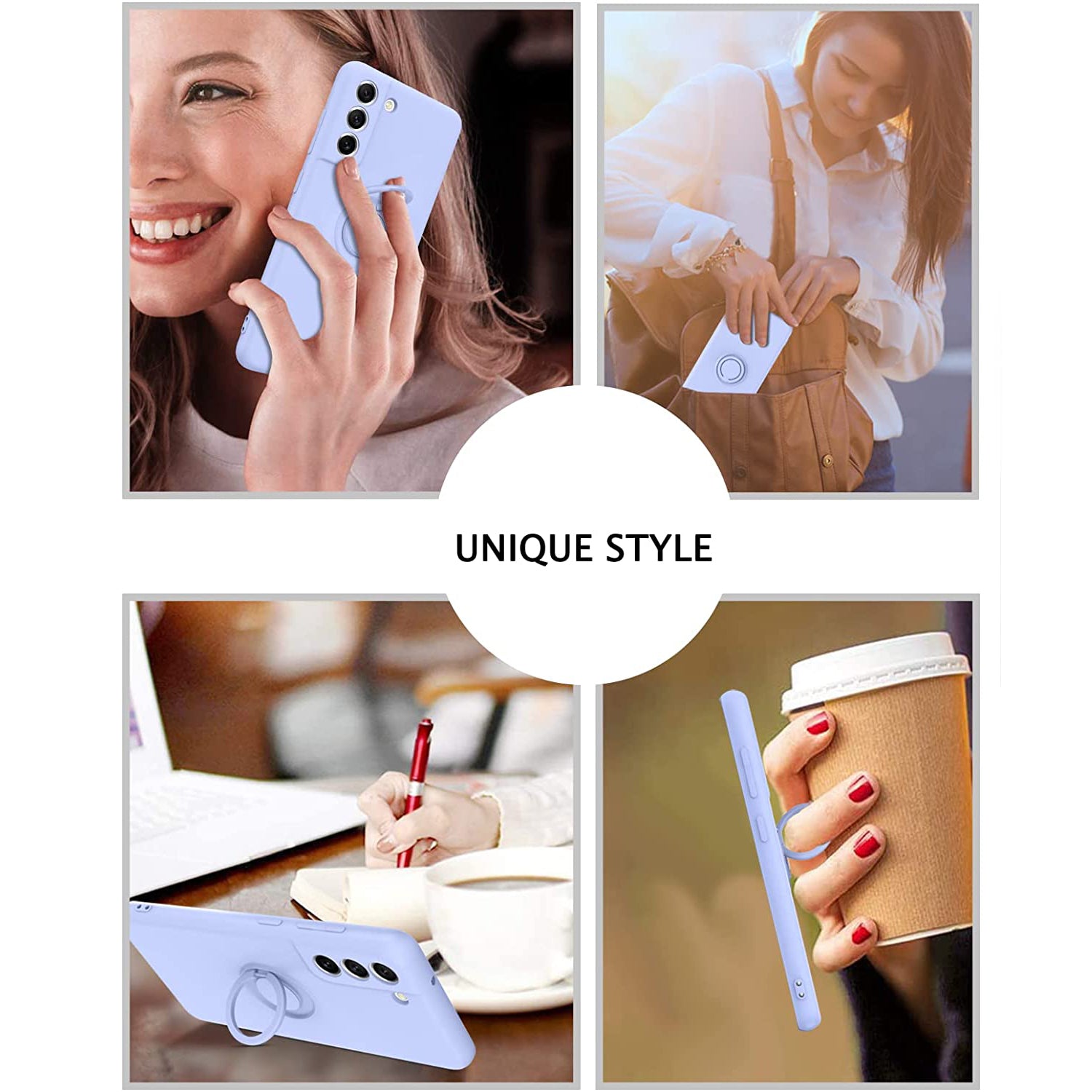 For Samsung Galaxy S21 FE 5G Built-in Metal Sheet Finger Ring Kickstand Design Liquid Silicone Phone Case Protector