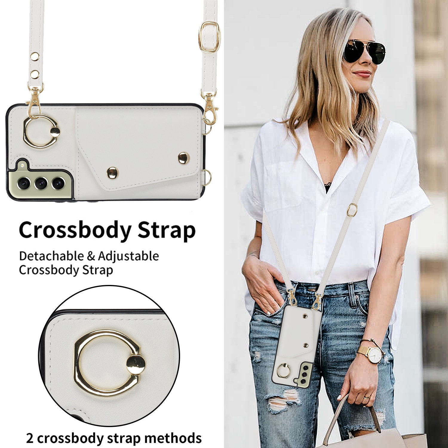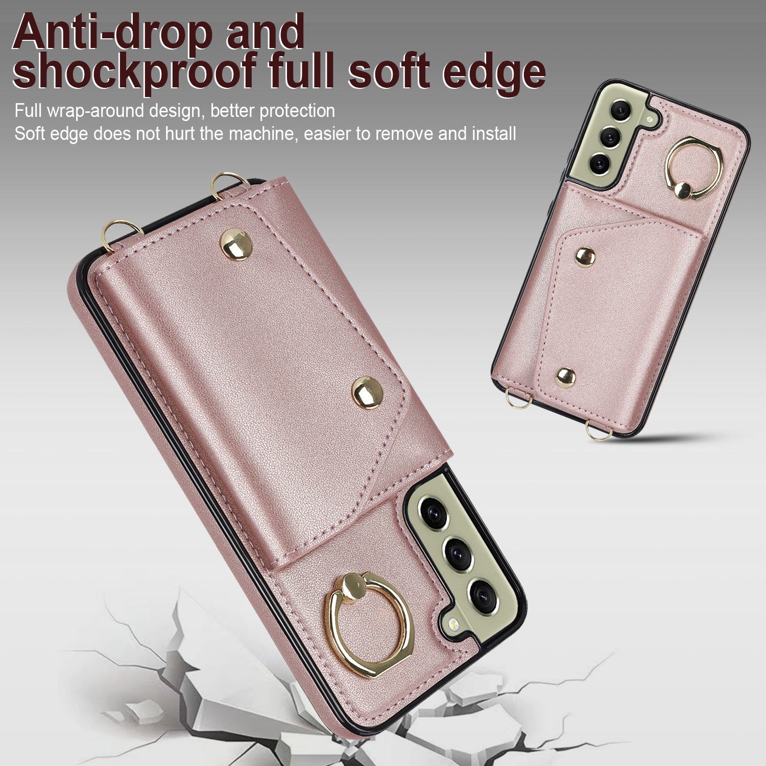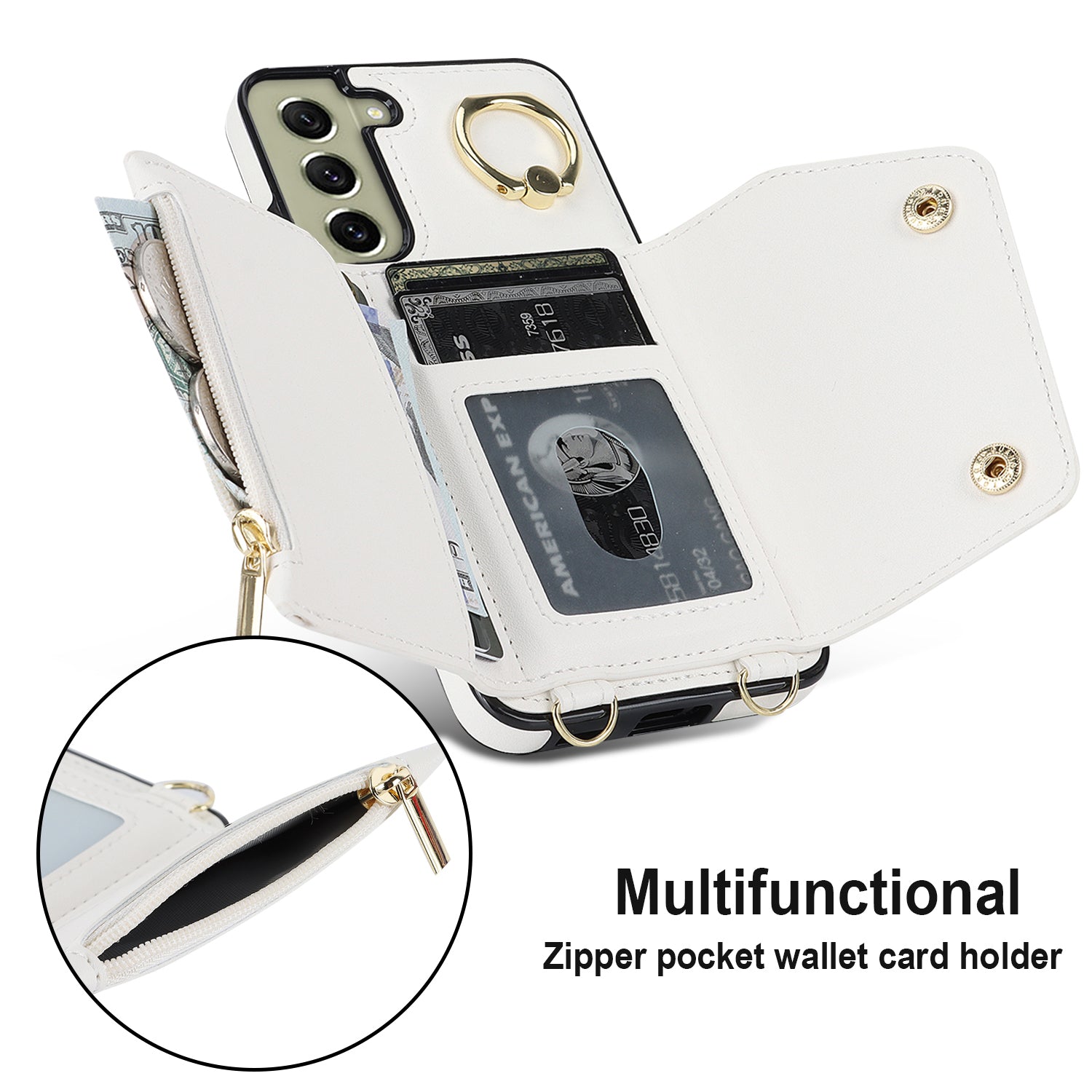 For Samsung Galaxy S21 FE 5G Zipper Wallet Crossbody Phone Case PU Leather Coated TPU Kickstand Cover