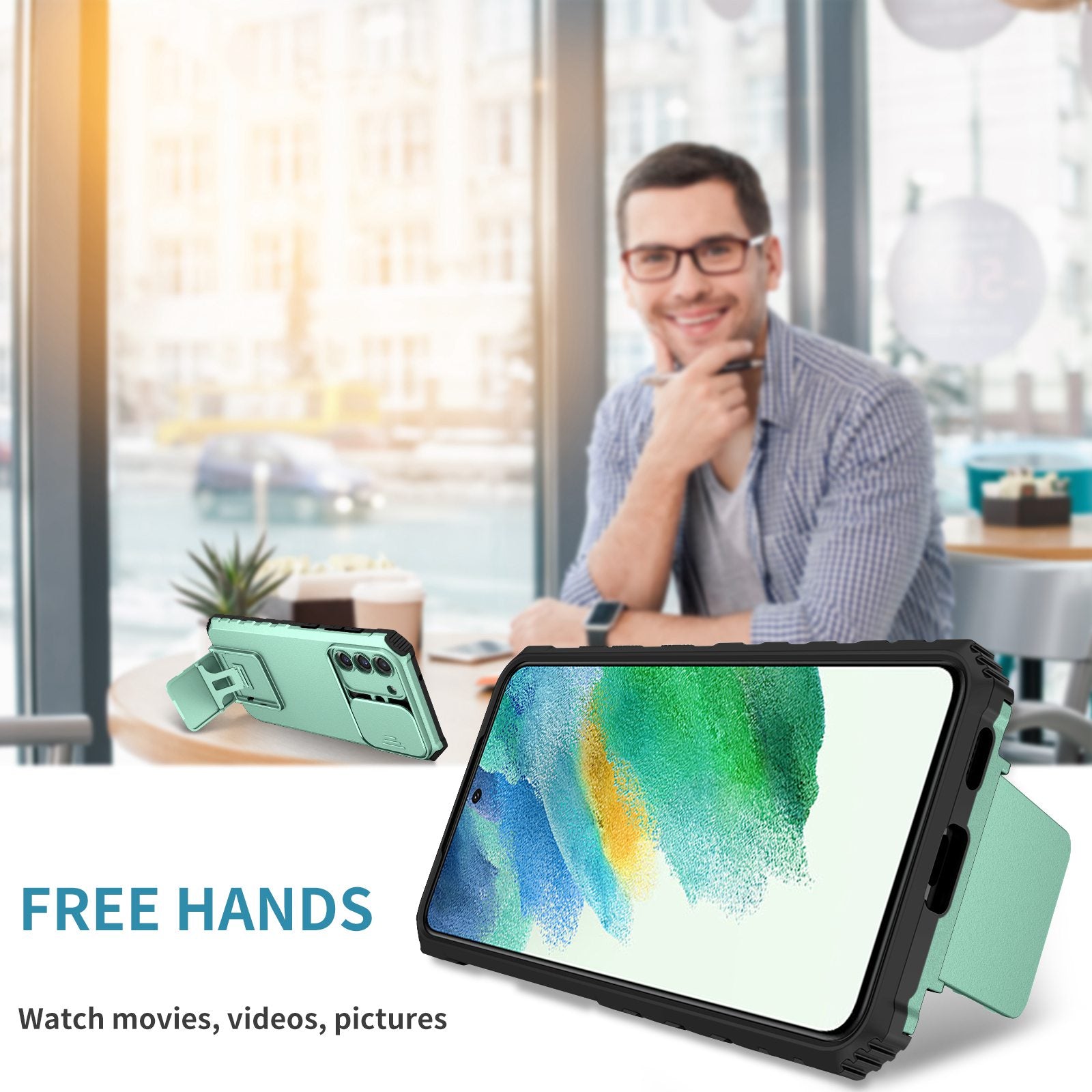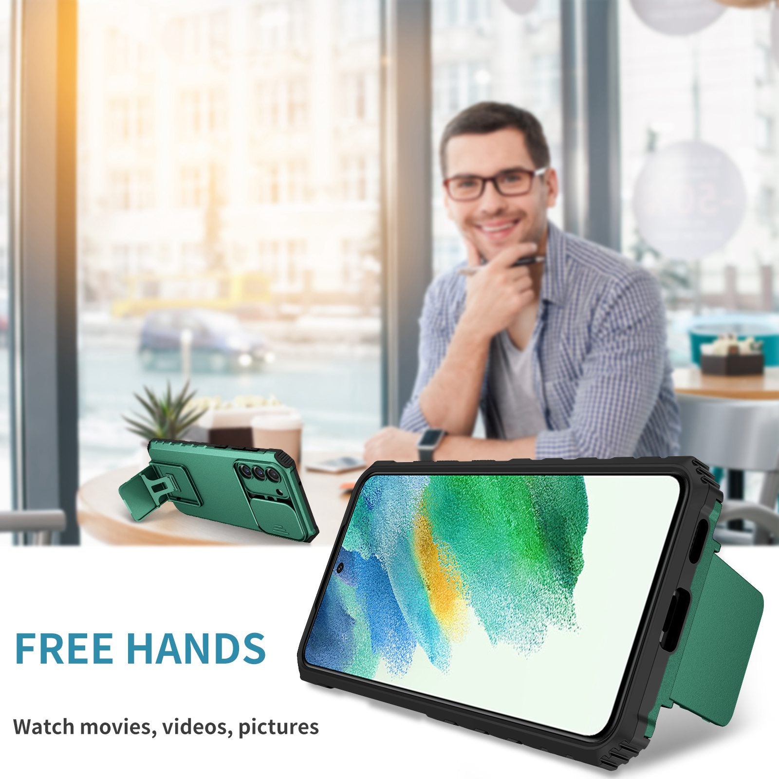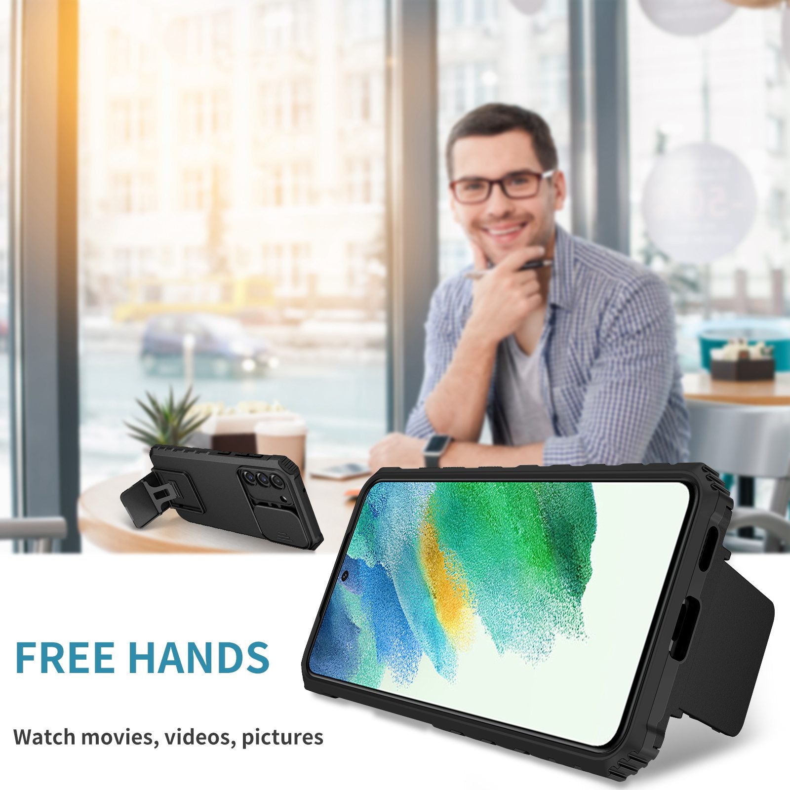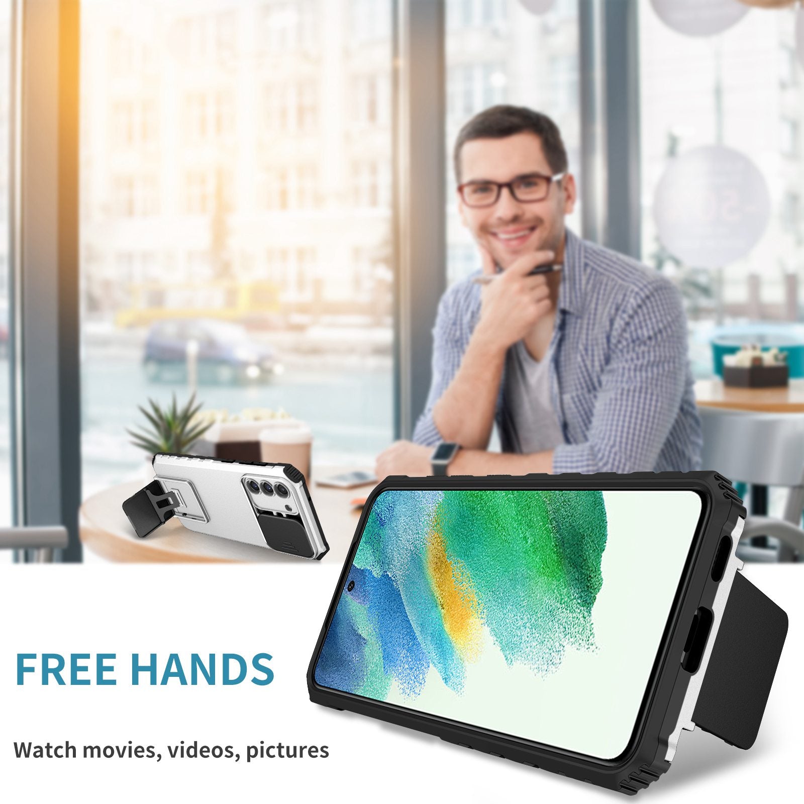 - With the hidden kickstand, the phone can be placed vertically or horizontally
