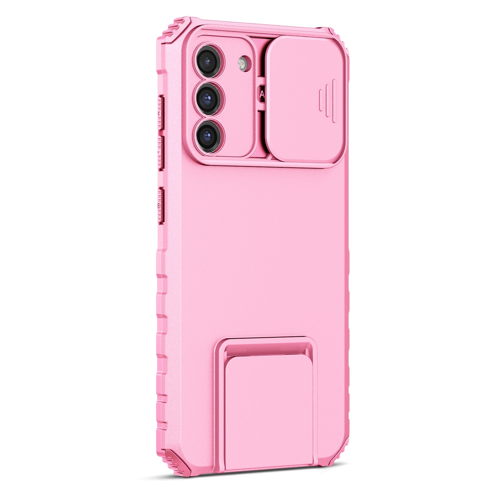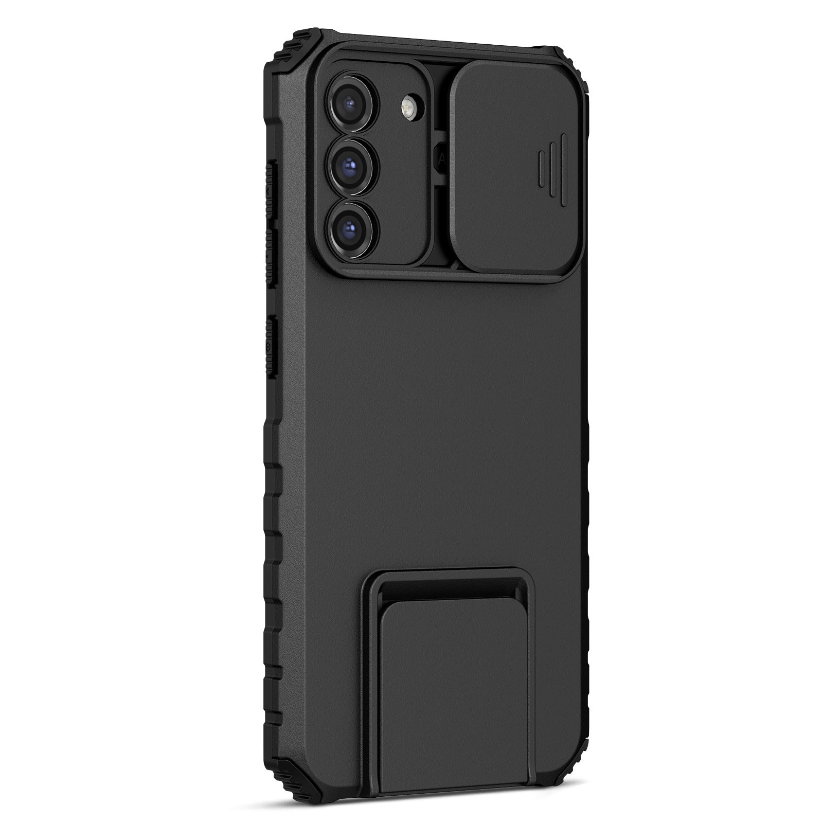 For Samsung Galaxy S22+ 5G Adjustable Vertical Kickstand Phone Case PC + TPU Hybrid Cover with Camera Slide Cover