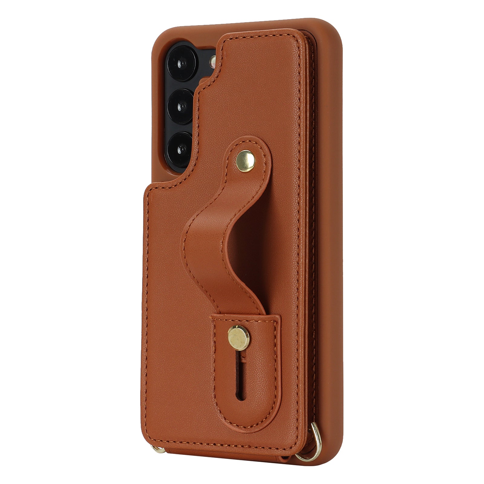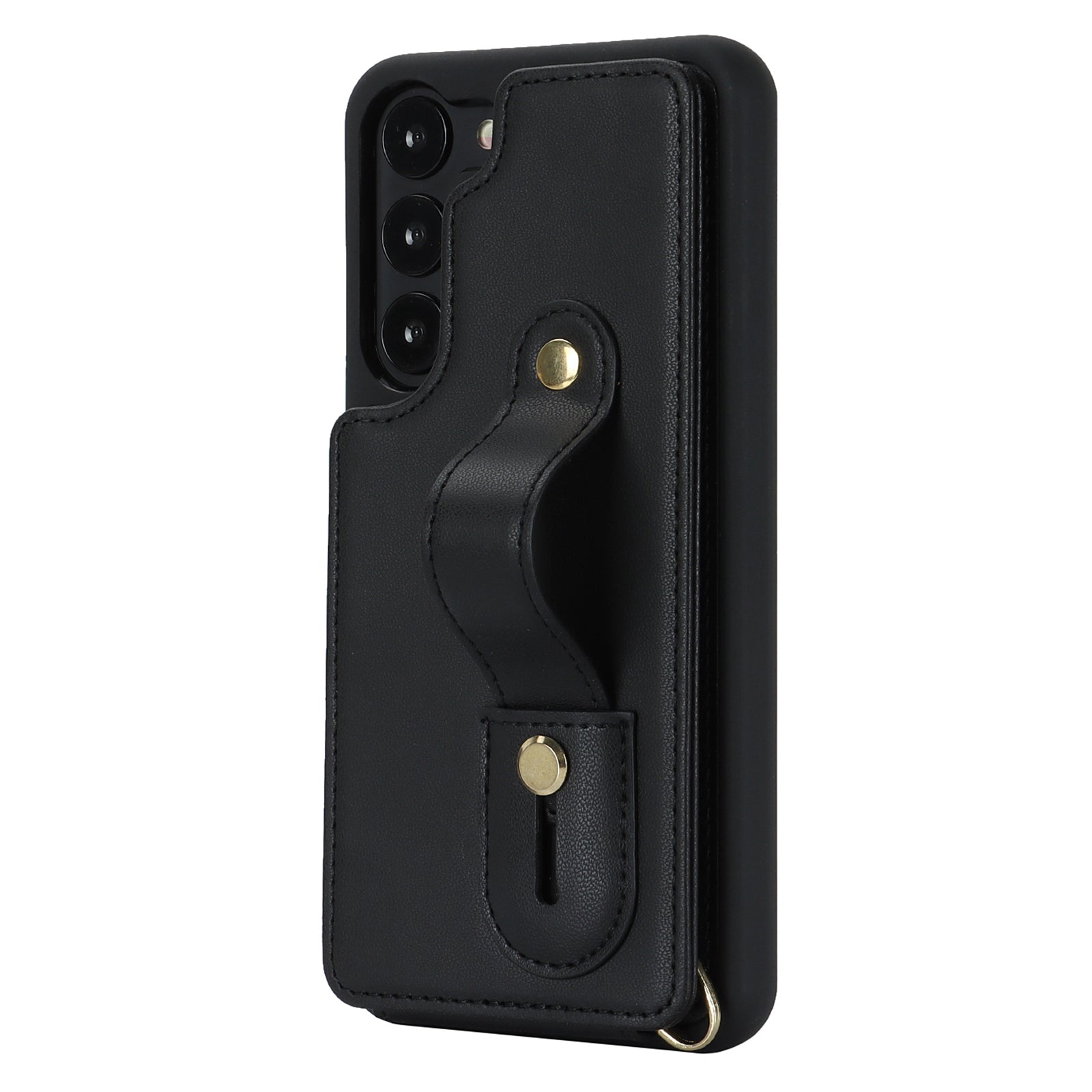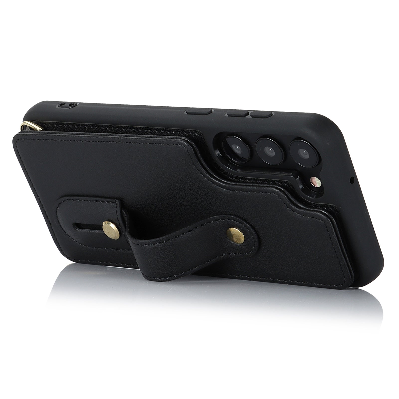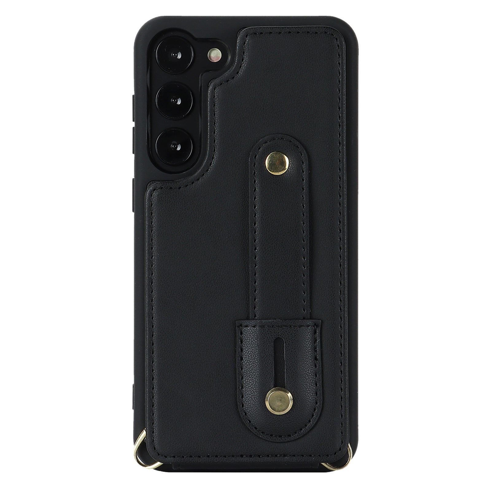 For Samsung Galaxy S22+ 5G Wristband Kickstand Phone Cover Card Slots Leather+TPU Case